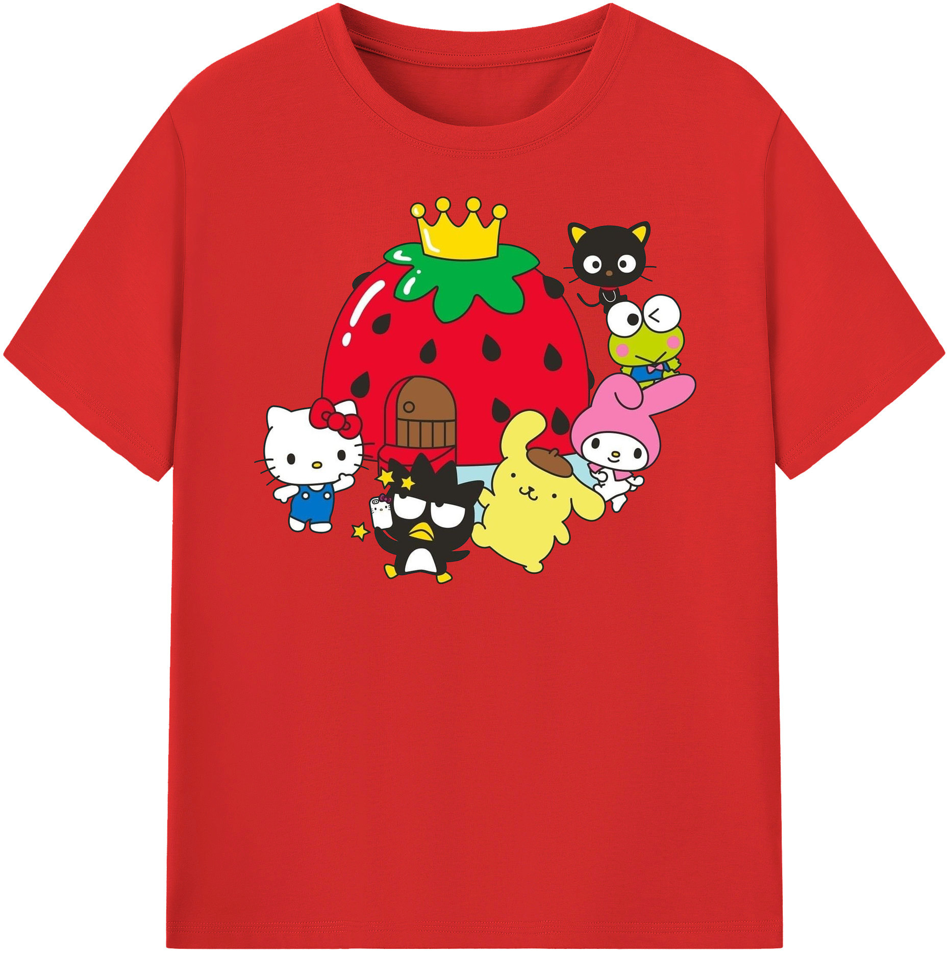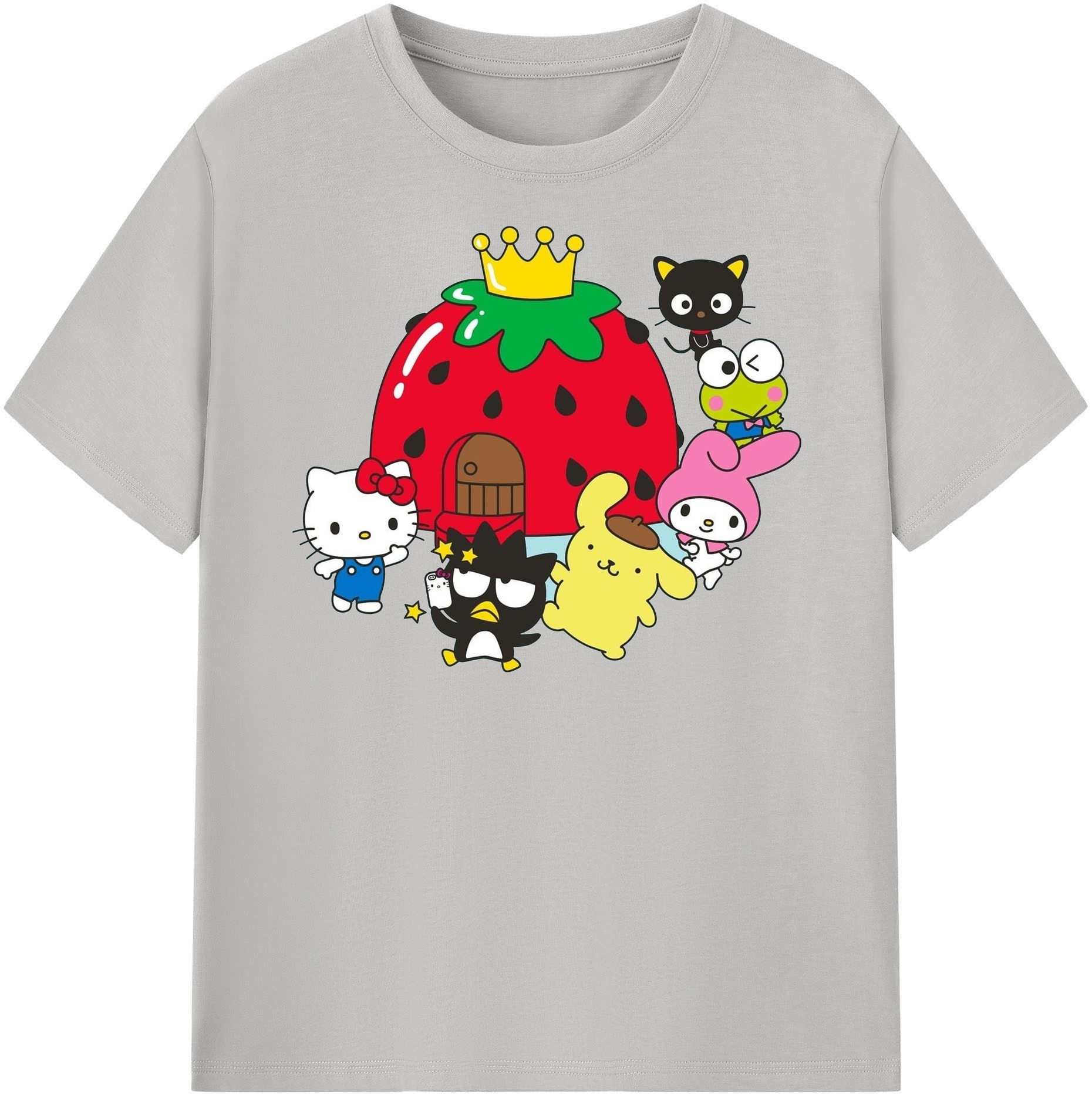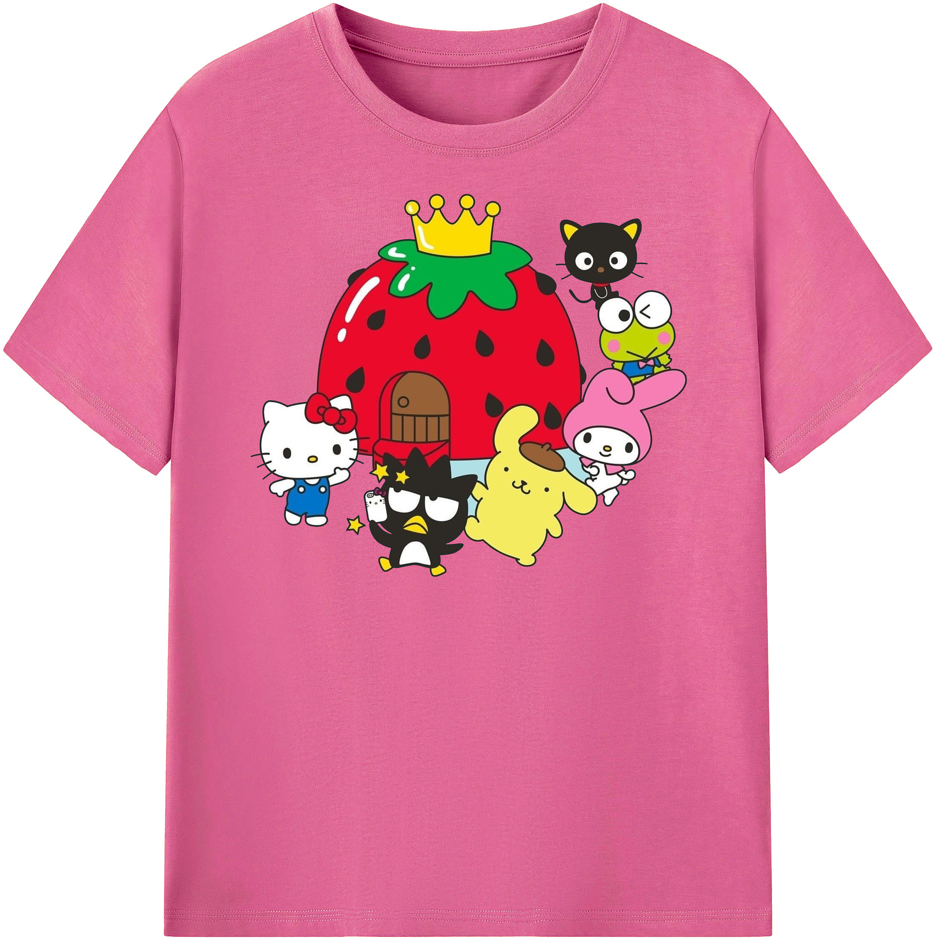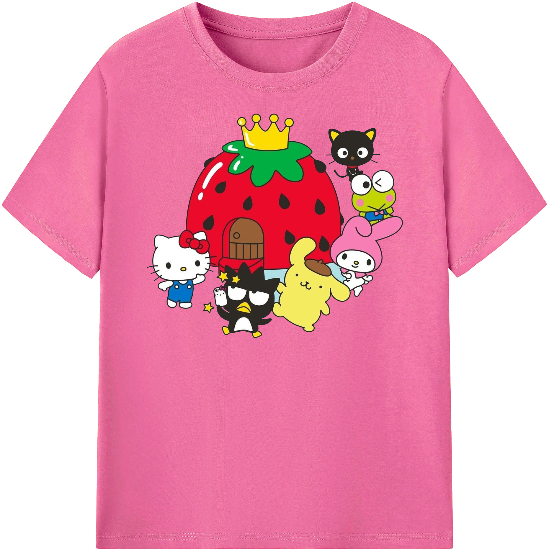 いちごサンリオ - レディースカジュアルプリントTシャツ ・ 綿100% ・ クルーネック ・ フロントプリント ・ 柔らかく快適 ・ フィットネス カジュアル 旅行用