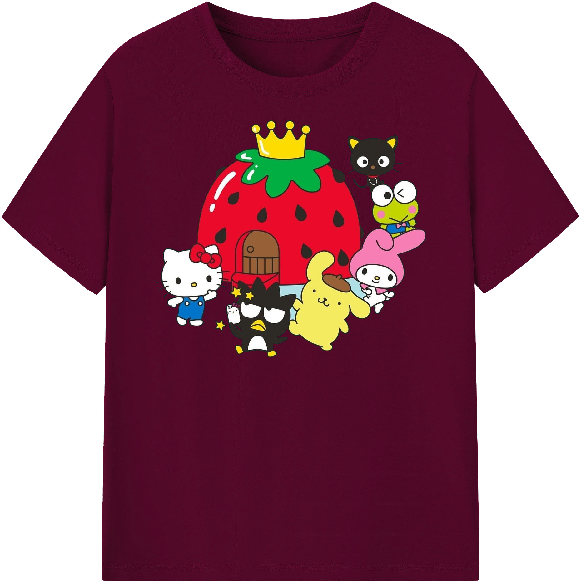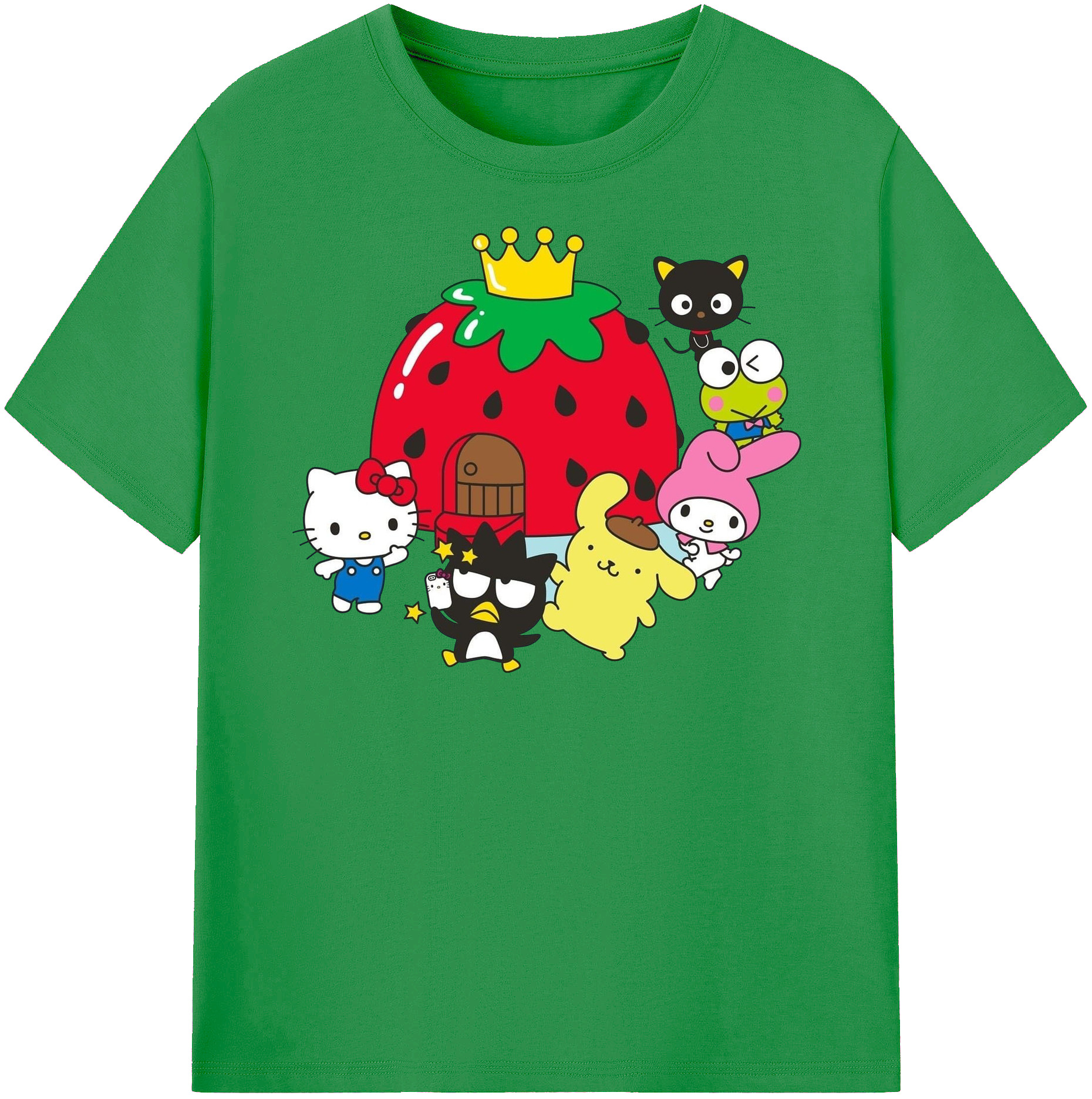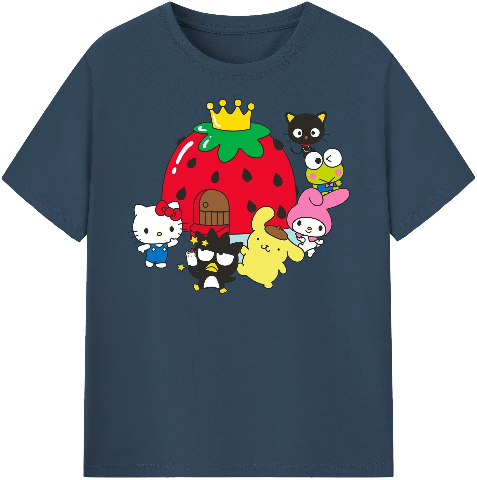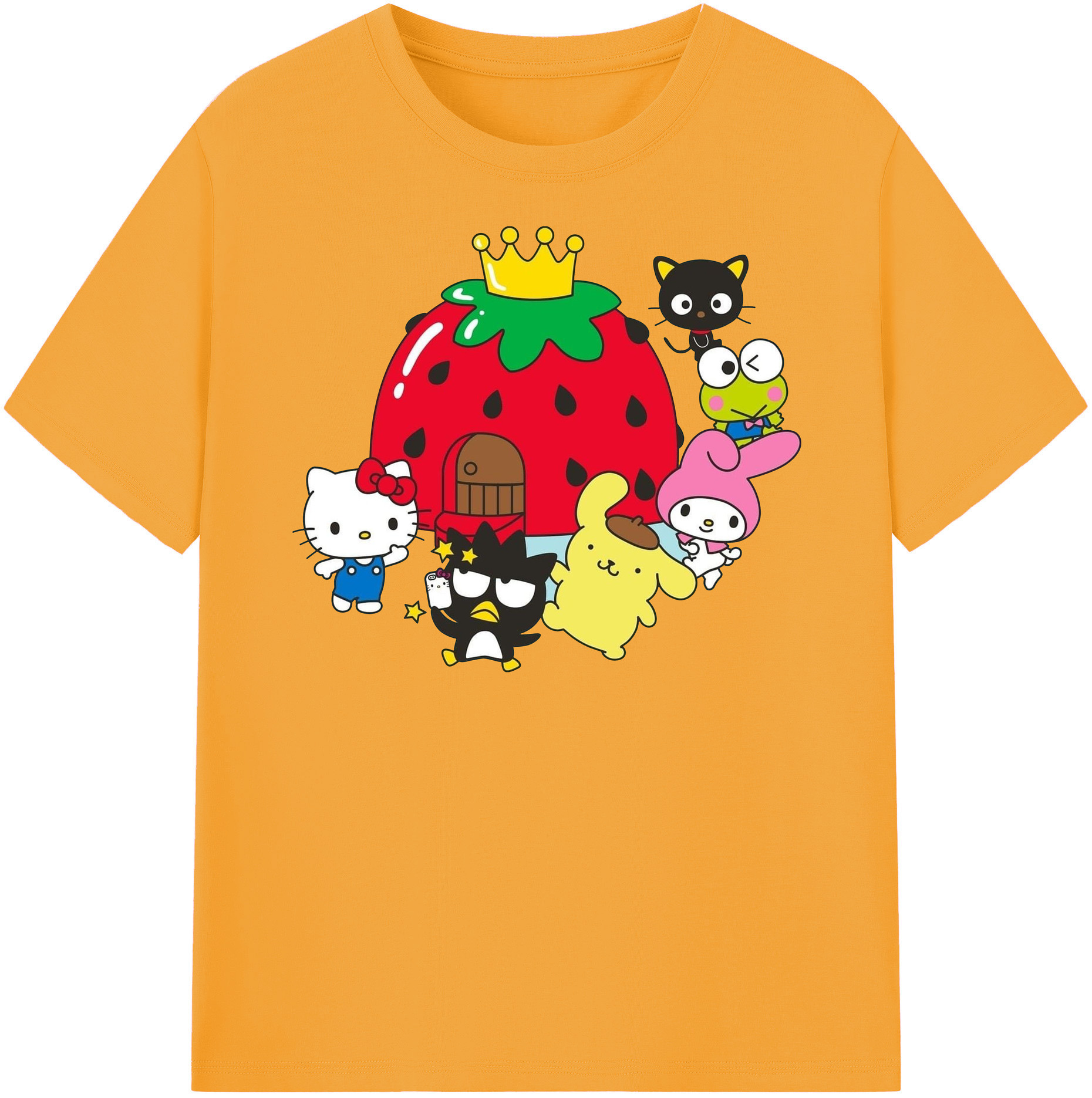 いちごサンリオ - レディースカジュアルプリントTシャツ ・ 綿100% ・ クルーネック ・ フロントプリント ・ 柔らかく快適 ・ フィットネス カジュアル 旅行用
