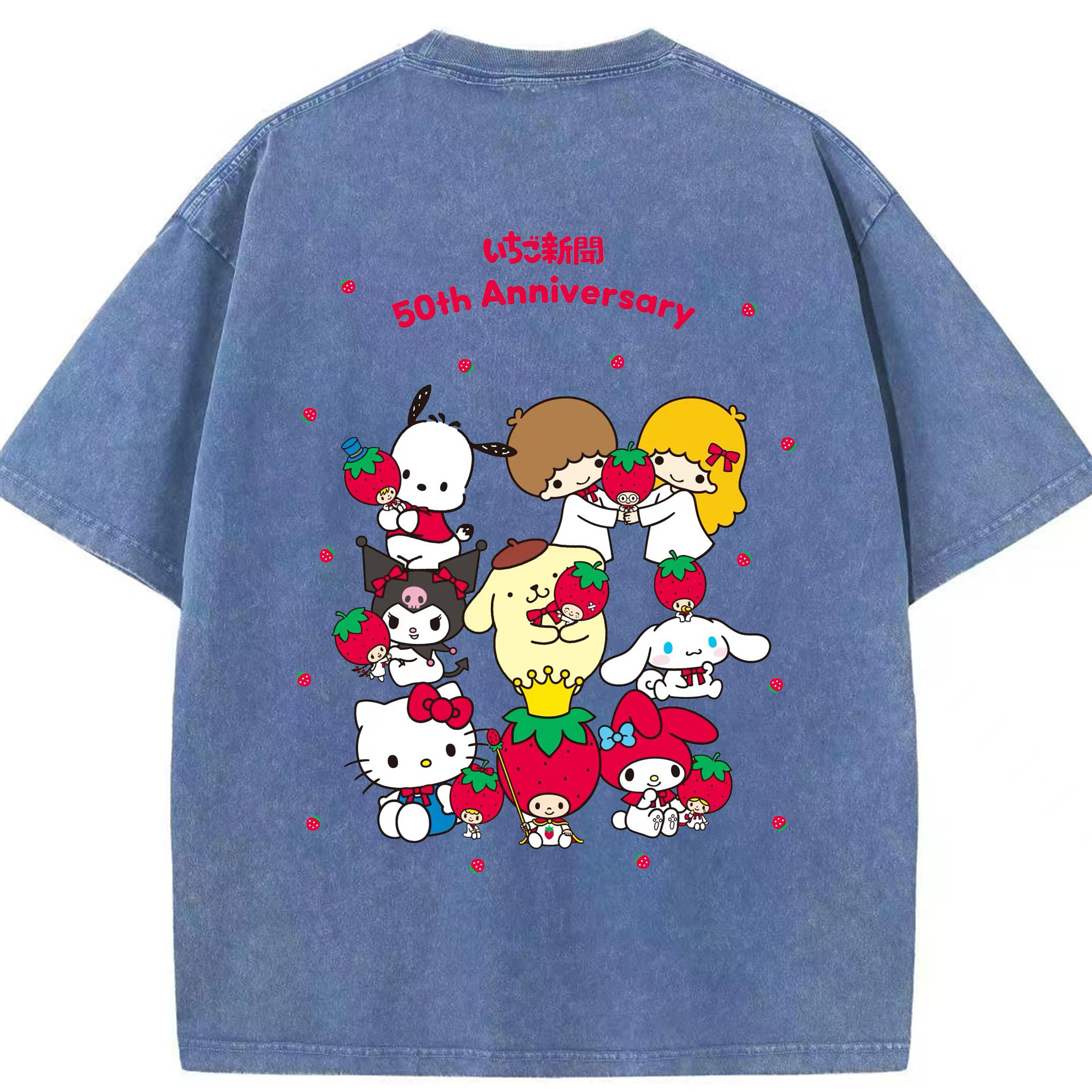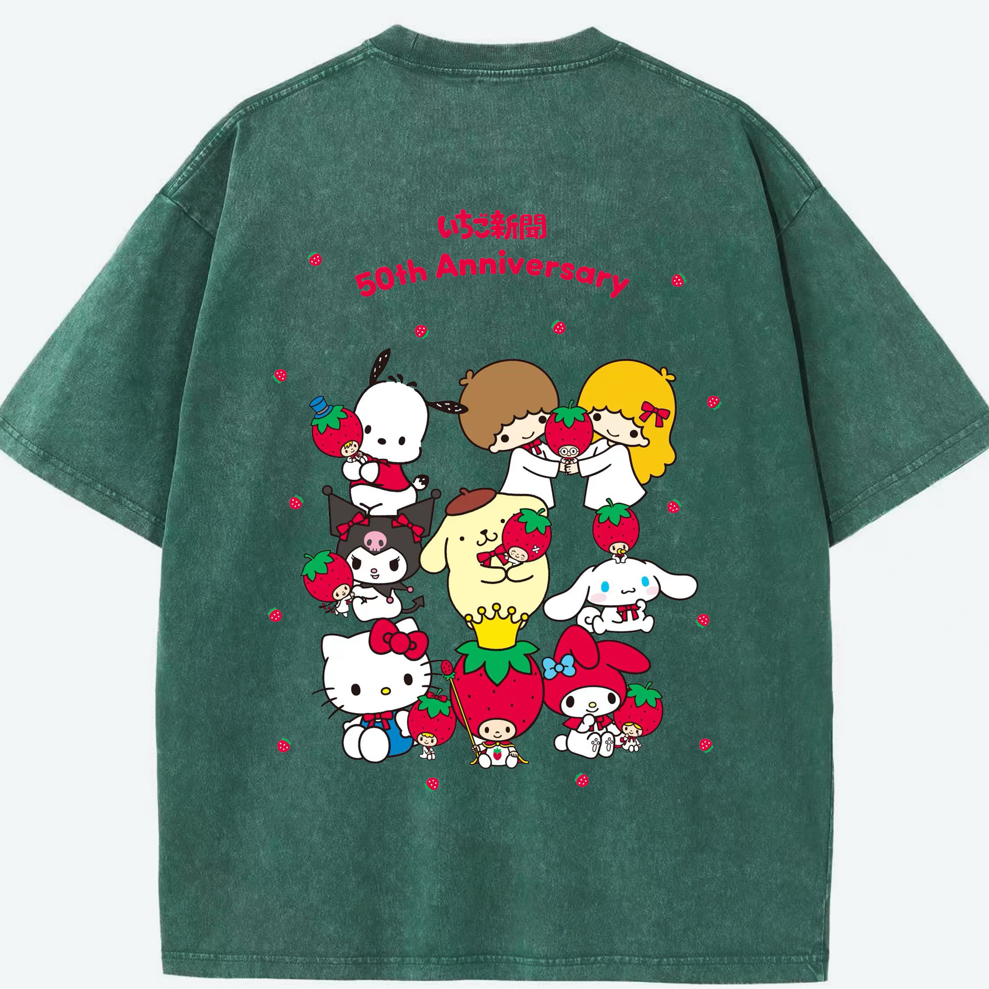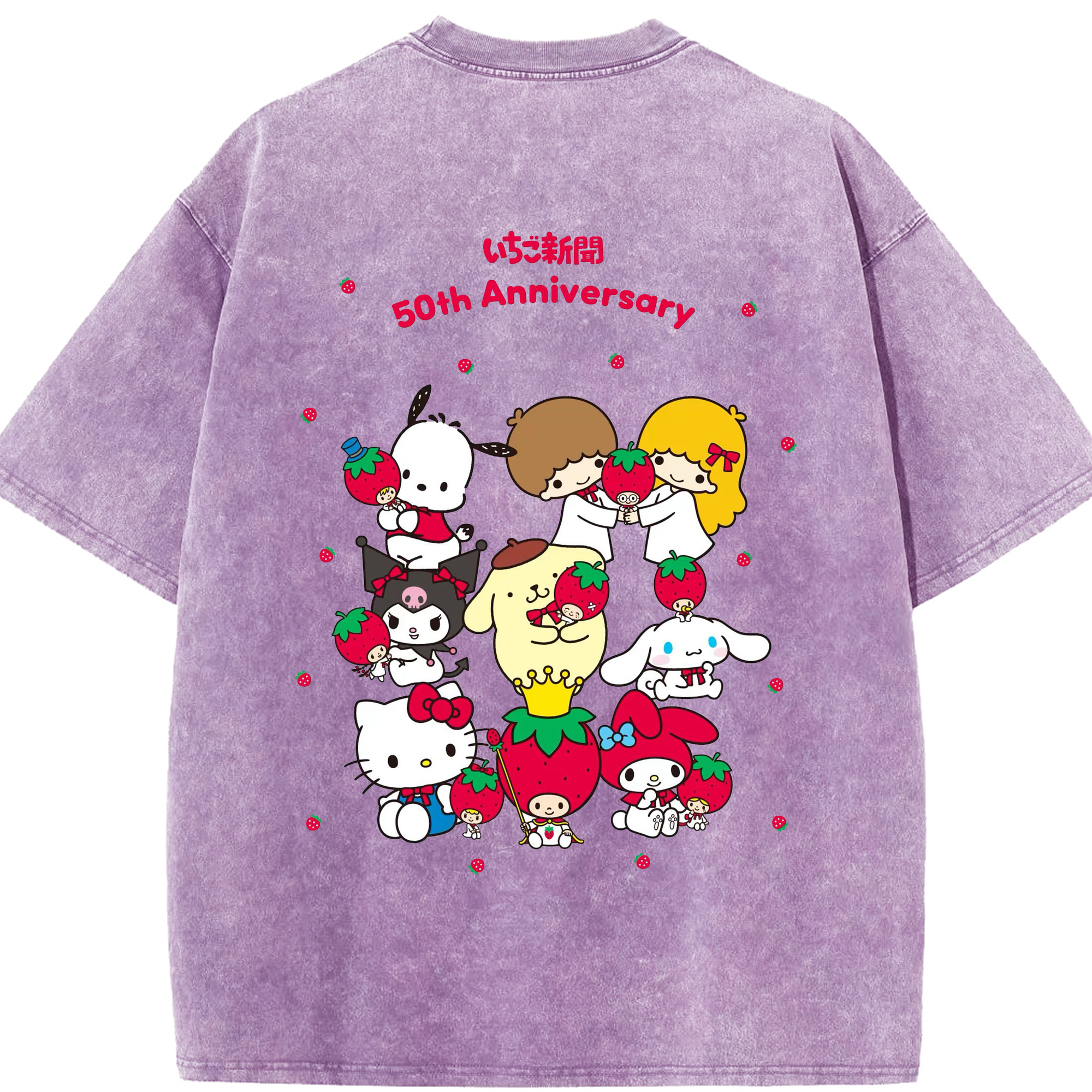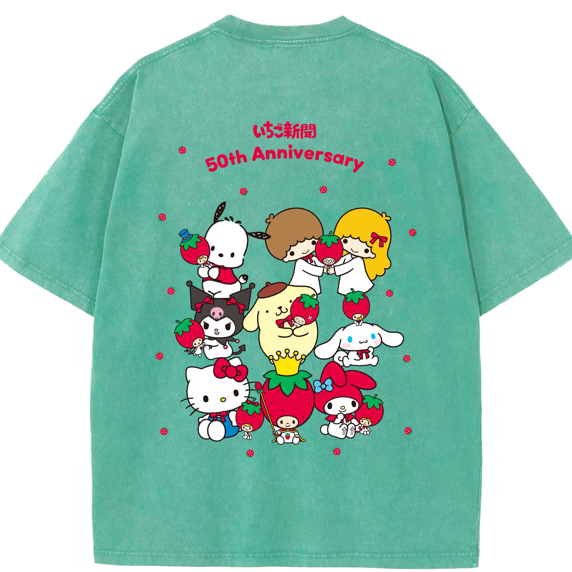 いちごサンリオ - 綿100% ヴィンテージ風 半袖Tシャツ ・ フロントプリント ・ 柔らか肌触り ・ 通気性 快適 ・ スポーツ カジュアル 外出用