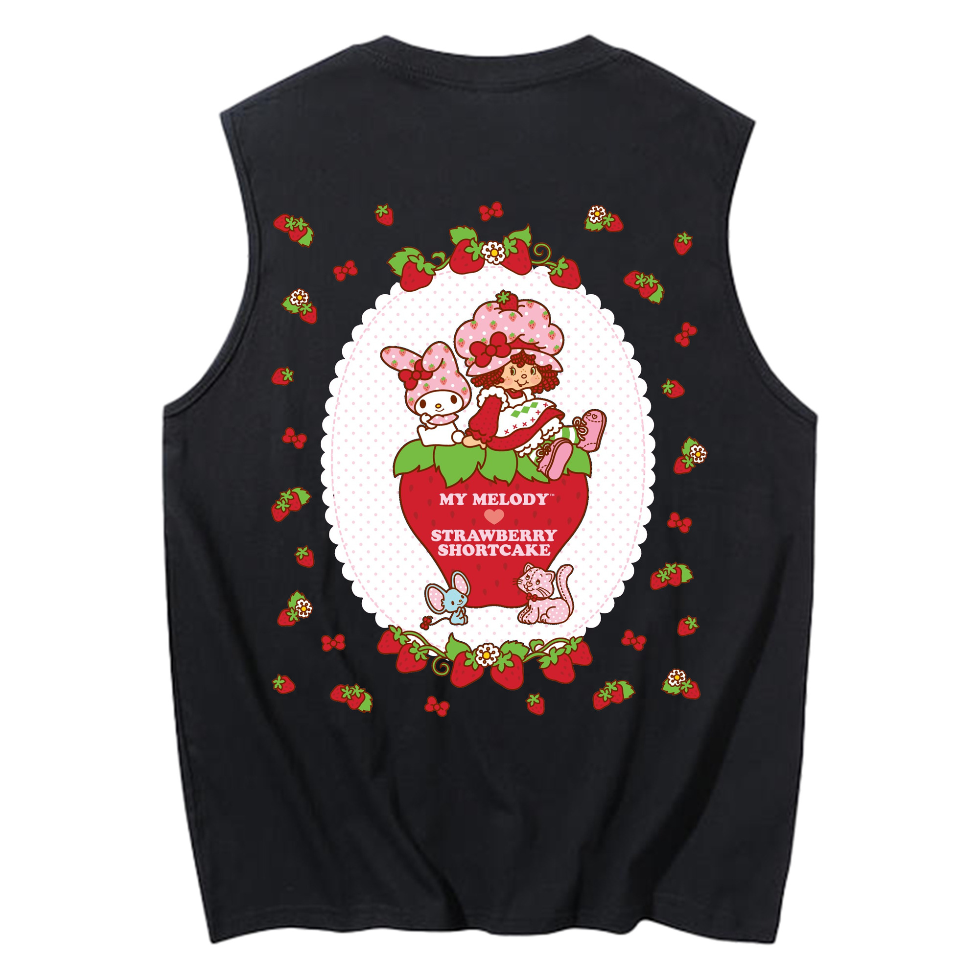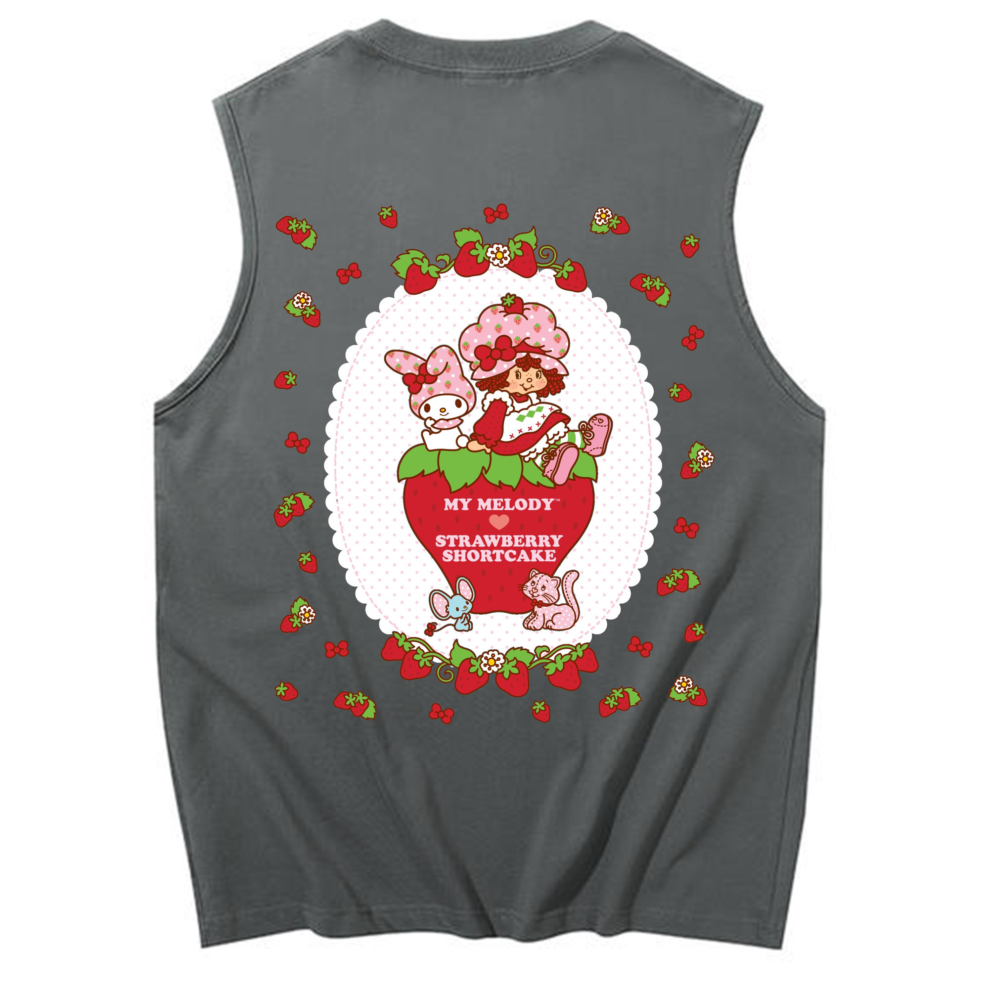 いちごモチーフのマイメロディ - コットン100% タンクトップ ・ 背面プリント ・ タイトシルエット ・ 快適 通気性 ・ スポーツ カジュアル 散歩用