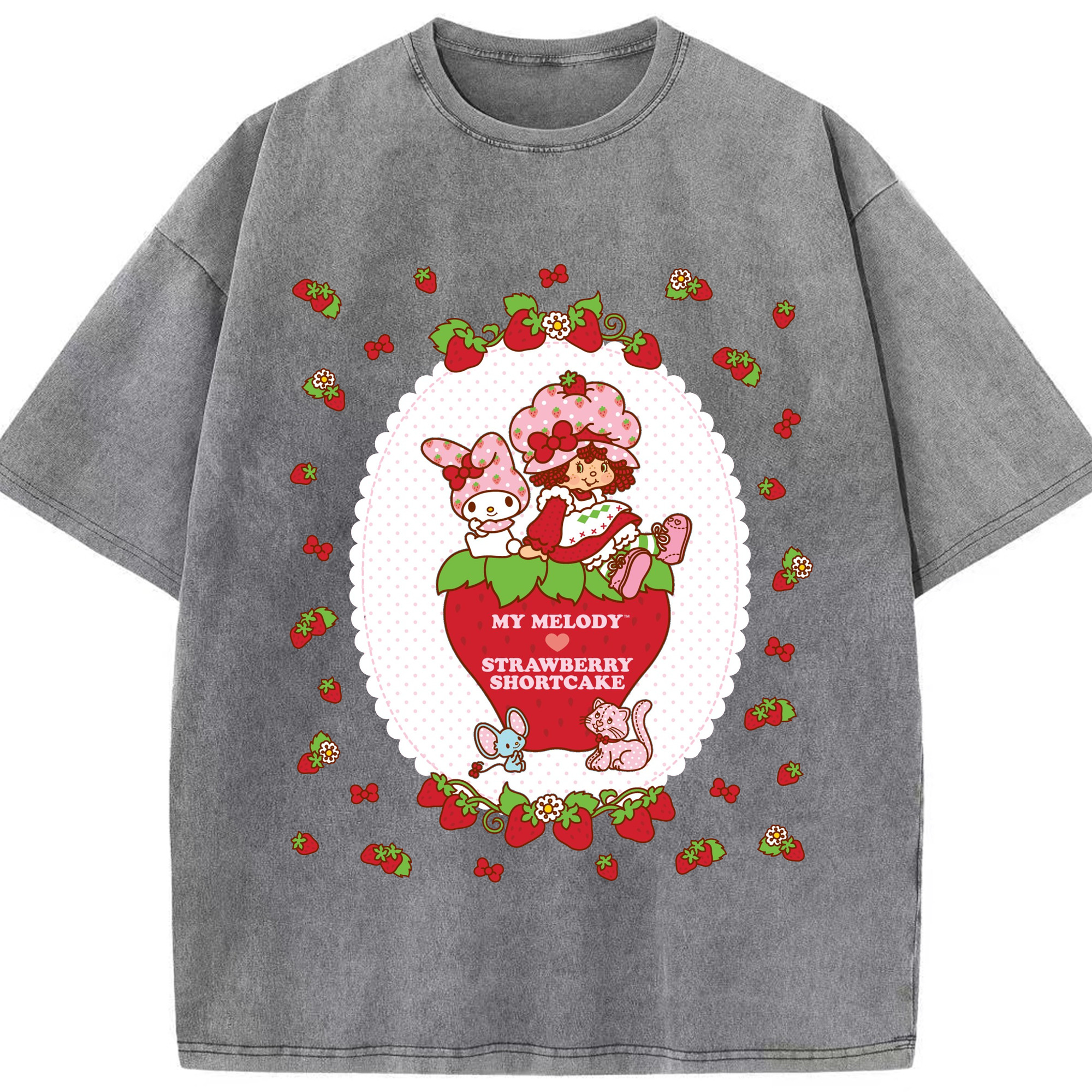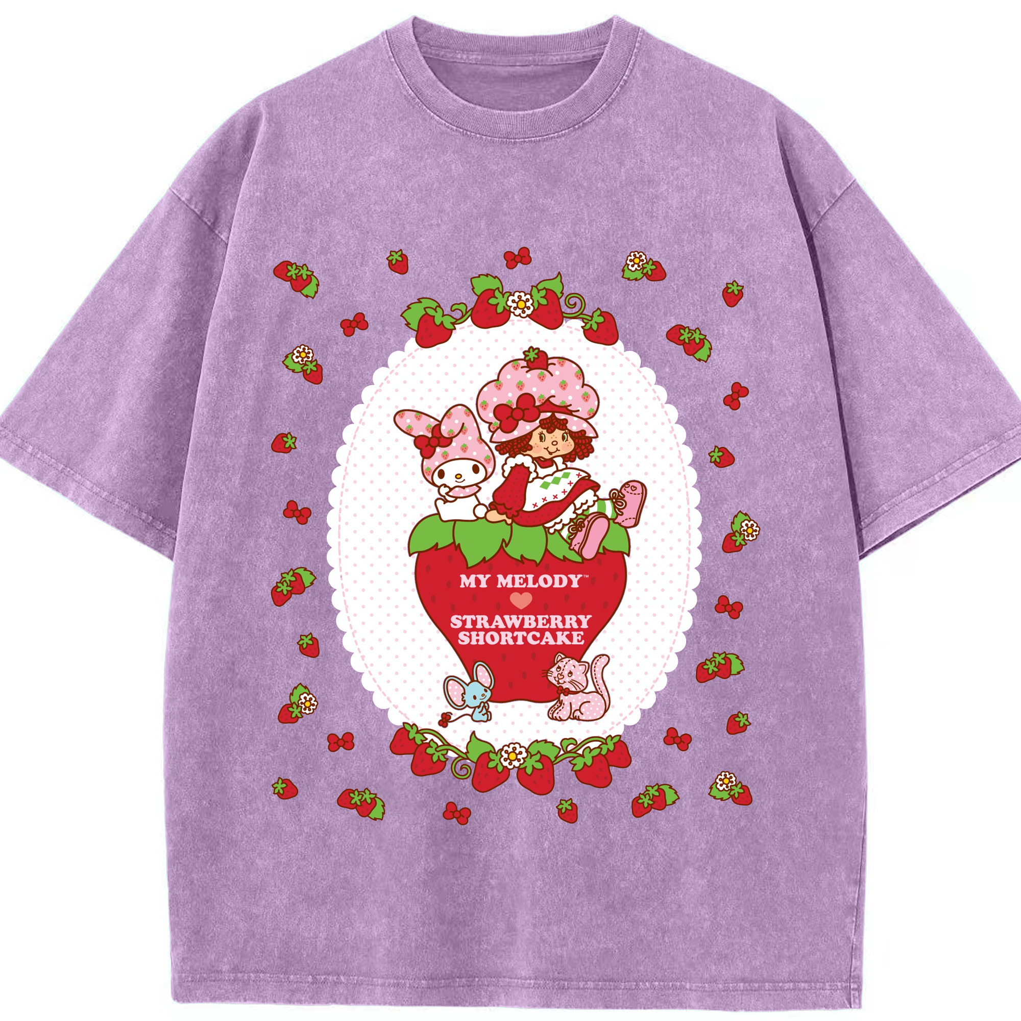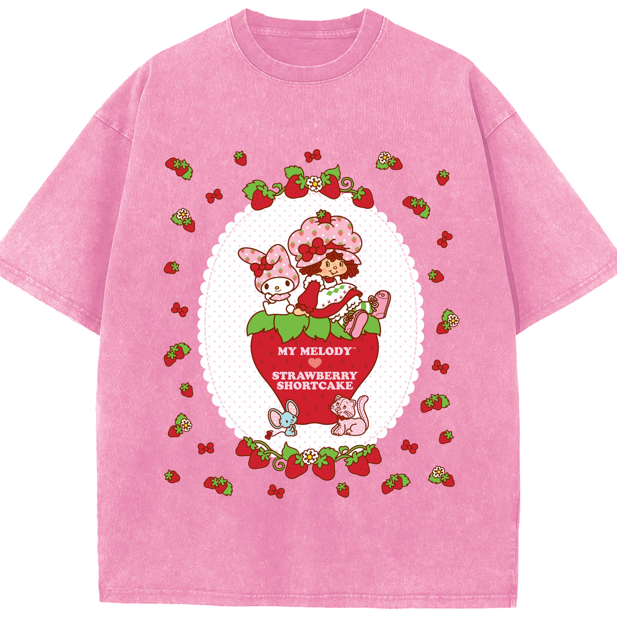 いちごモチーフのマイメロディ - 綿100% 半袖Tシャツ ・ バックプリント ・ 快適 通気性 ・ 日常使い 散歩 スポーツ用