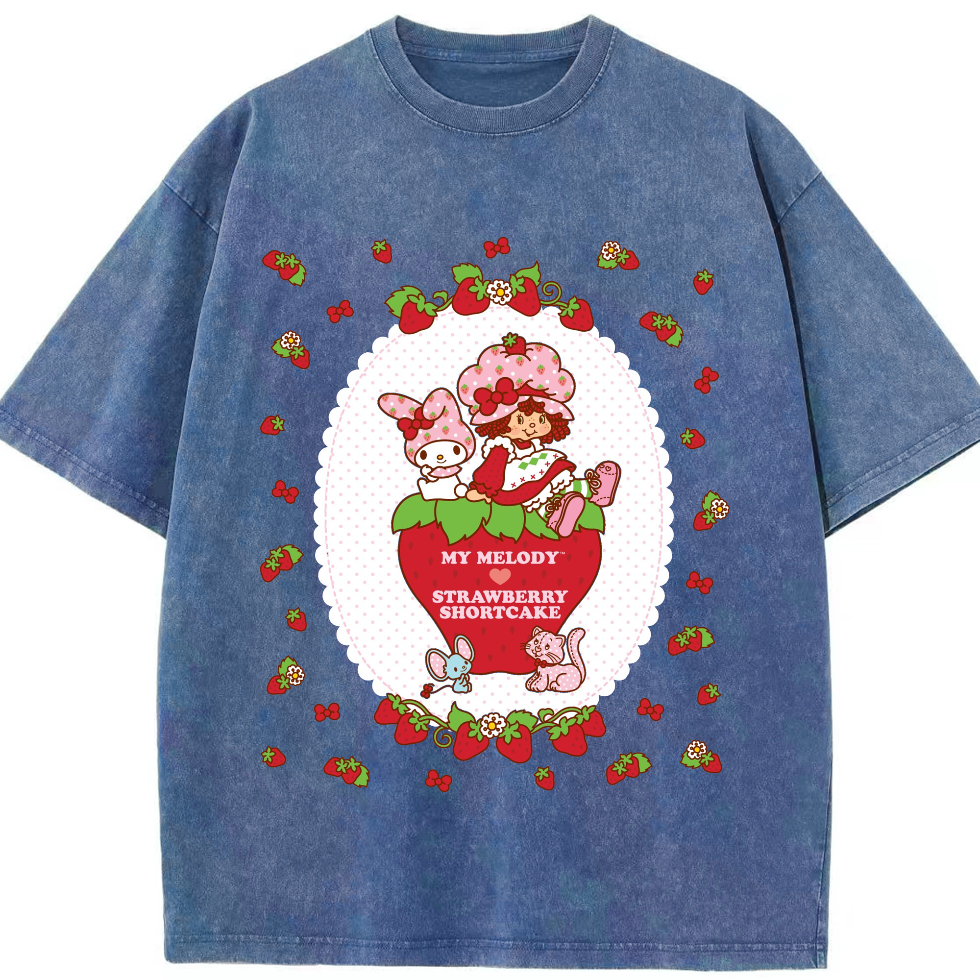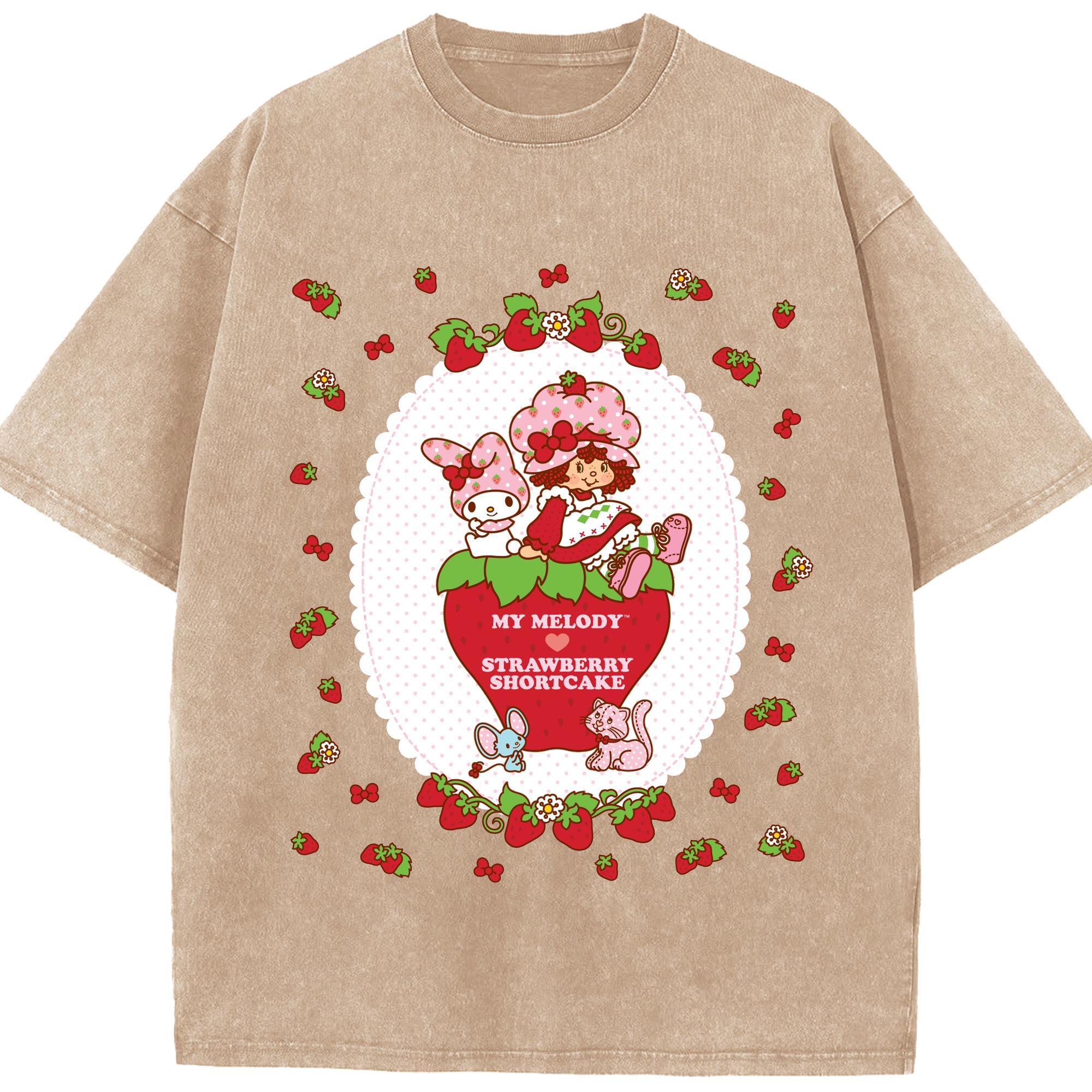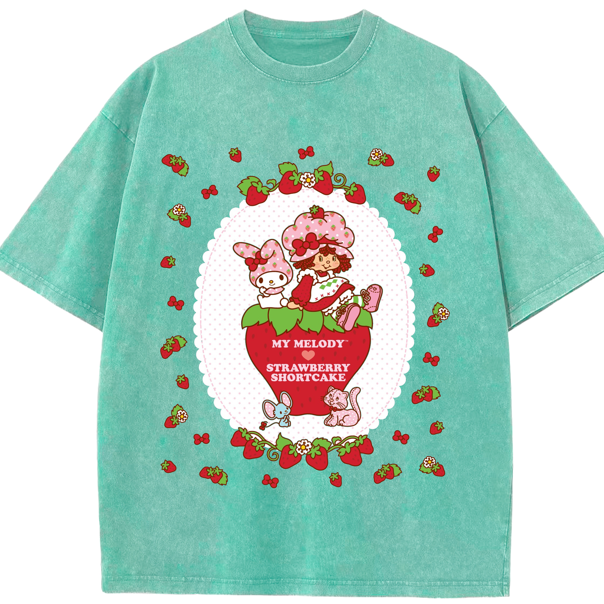 いちごモチーフのマイメロディ - 綿100% 半袖Tシャツ ・ バックプリント ・ 快適 通気性 ・ 日常使い 散歩 スポーツ用