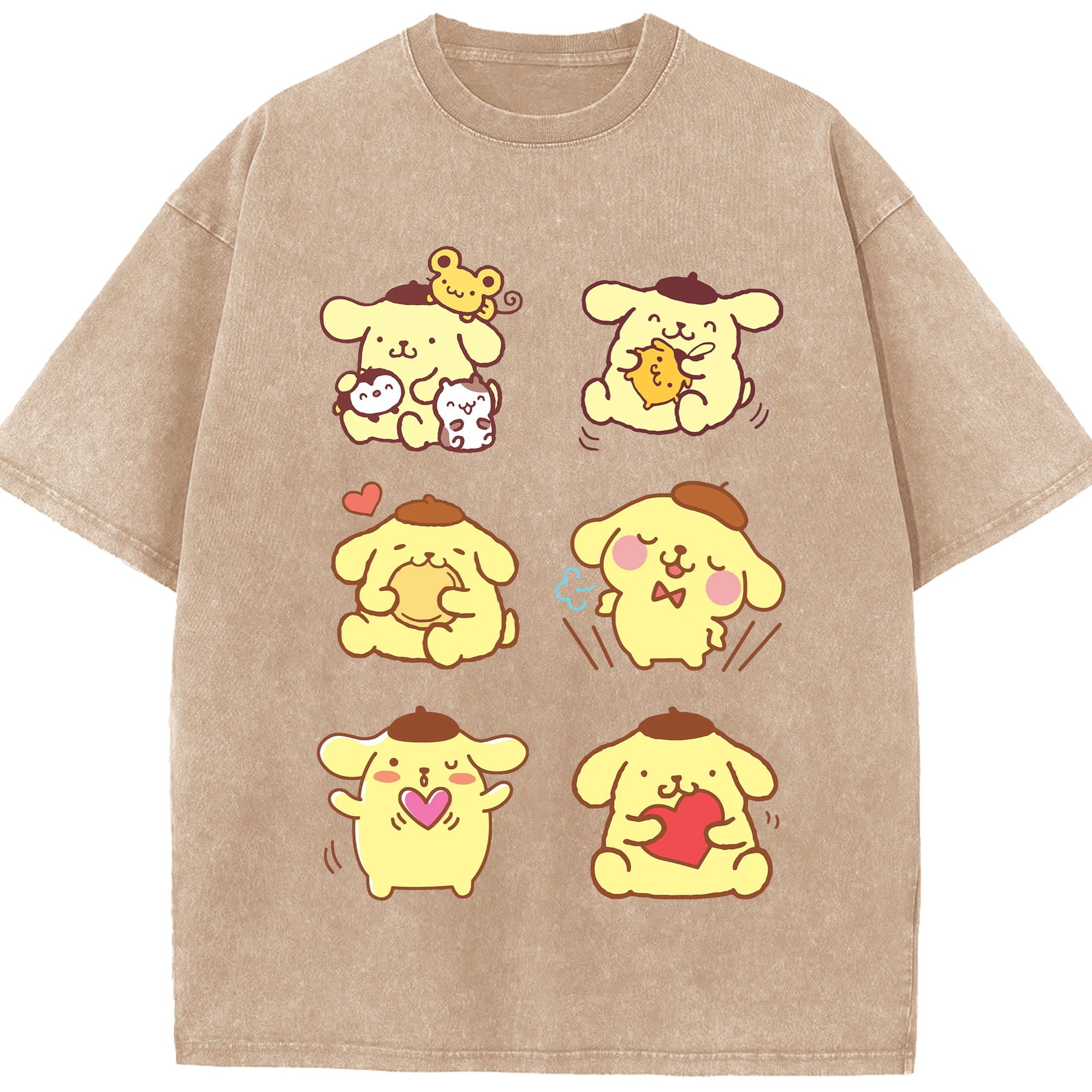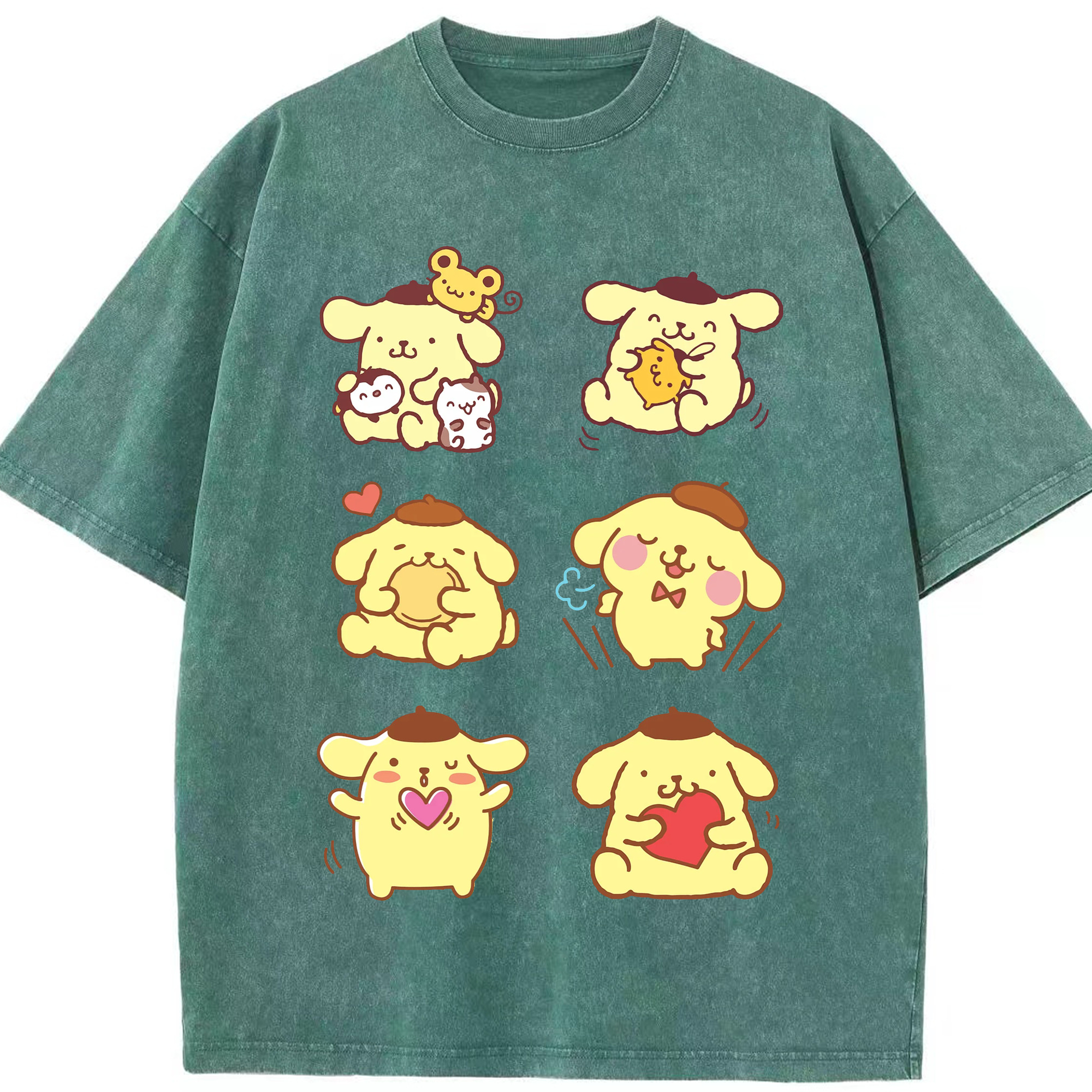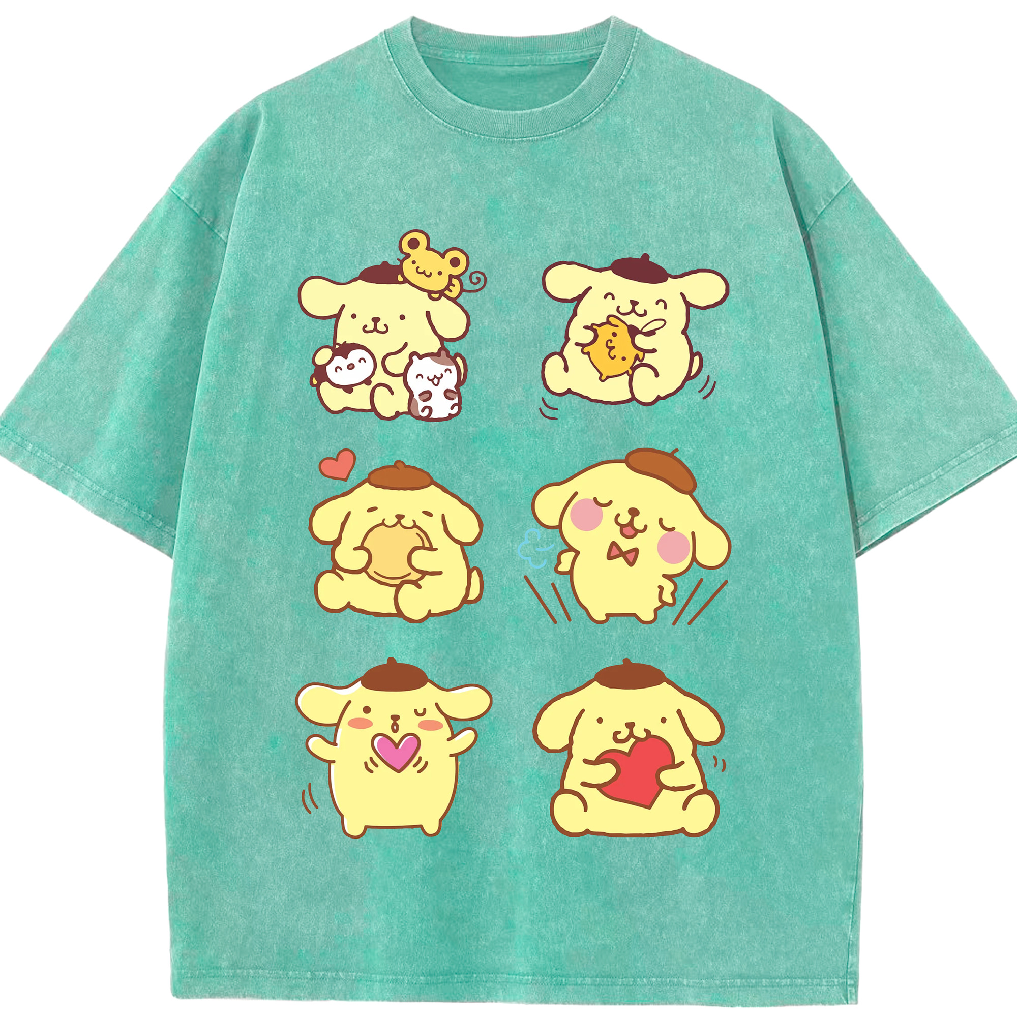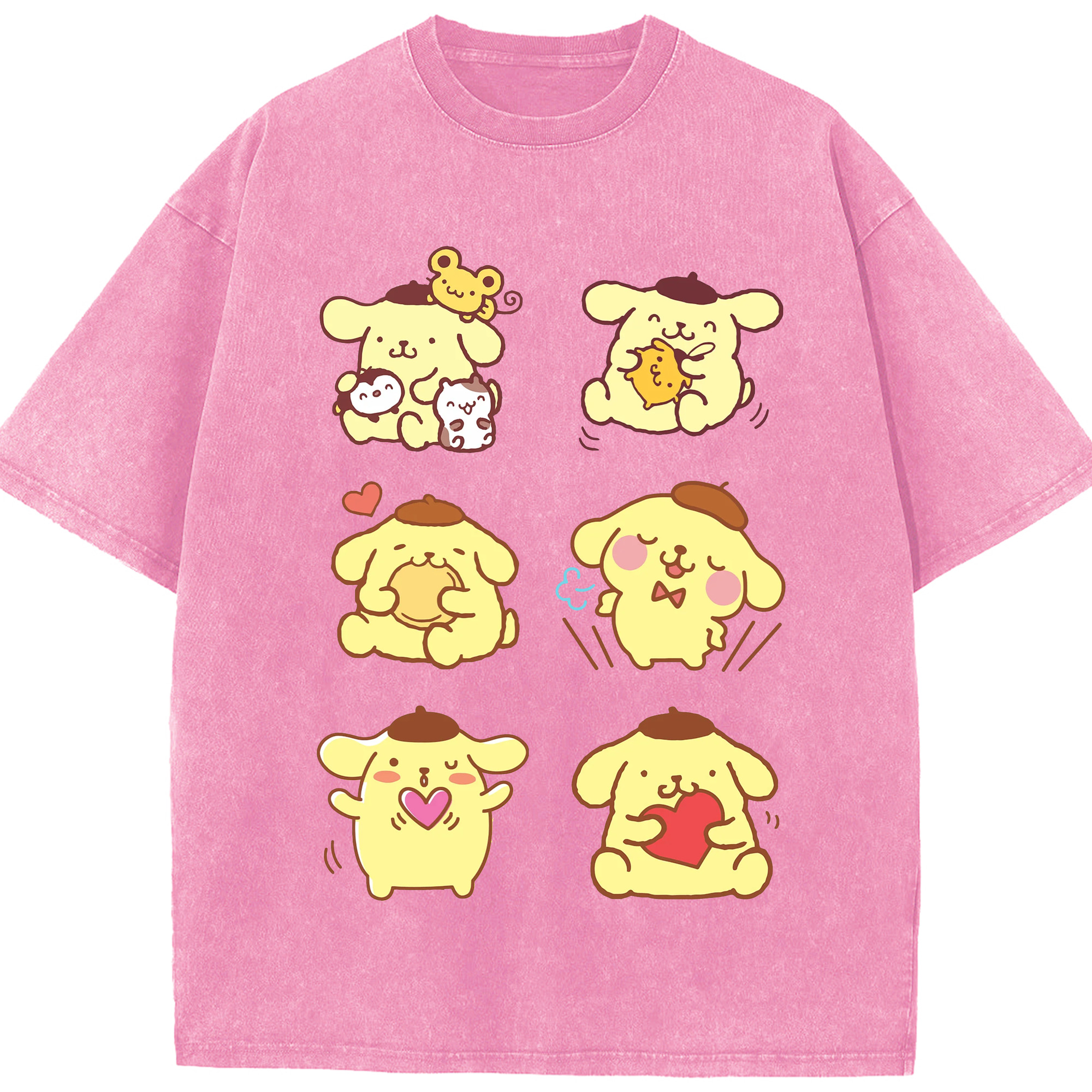 うれしいポムポムプリン - 綿100% 半袖Tシャツ ・ フロントプリント ・ 快適 通気性 ・ 日常使い 散歩 スポーツ用