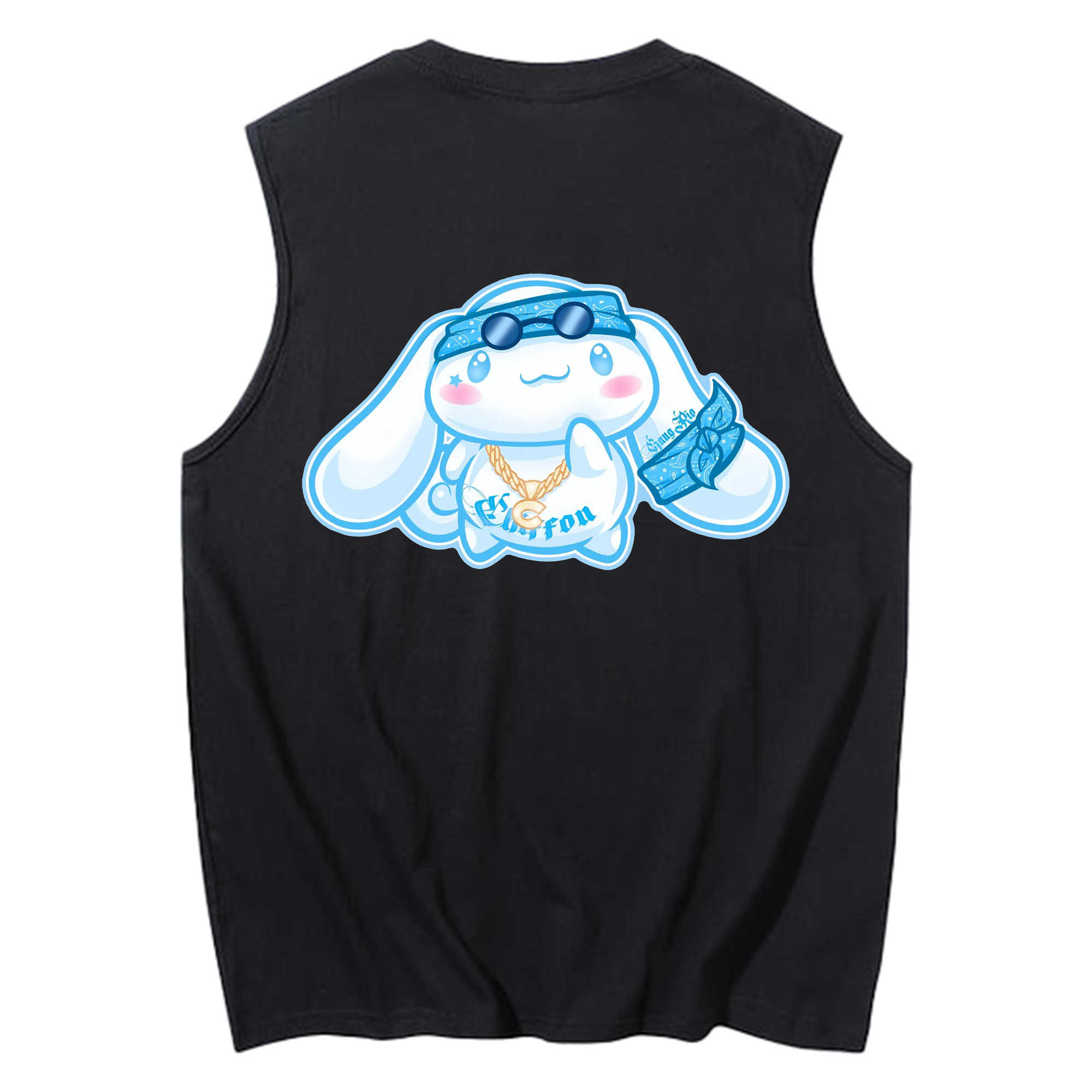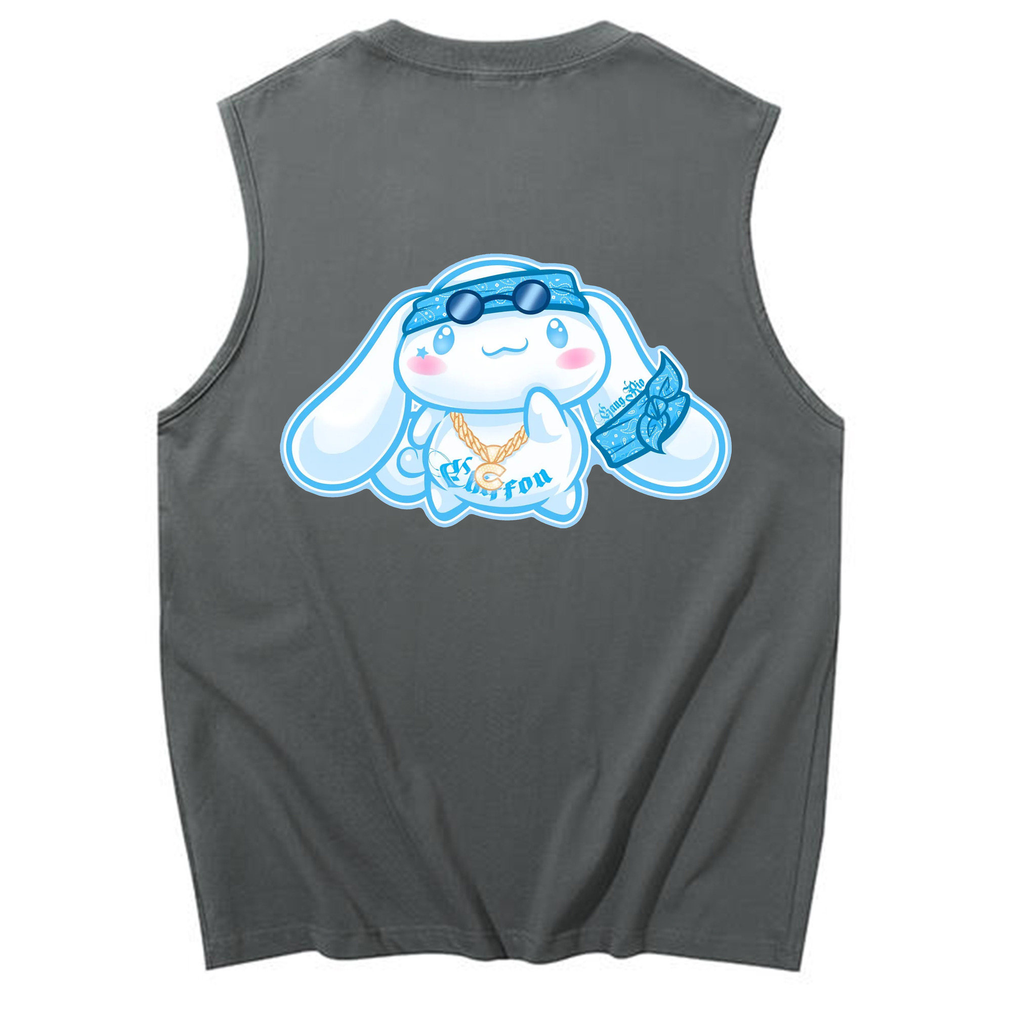 おもしろいシナモロール - コットン100% タンクトップ ・ 背面プリント ・ タイトシルエット ・ 快適 通気性 ・ スポーツ カジュアル 散歩用