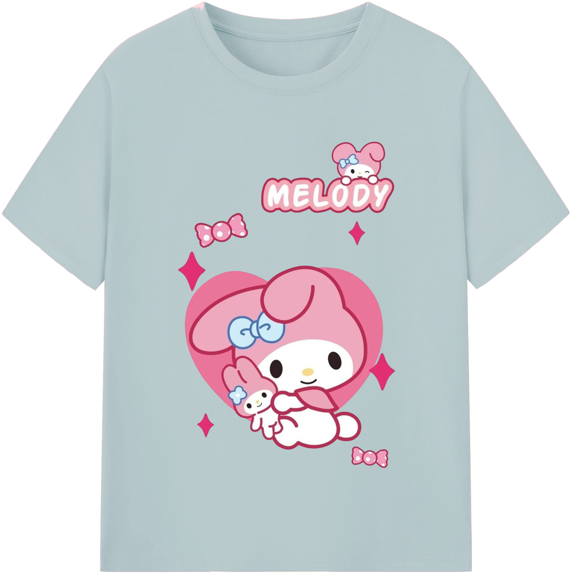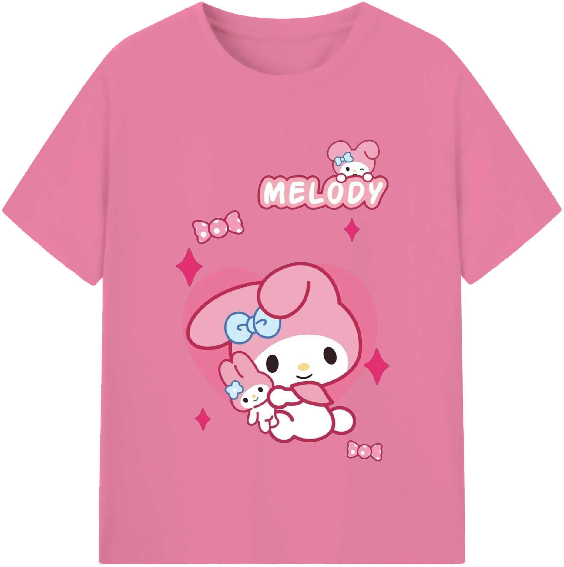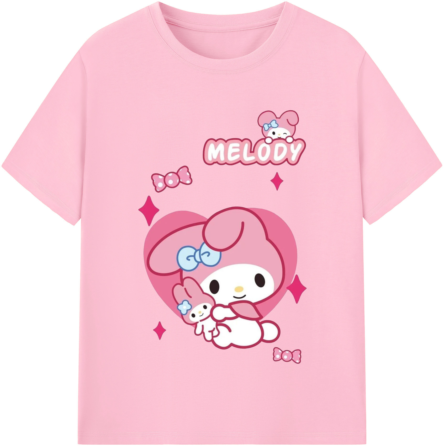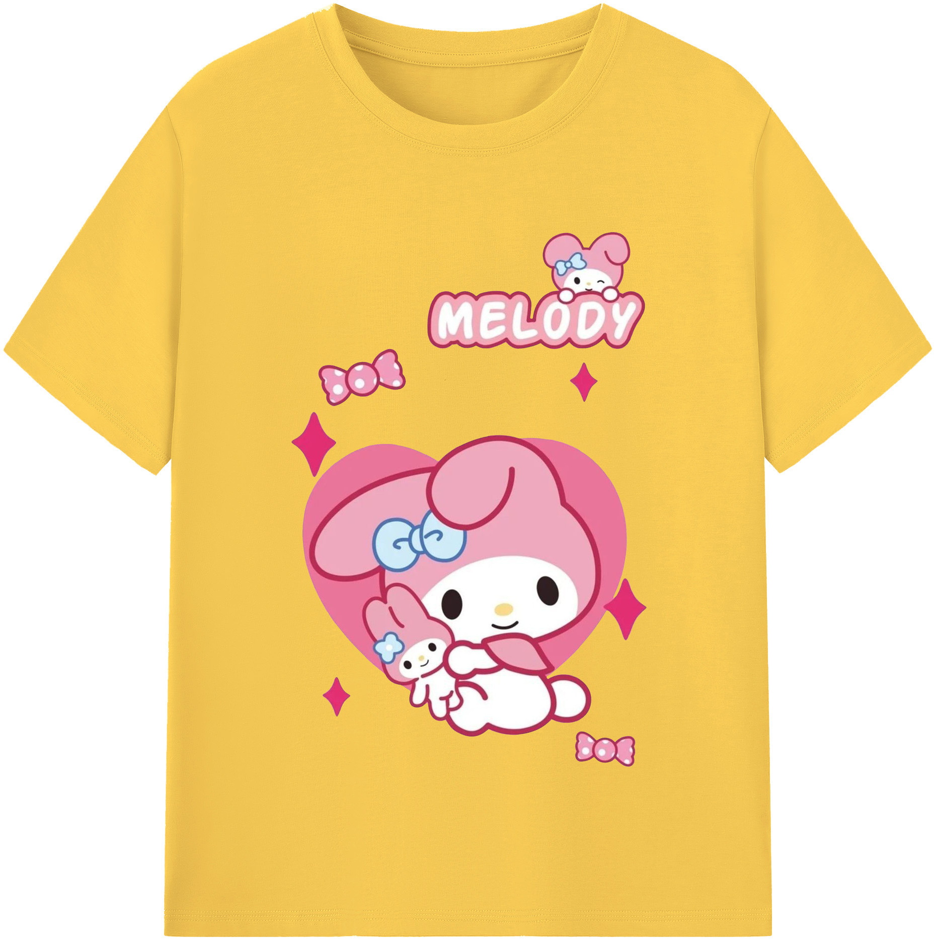 サンリオマイメロディ - 綿100% 半袖Tシャツ ・ フロントプリント ・ 快適 通気性 ・ 日常使い 散歩 スポーツ用