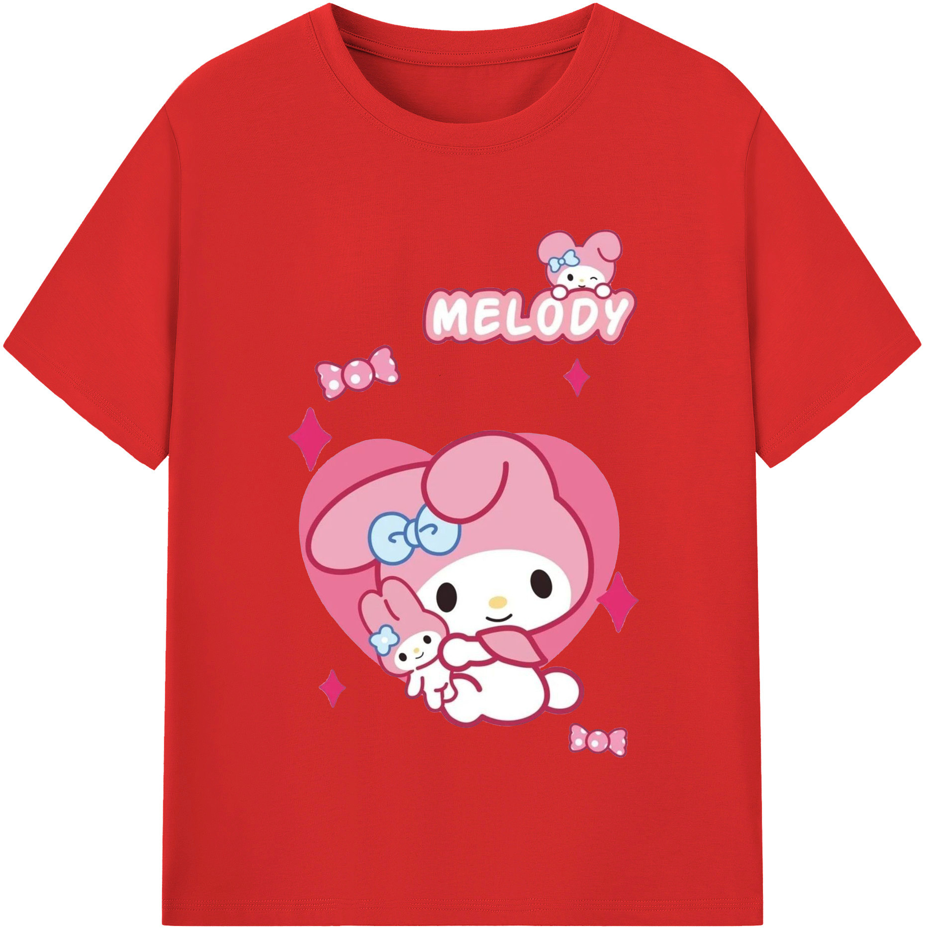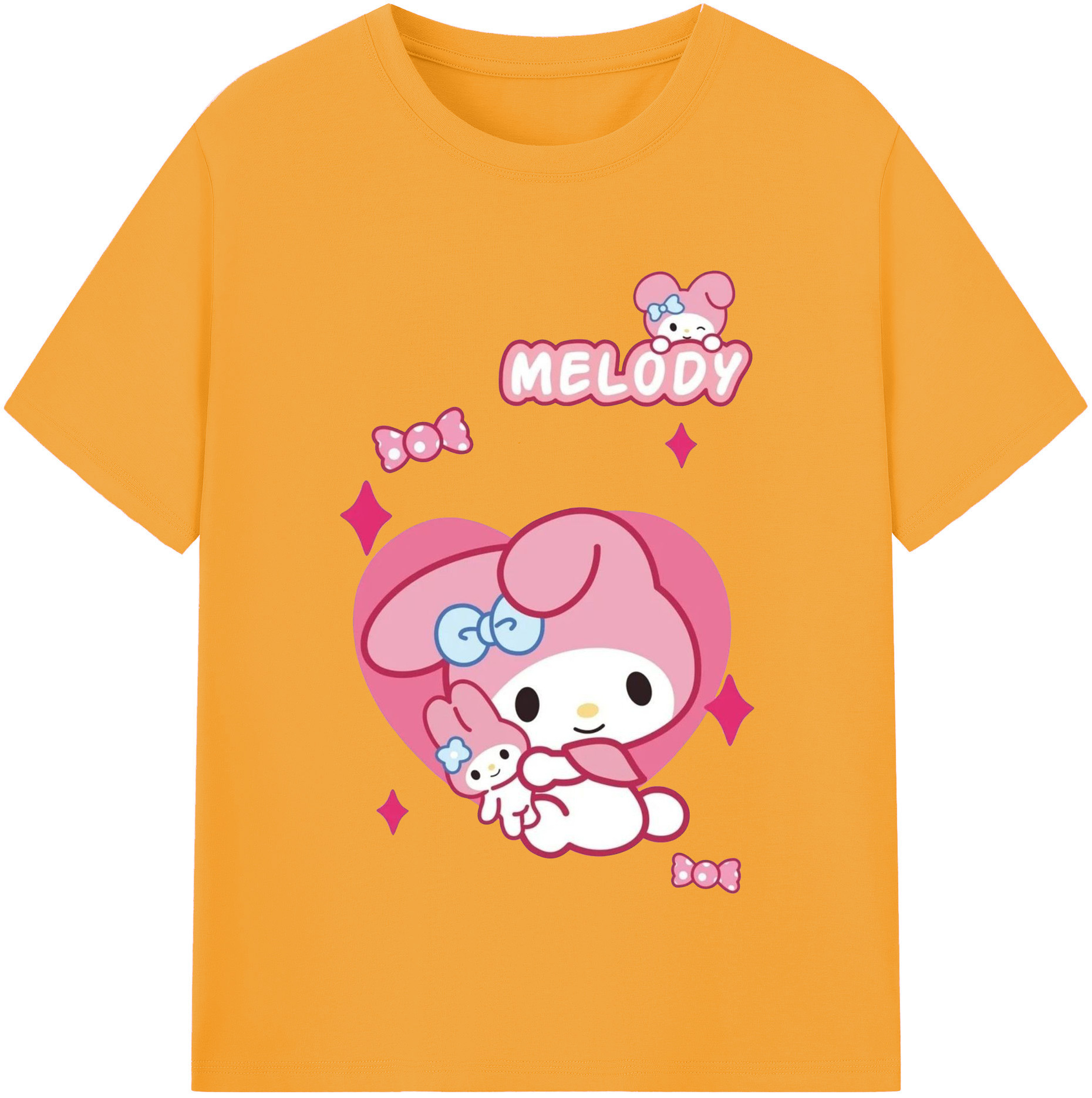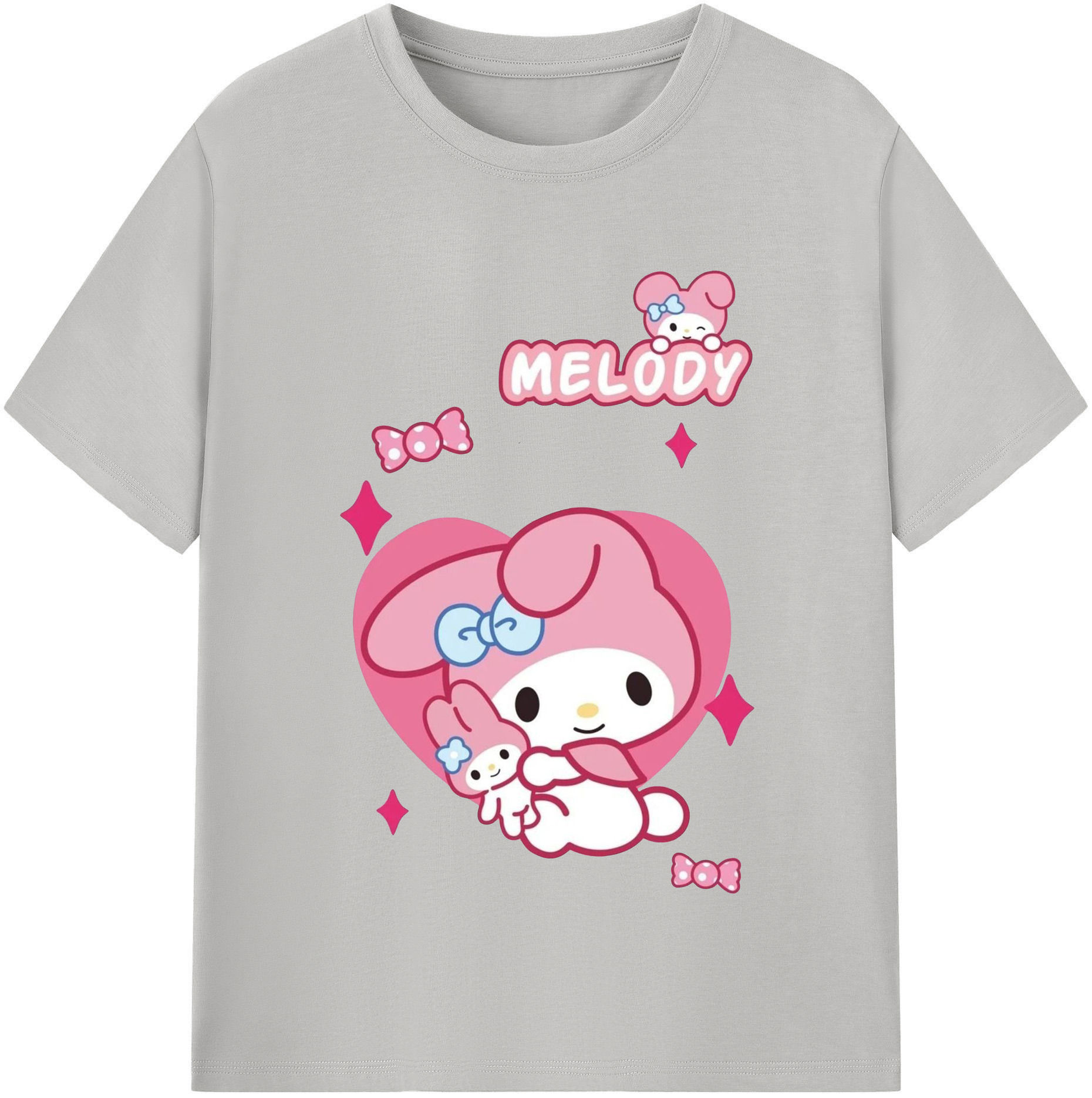 サンリオマイメロディ - 綿100% 半袖Tシャツ ・ フロントプリント ・ 快適 通気性 ・ 日常使い 散歩 スポーツ用