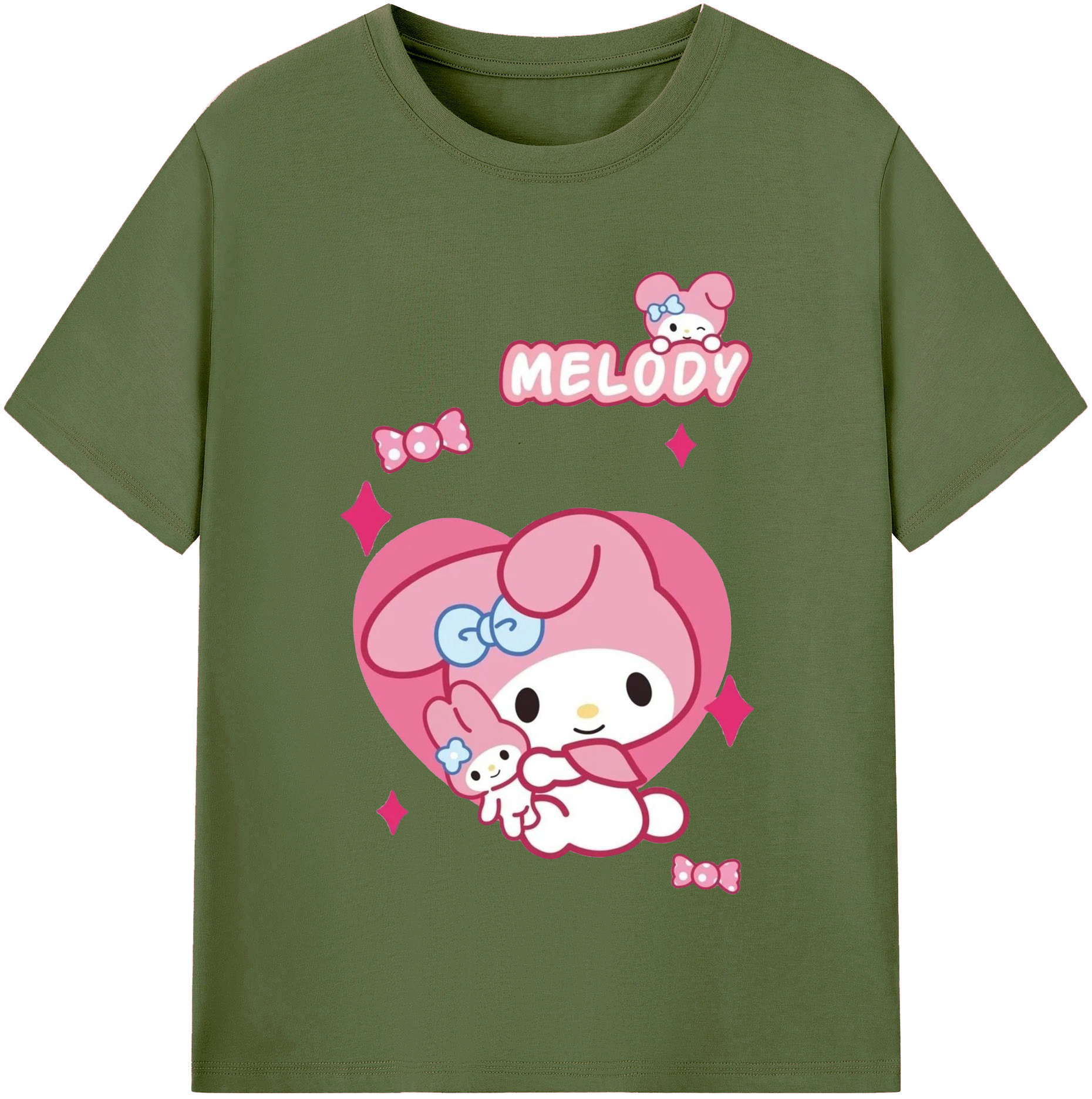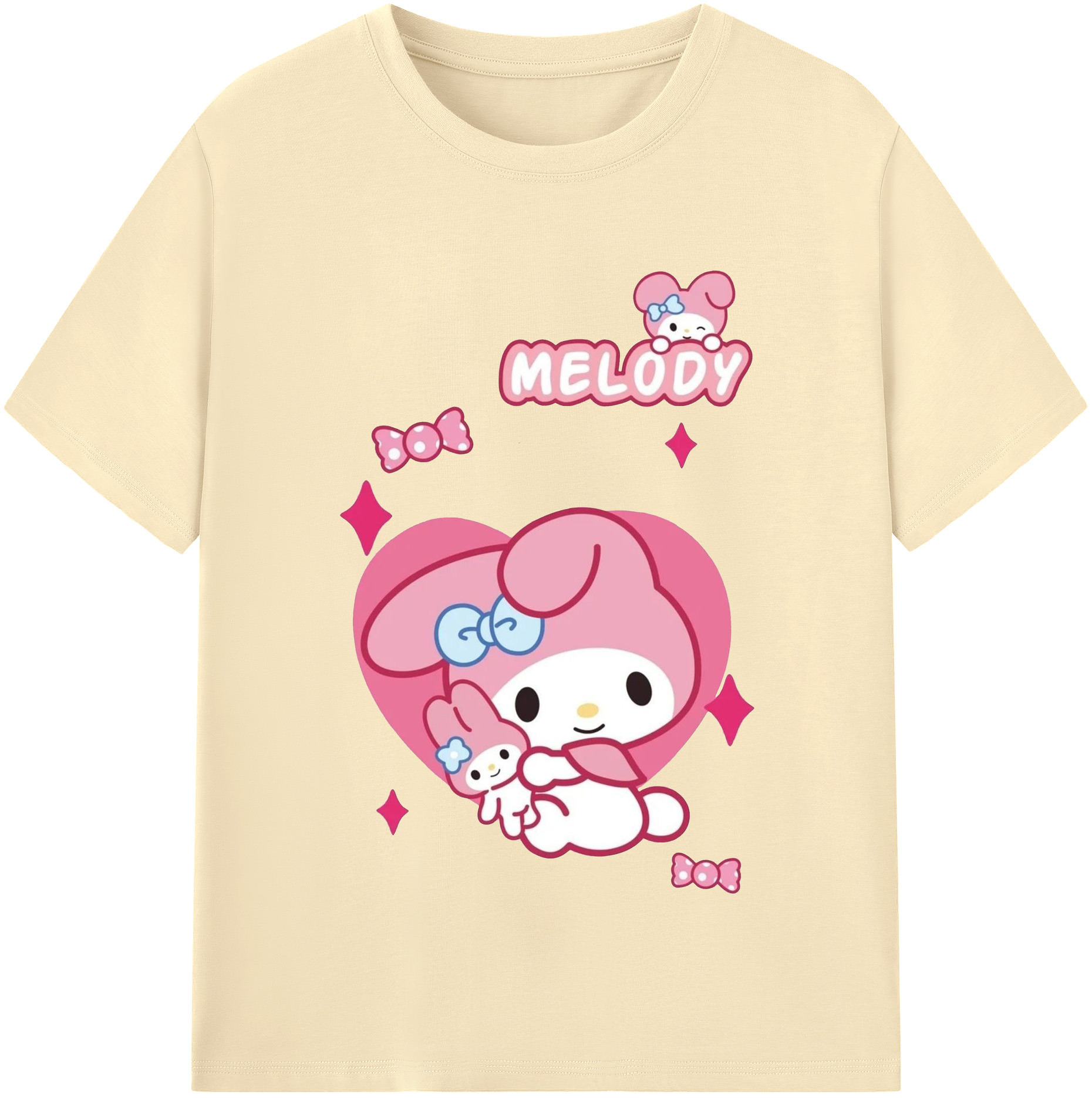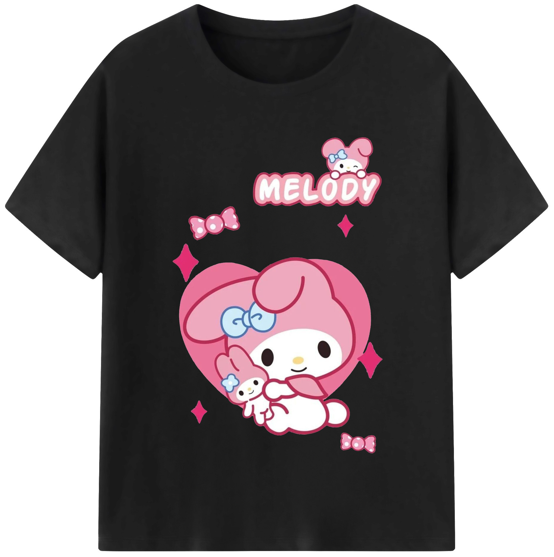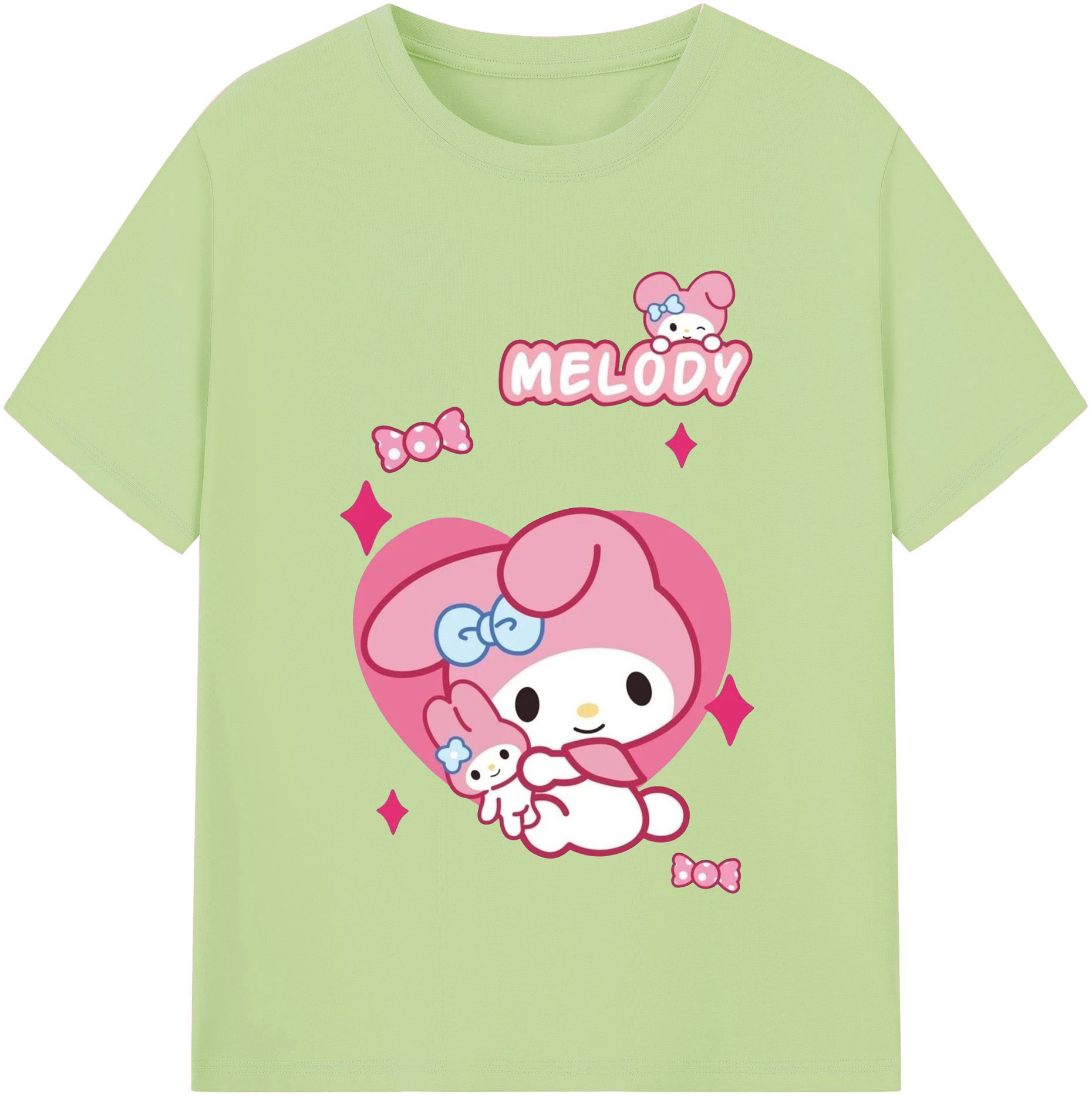 サンリオマイメロディ - 綿100% 半袖Tシャツ ・ フロントプリント ・ 快適 通気性 ・ 日常使い 散歩 スポーツ用
