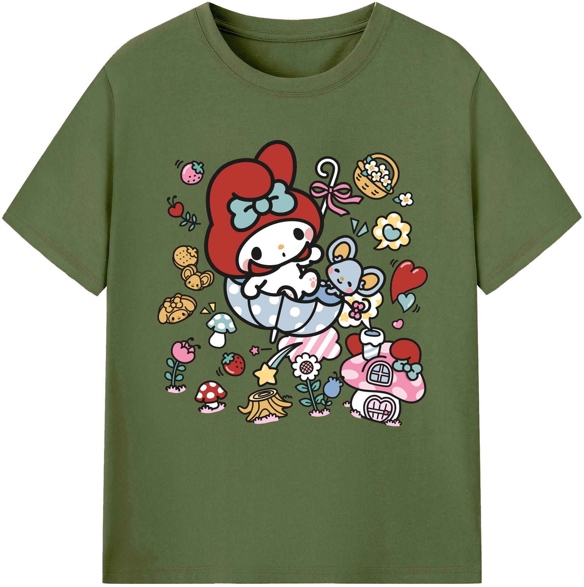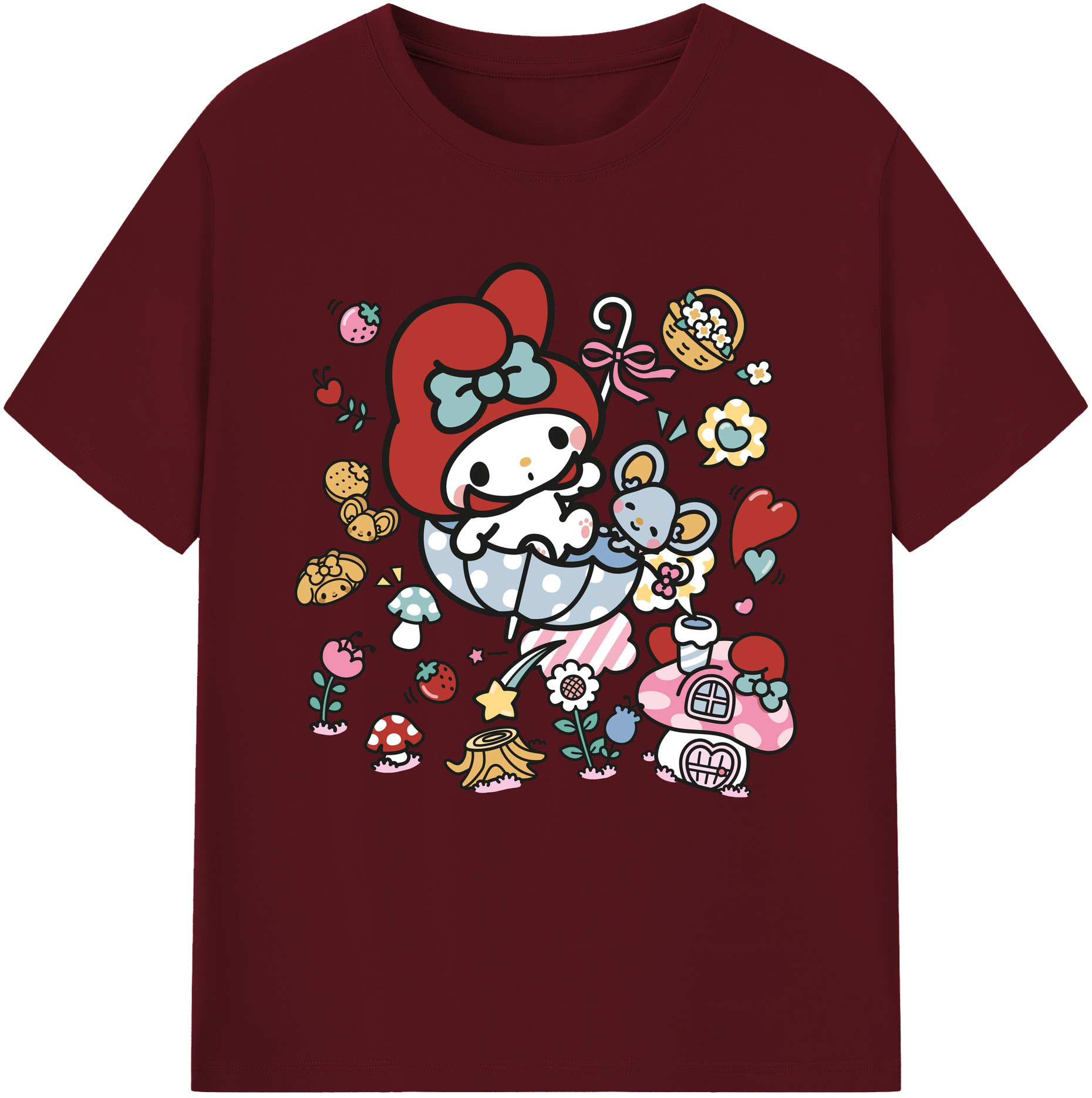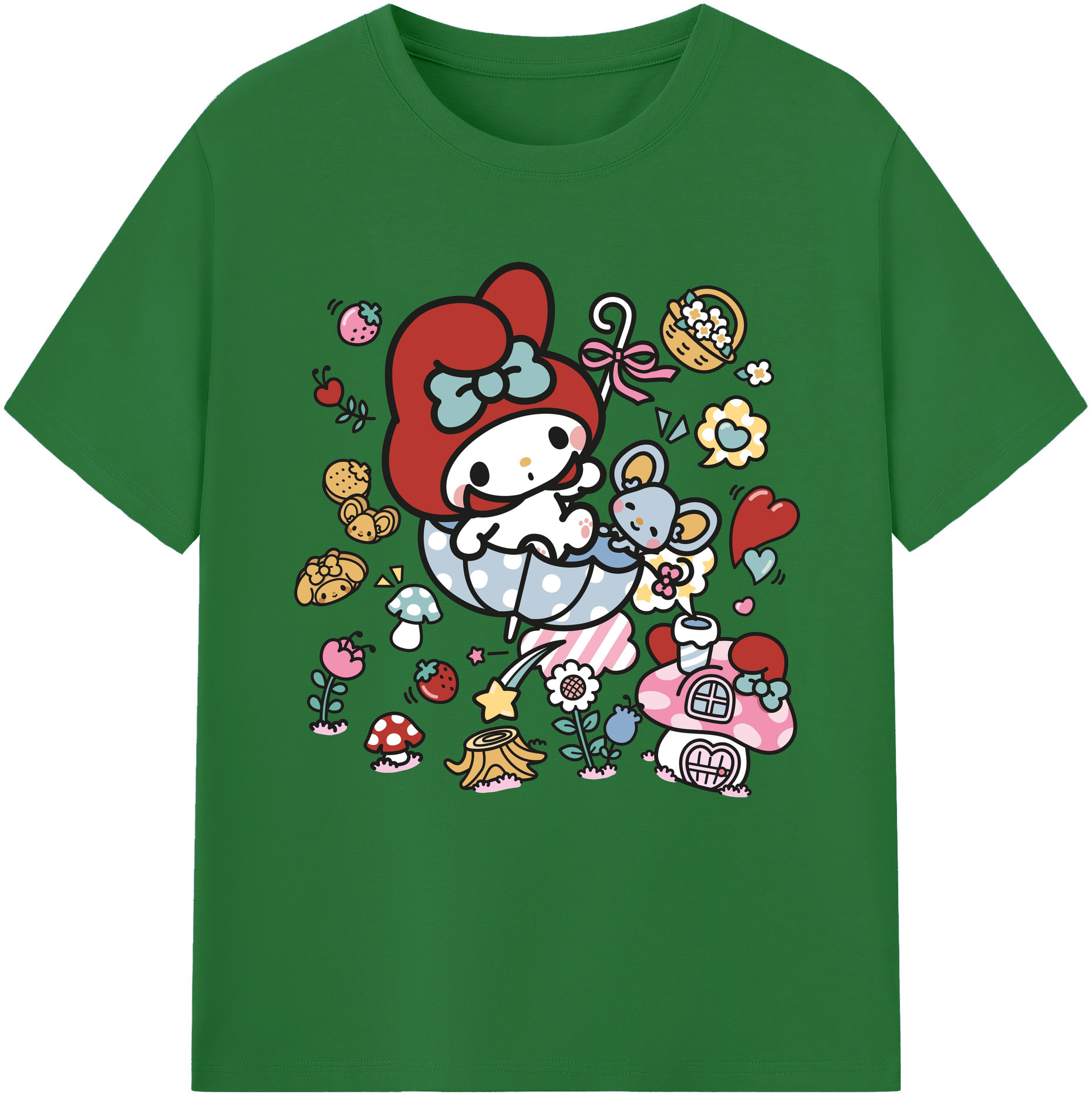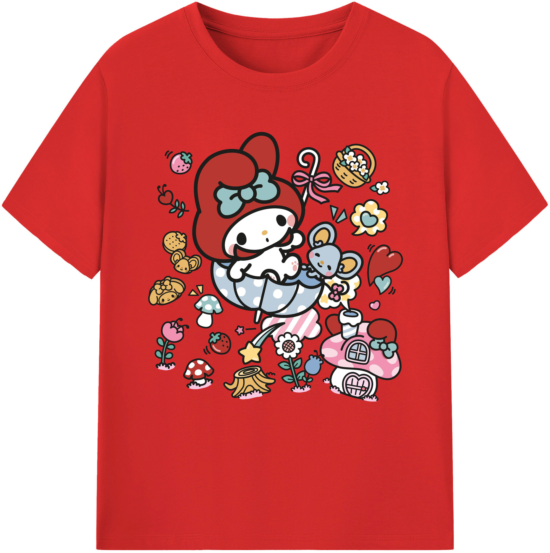 おもしろいマイメロディ - 綿100% 半袖Tシャツ ・ フロントプリント ・ 快適 通気性 ・ 日常使い 散歩 スポーツ用