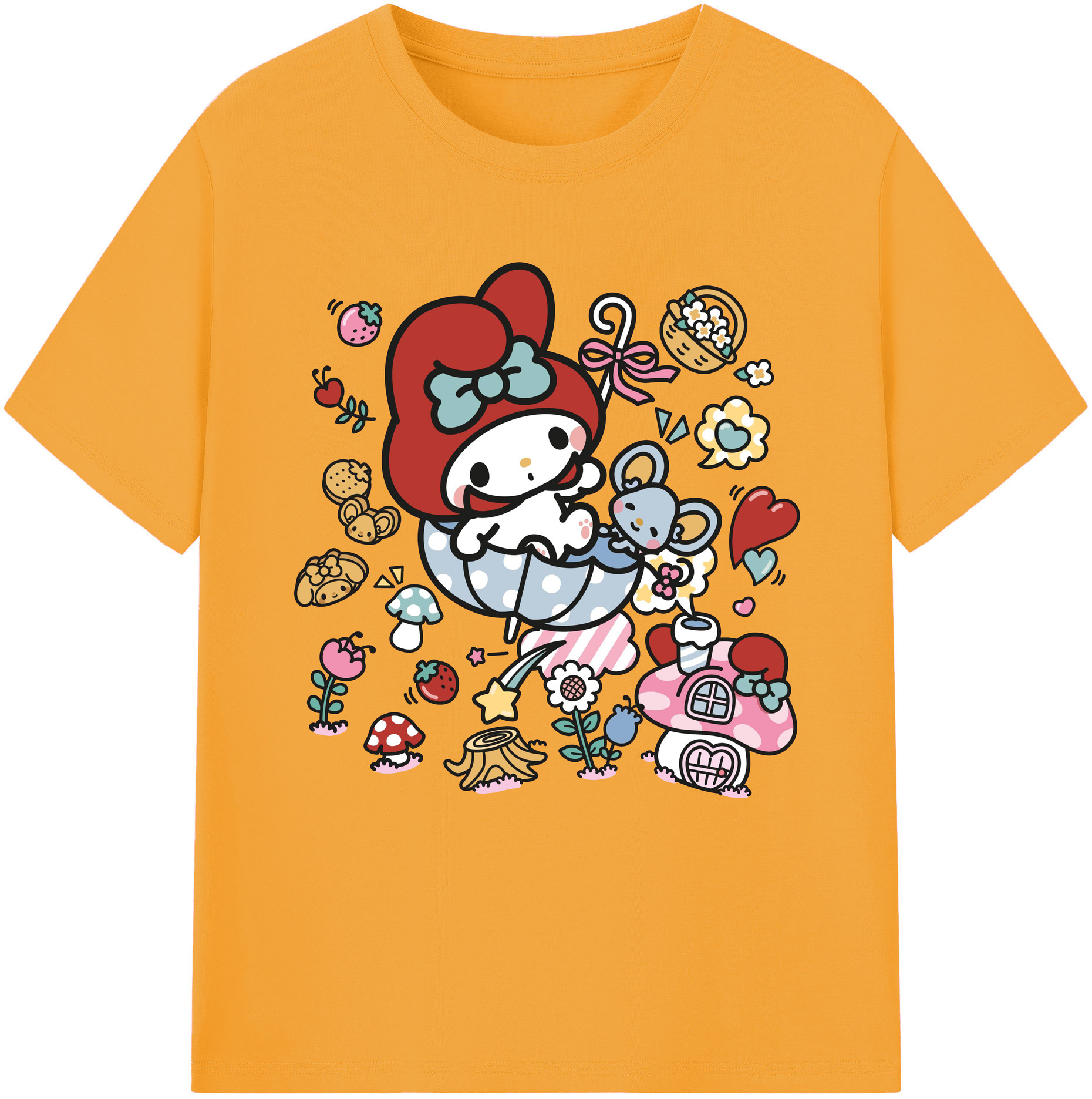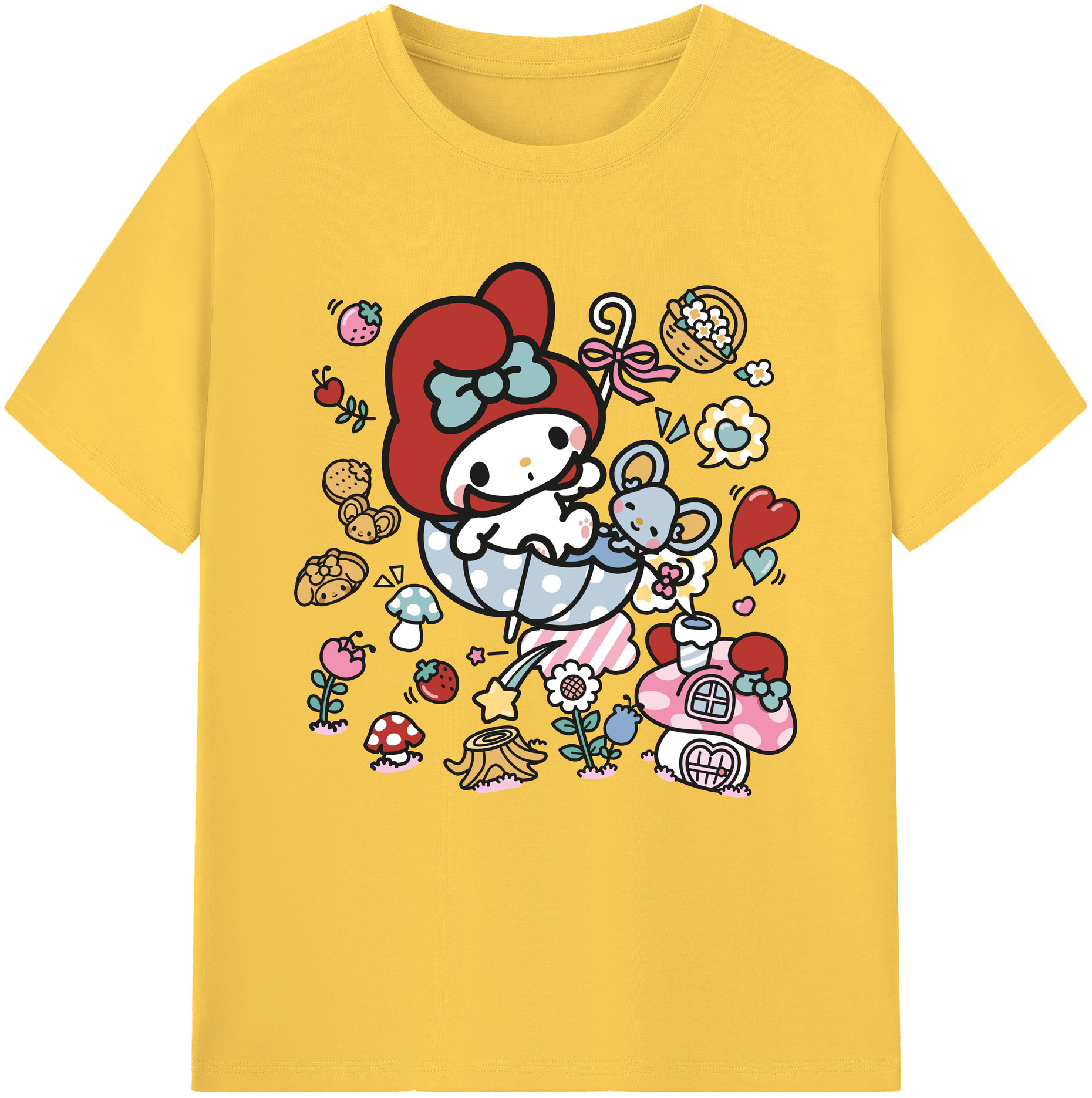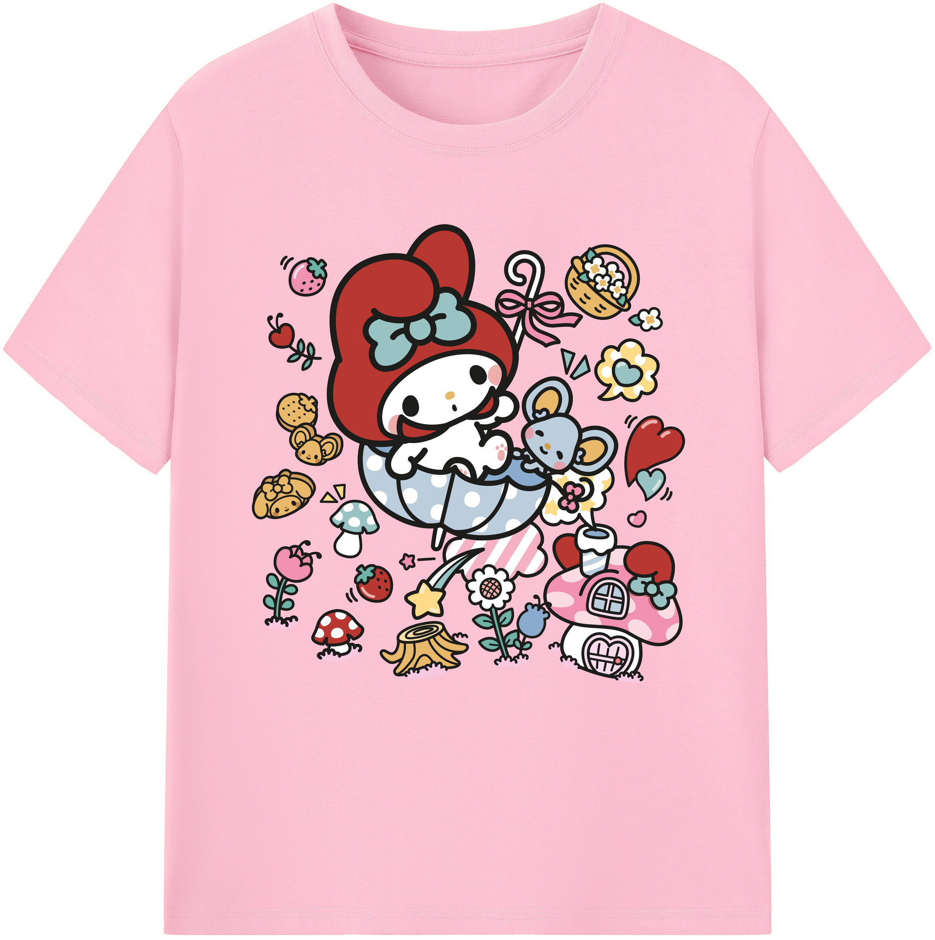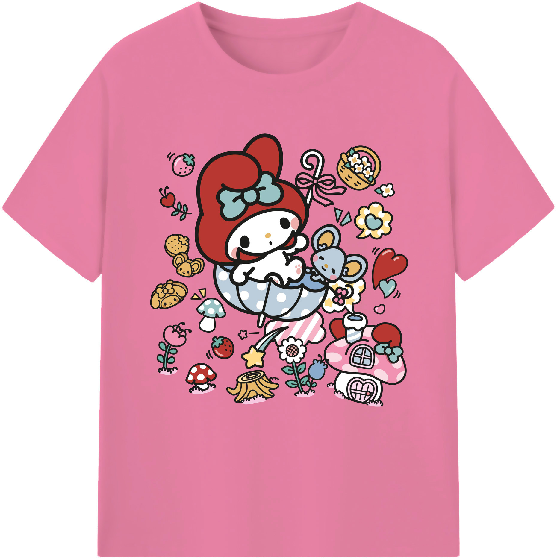 サンリオマイメロディ - 綿100% 半袖Tシャツ ・ フロントプリント ・ 快適 通気性 ・ 日常使い 散歩 スポーツ用