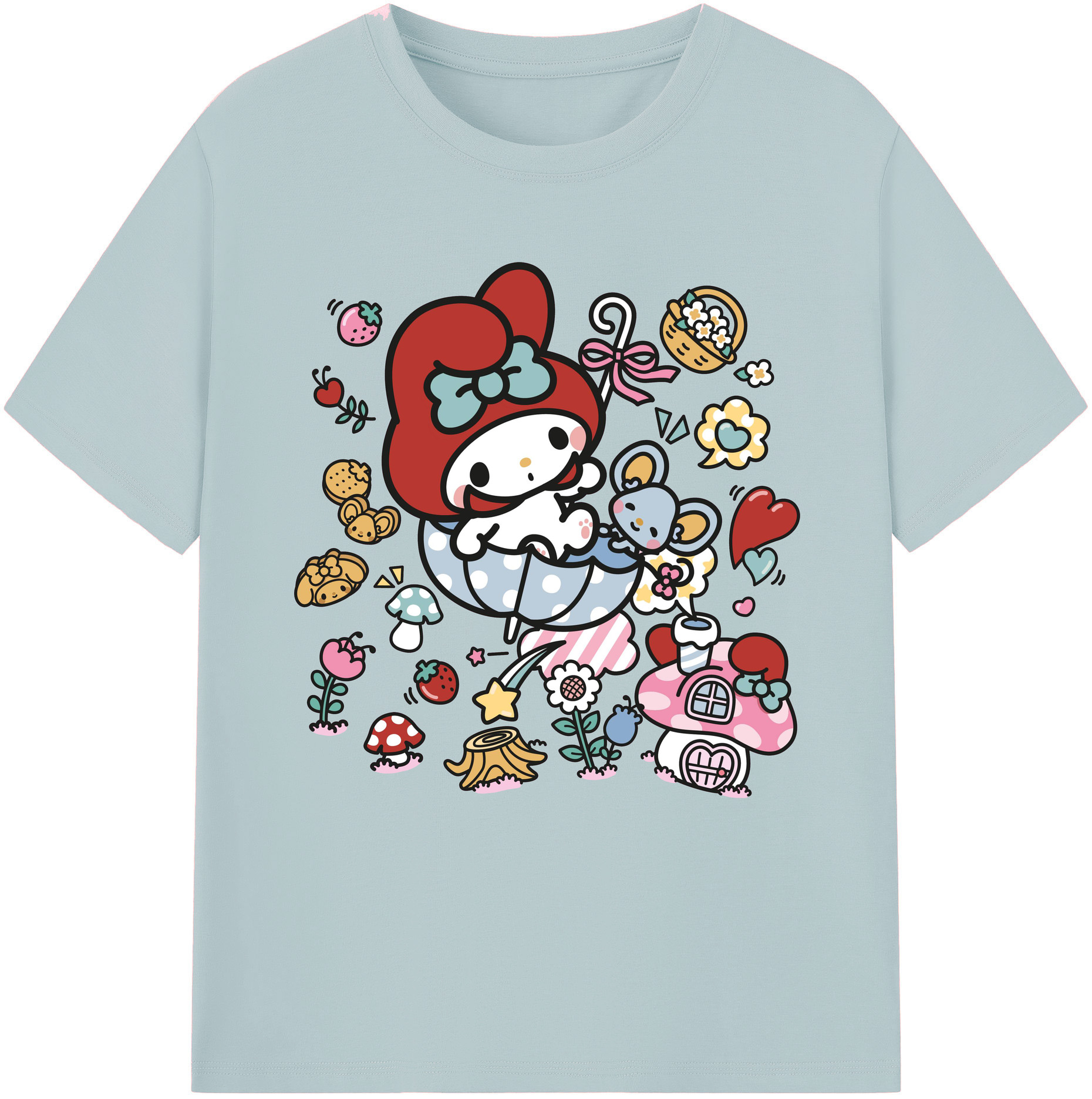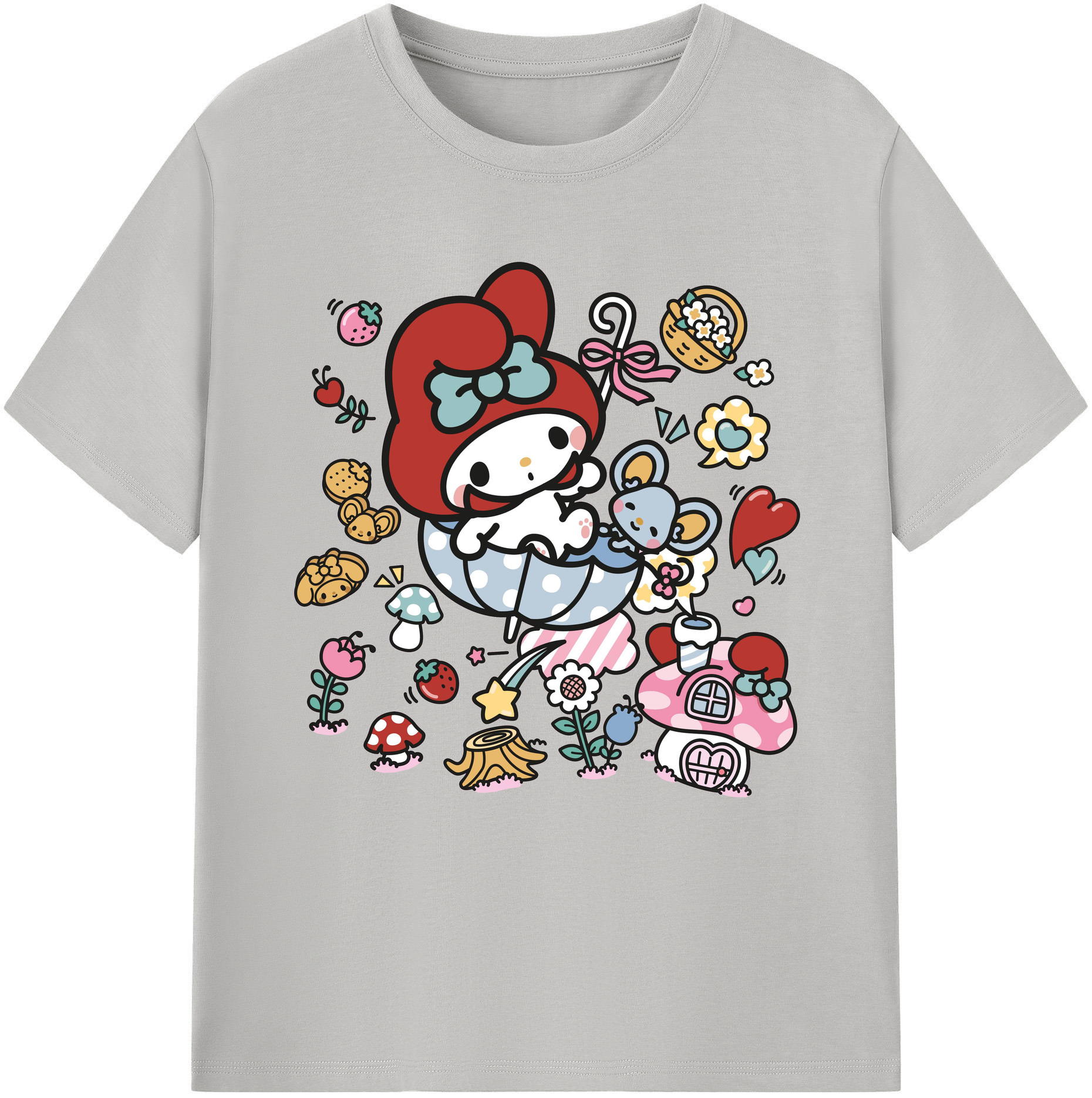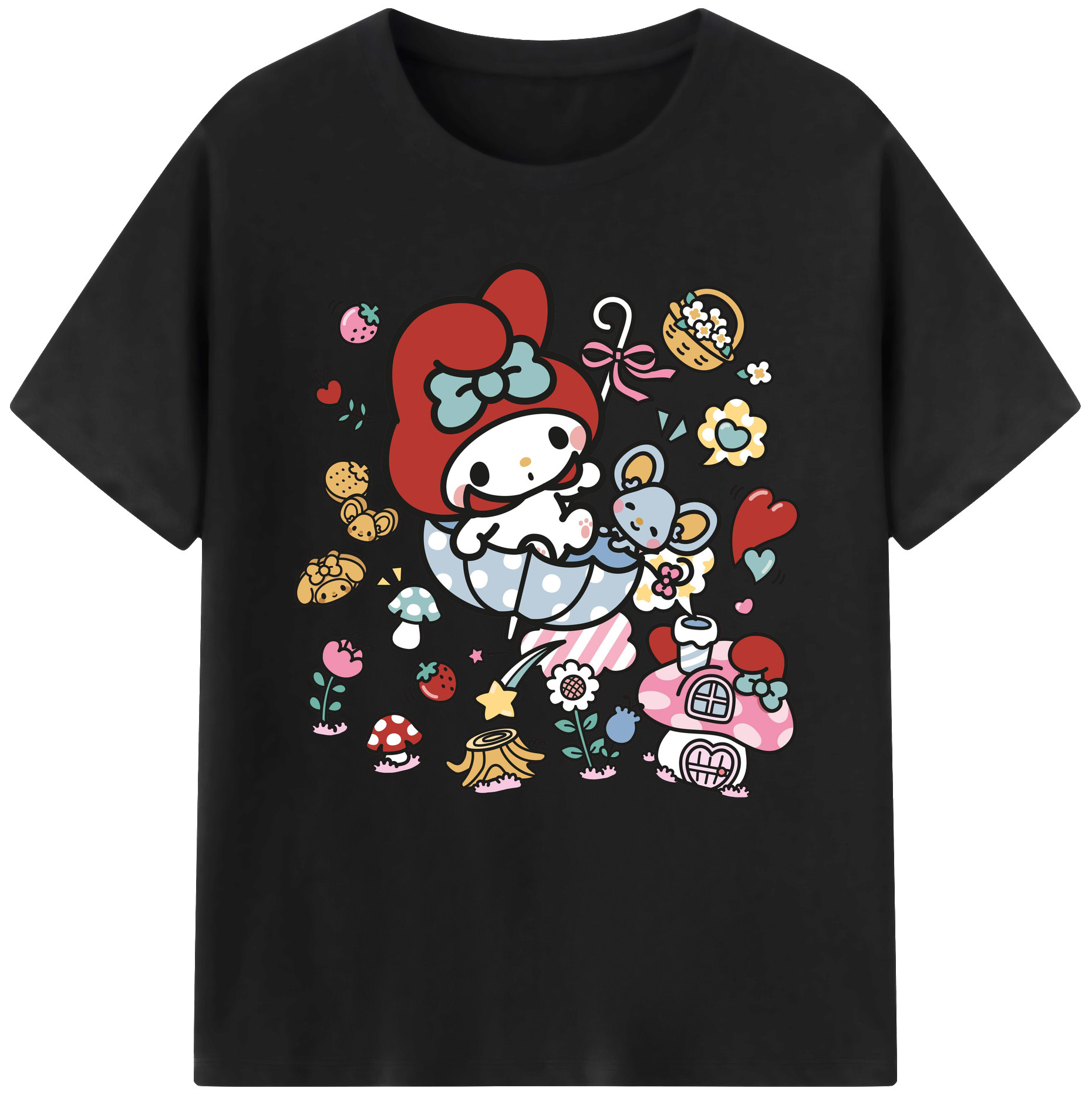 サンリオマイメロディ - 綿100% 半袖Tシャツ ・ フロントプリント ・ 快適 通気性 ・ 日常使い 散歩 スポーツ用
