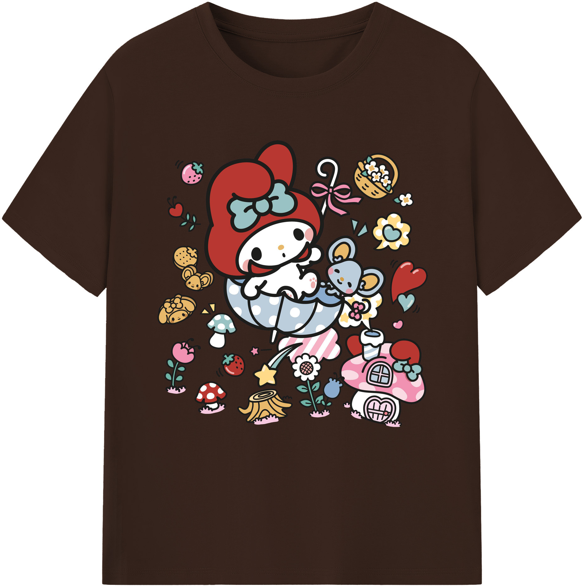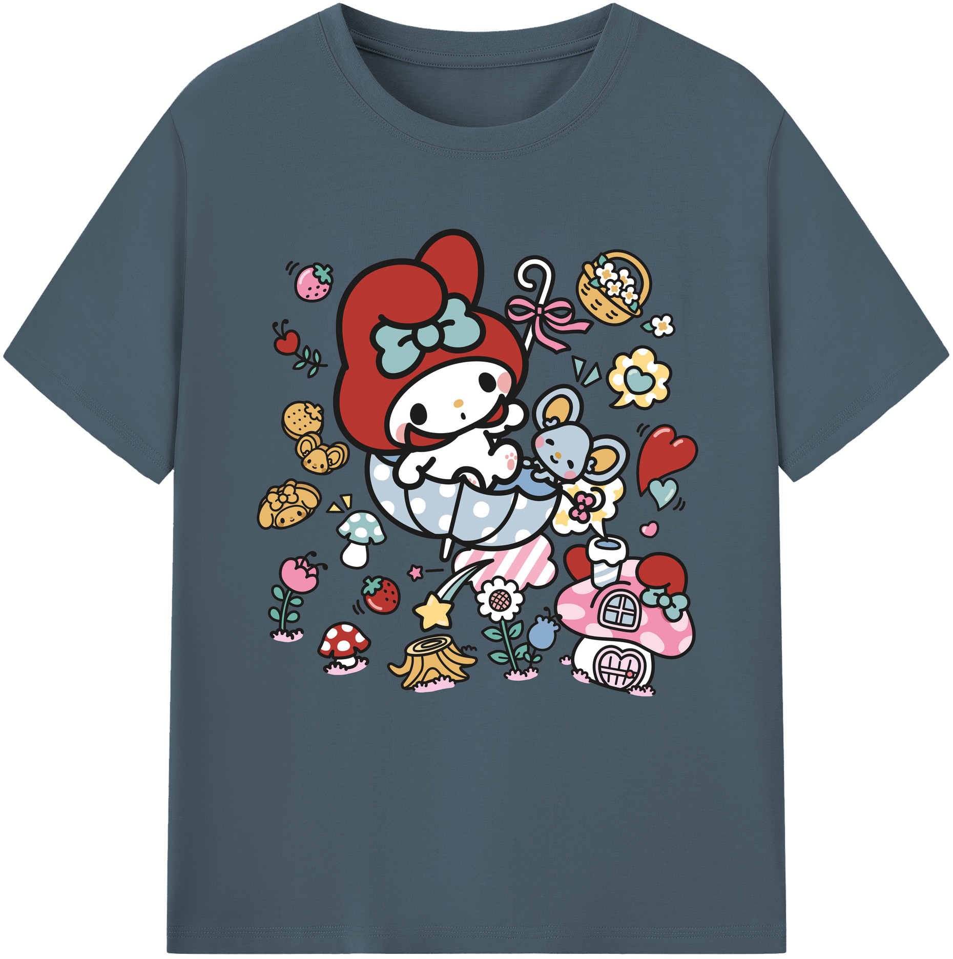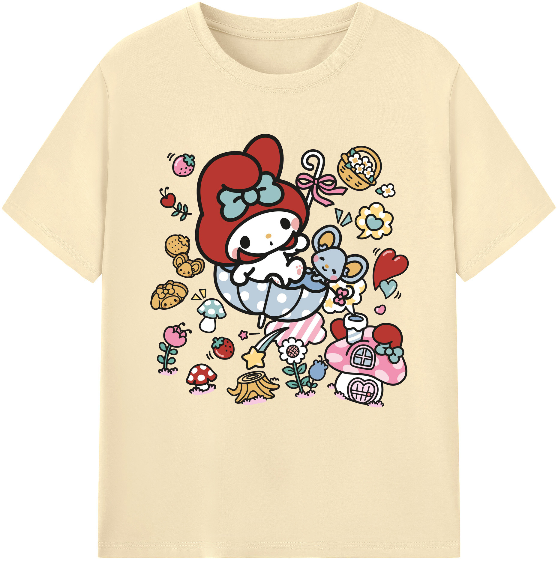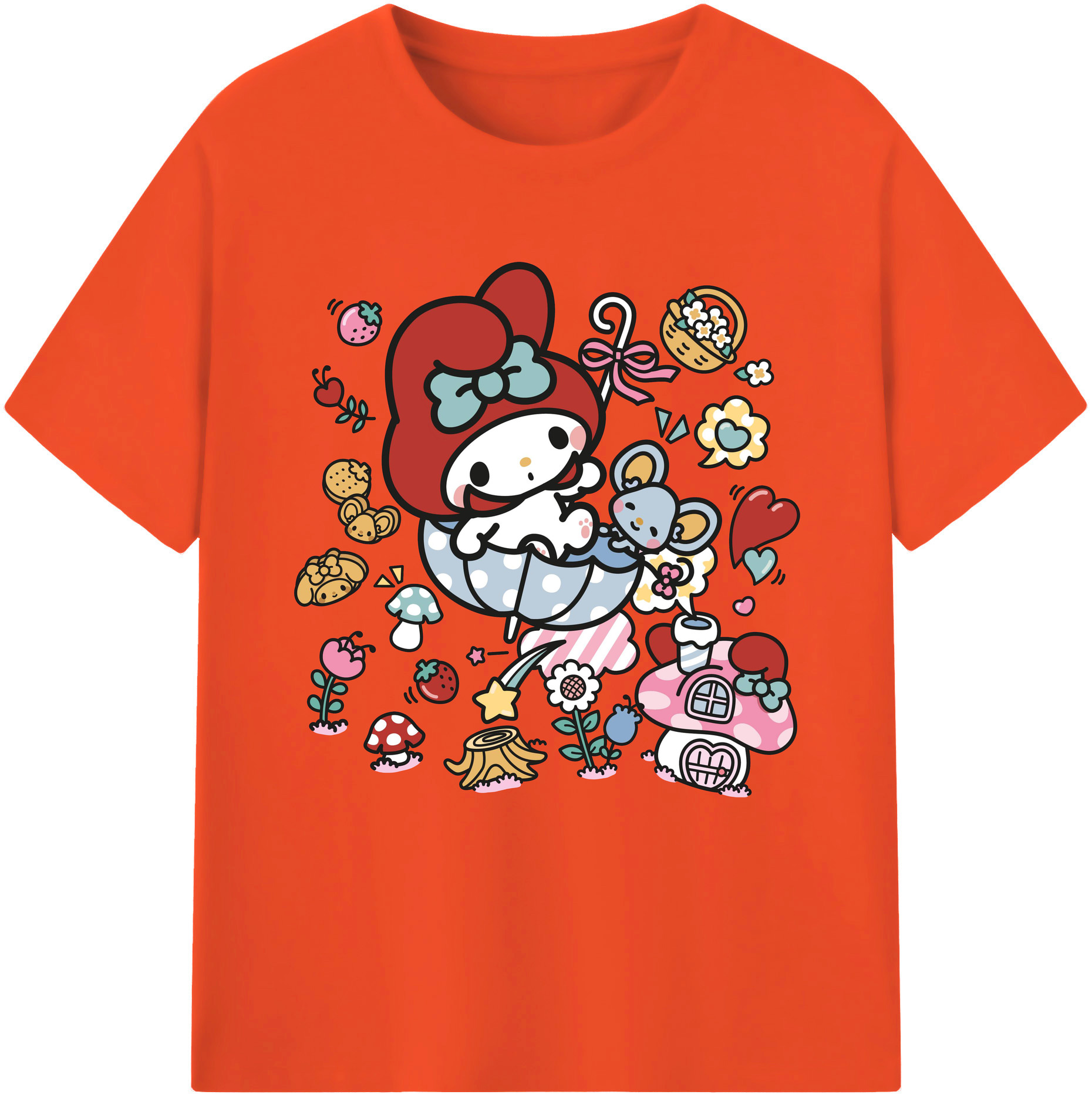 サンリオマイメロディ - 綿100% 半袖Tシャツ ・ フロントプリント ・ 快適 通気性 ・ 日常使い 散歩 スポーツ用
