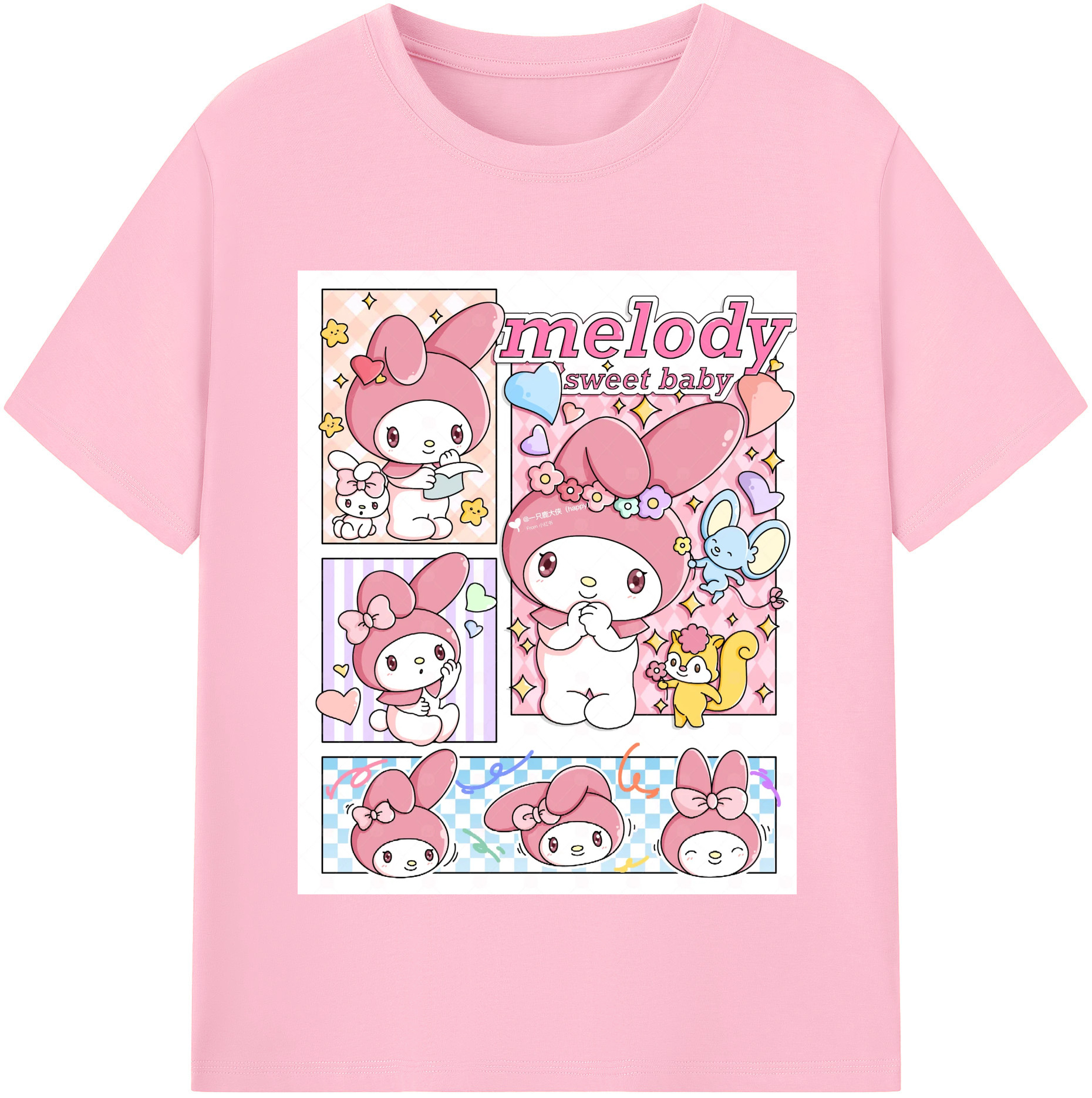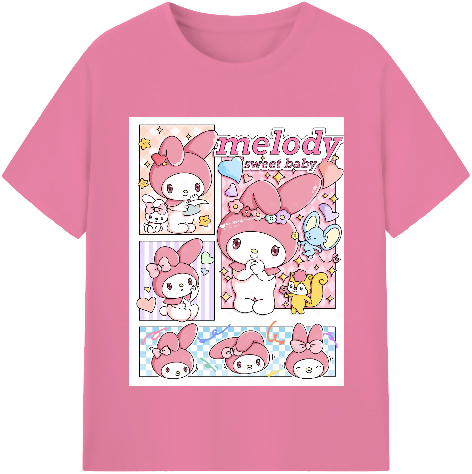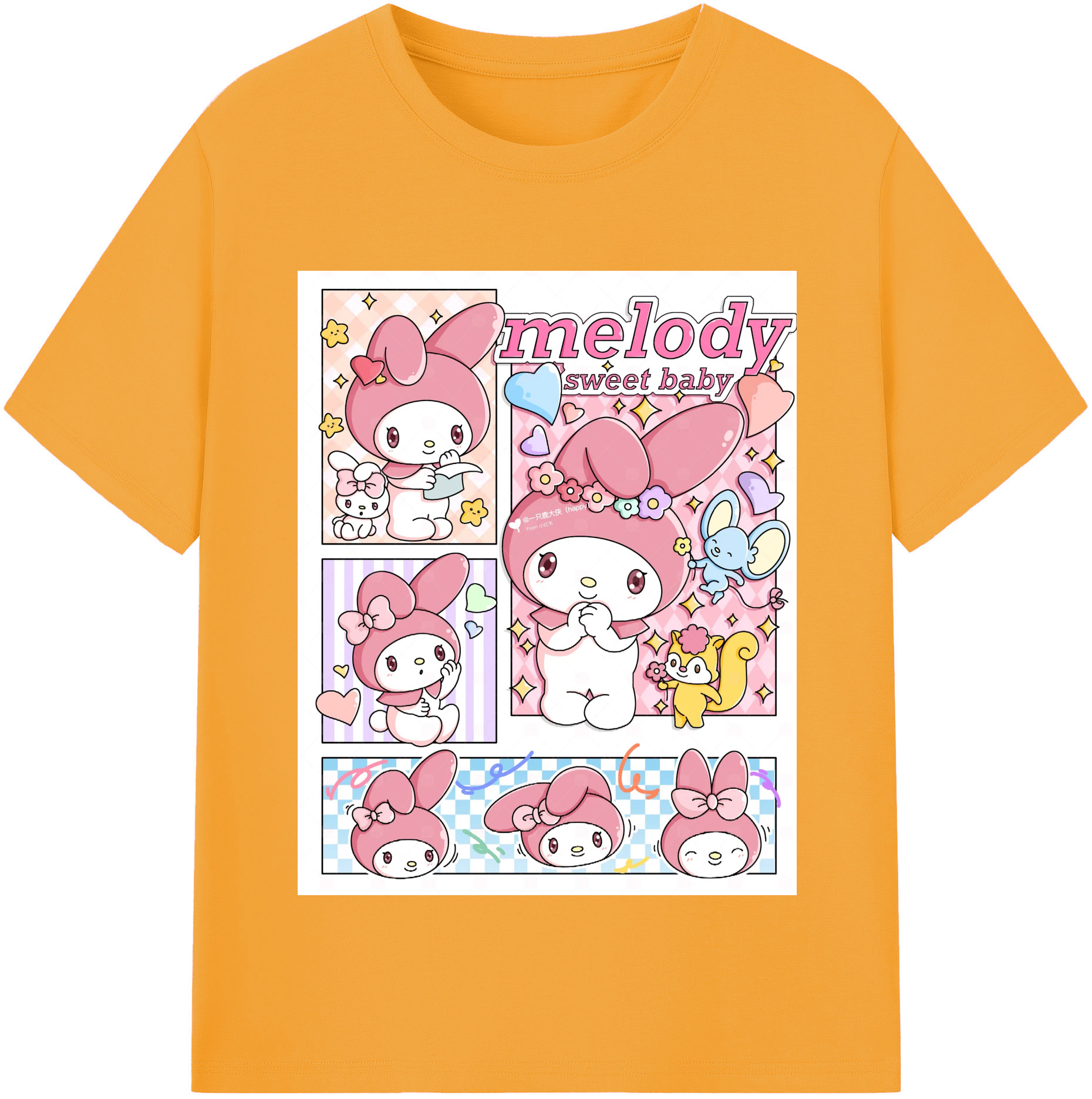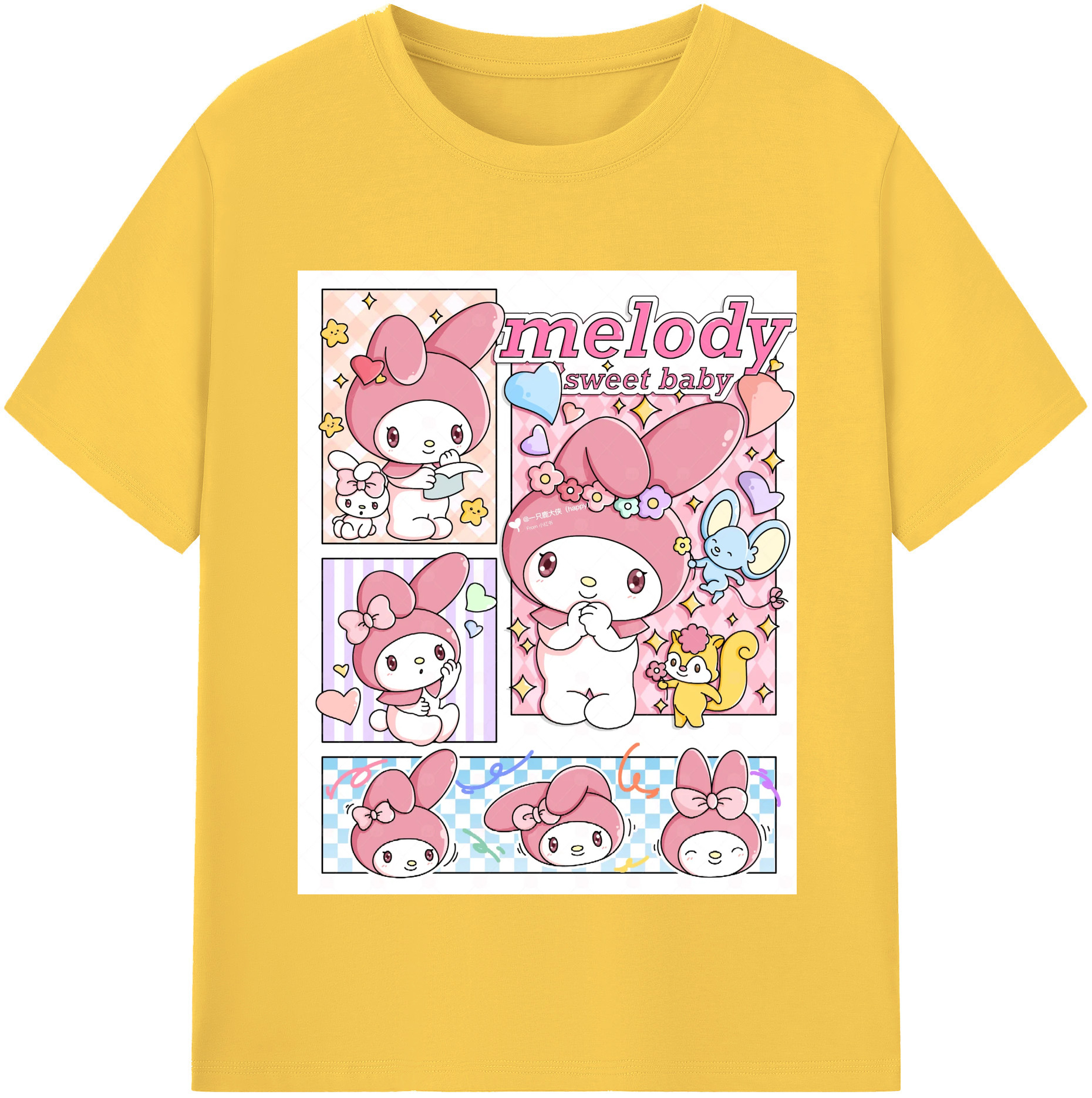 サンリオマイメロディ - 綿100% 半袖Tシャツ ・ フロントプリント ・ 快適 通気性 ・ 日常使い 散歩 スポーツ用