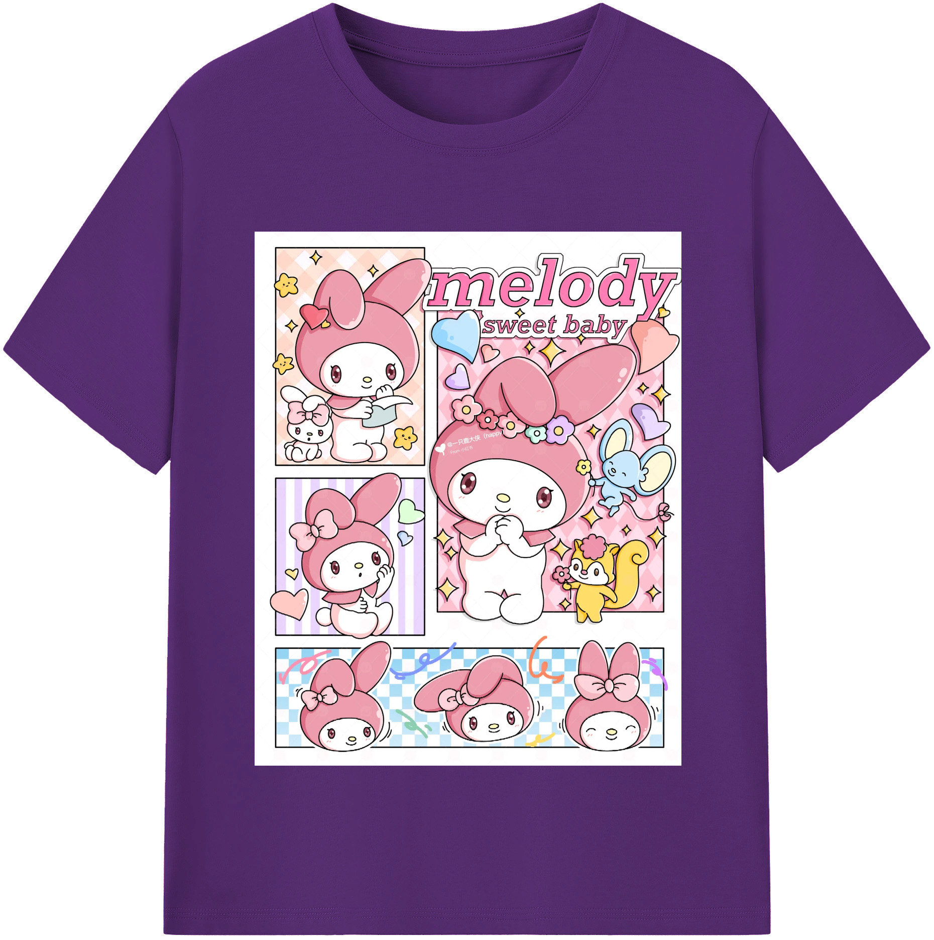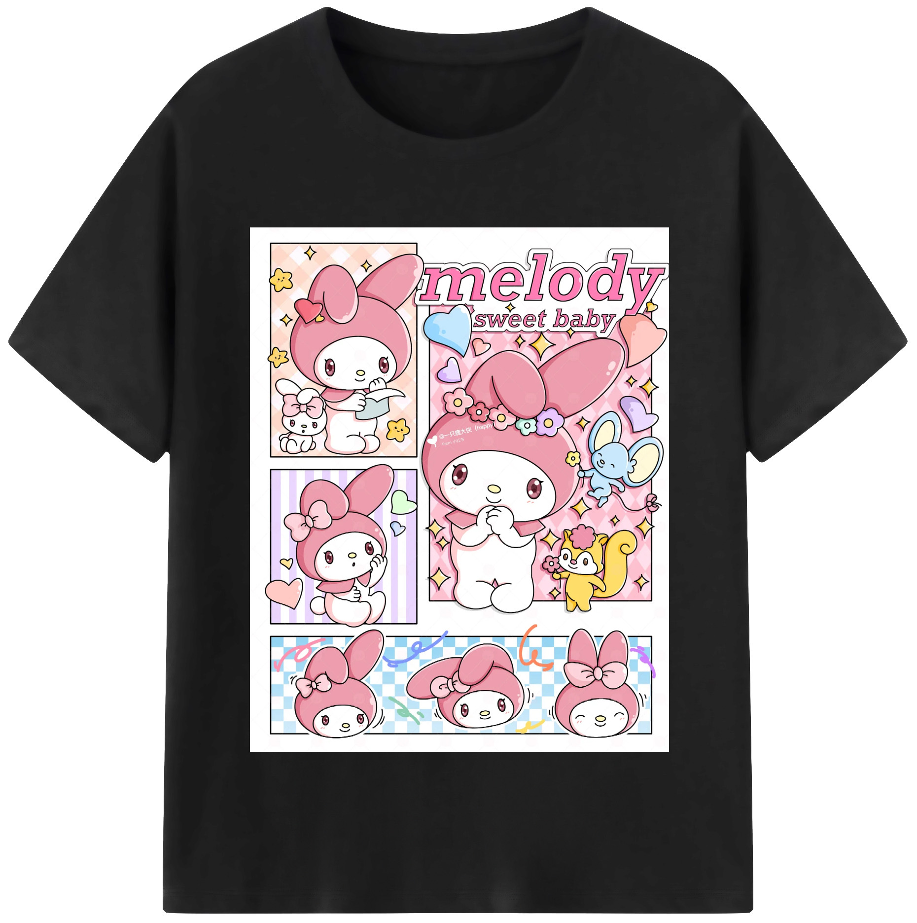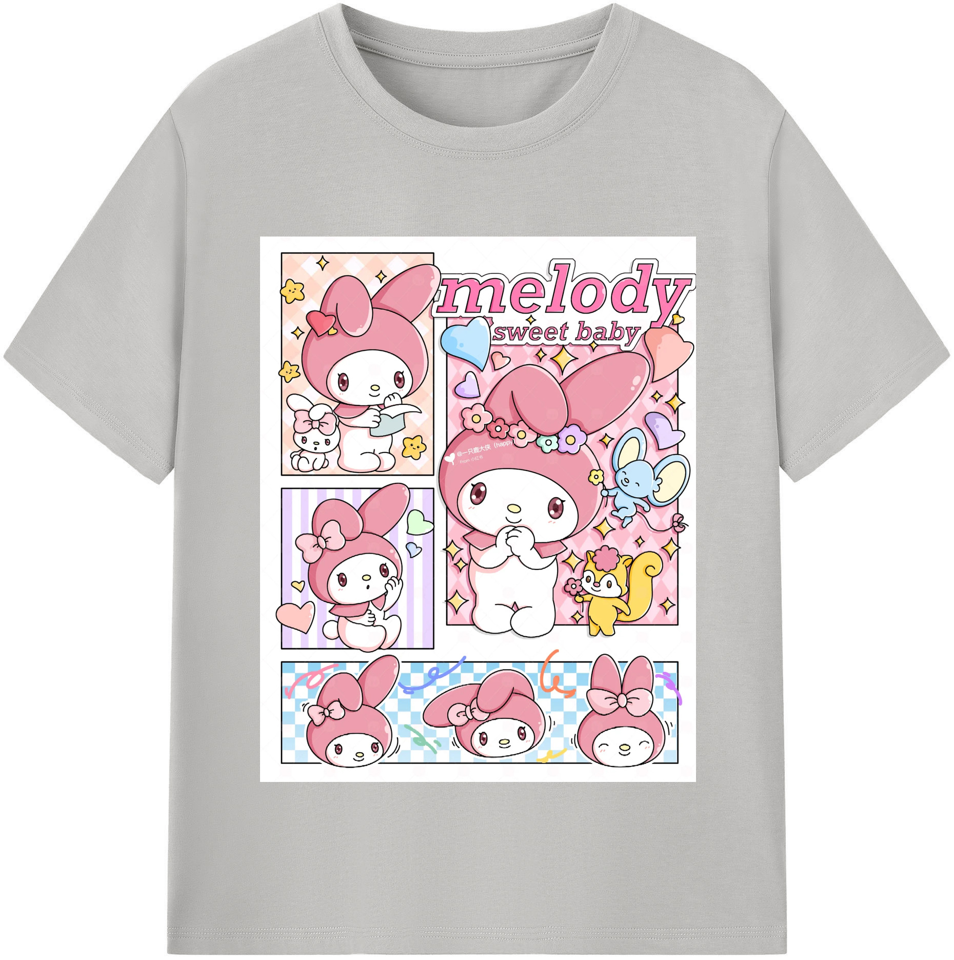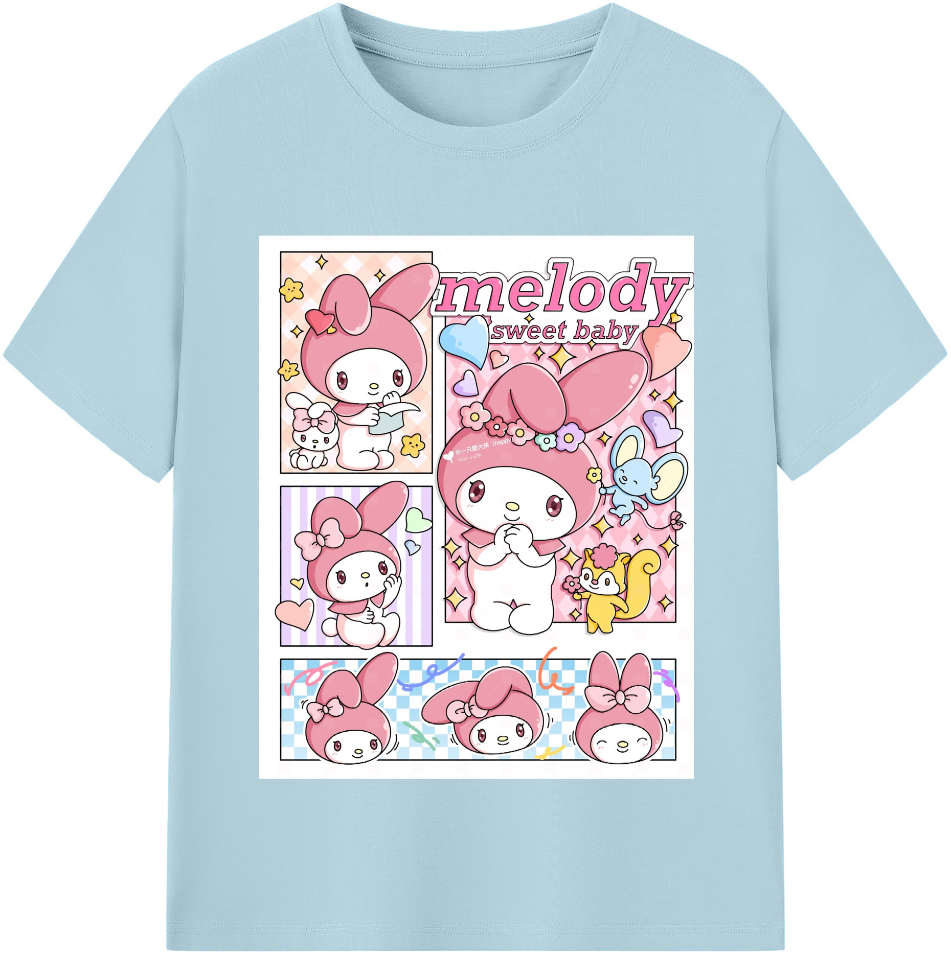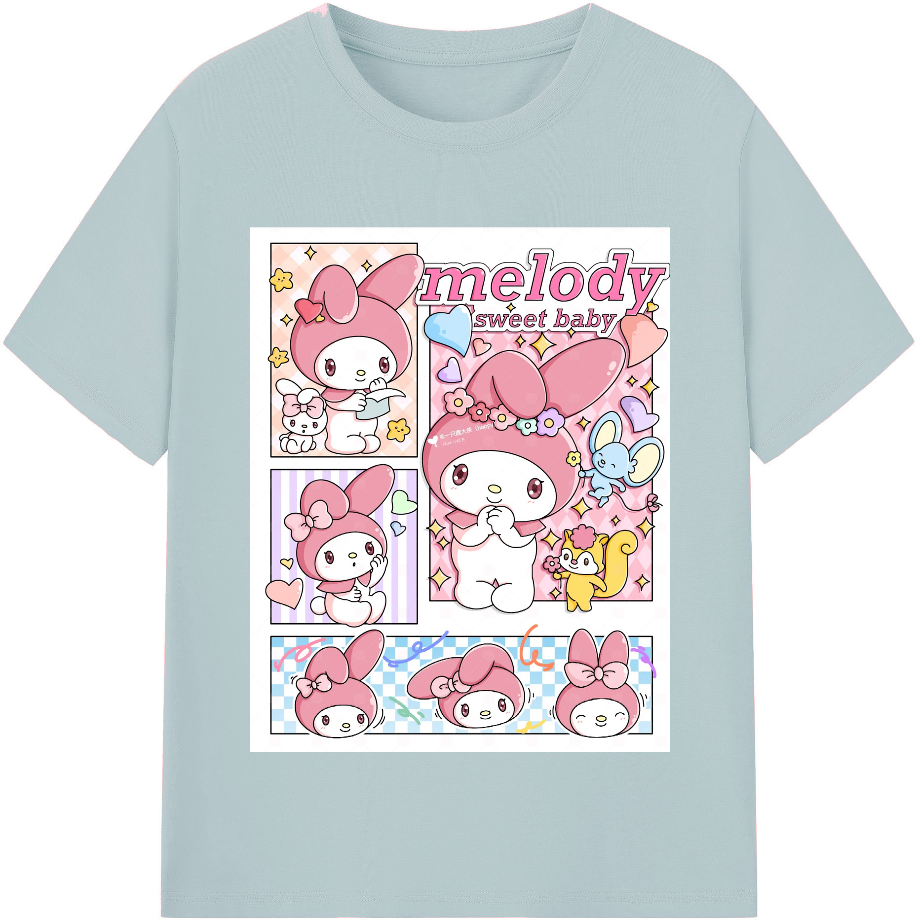 サンリオマイメロディ - 綿100% 半袖Tシャツ ・ フロントプリント ・ 快適 通気性 ・ 日常使い 散歩 スポーツ用