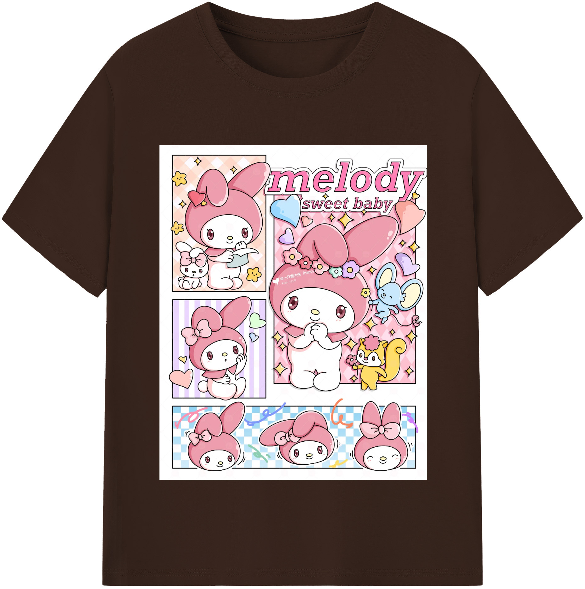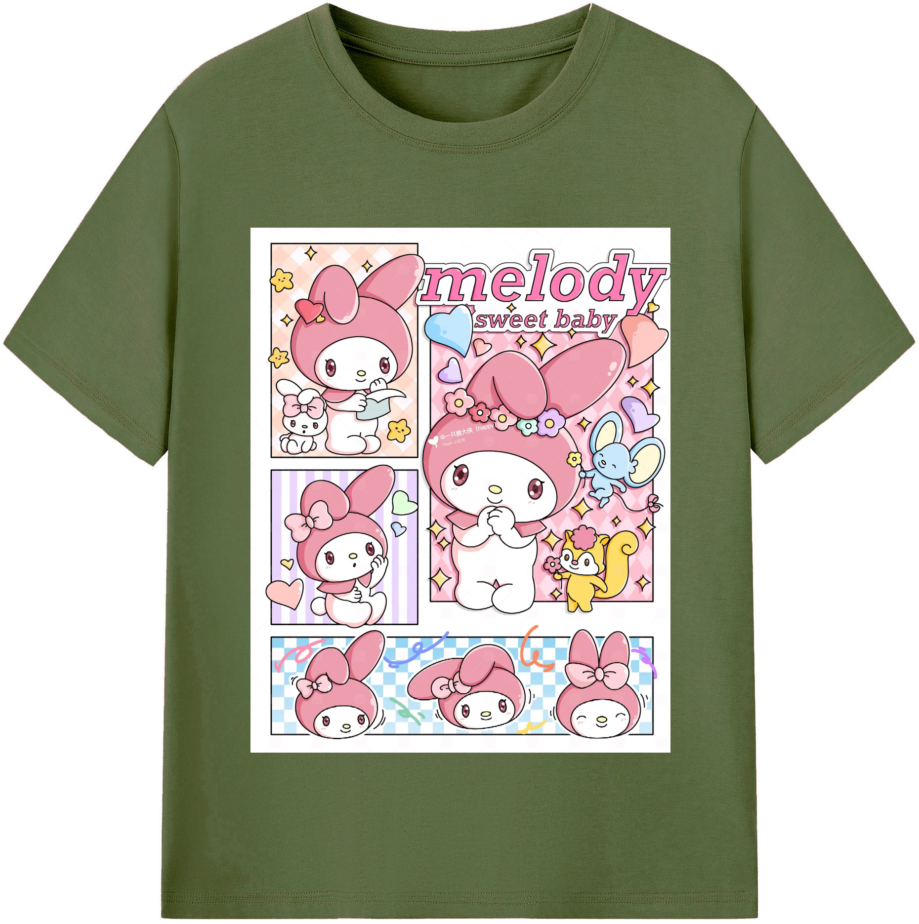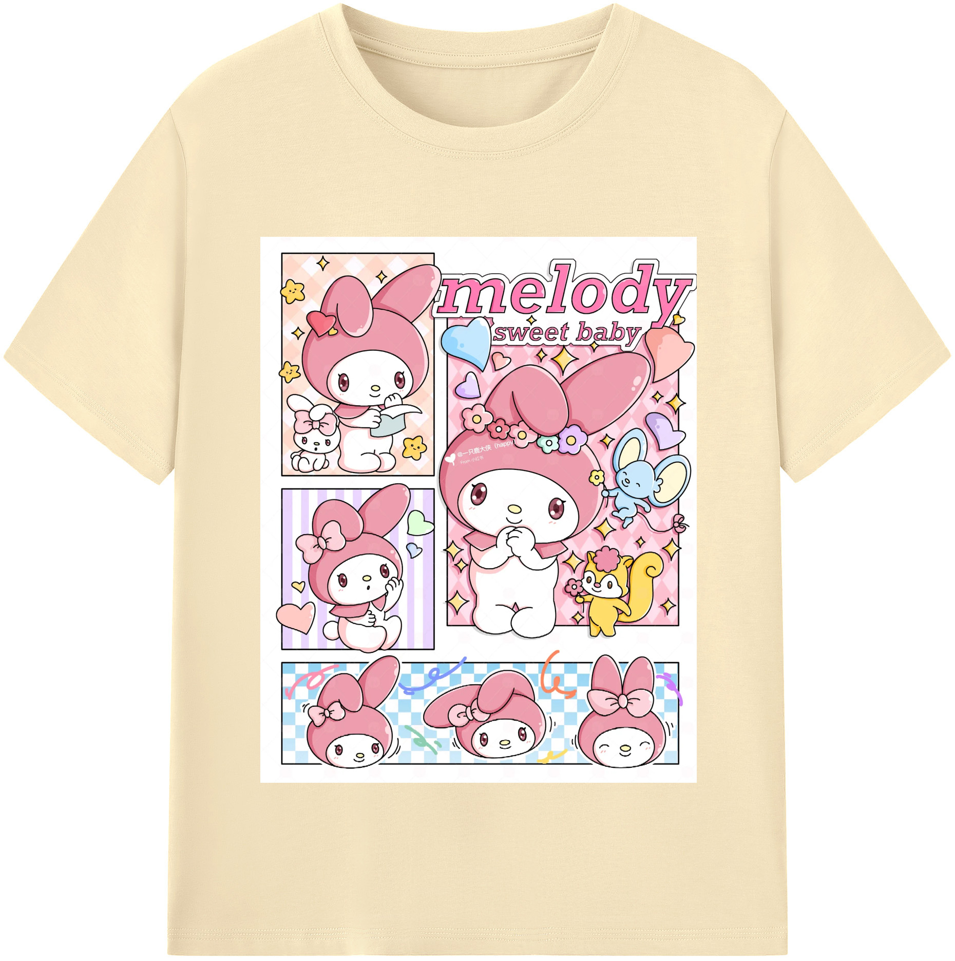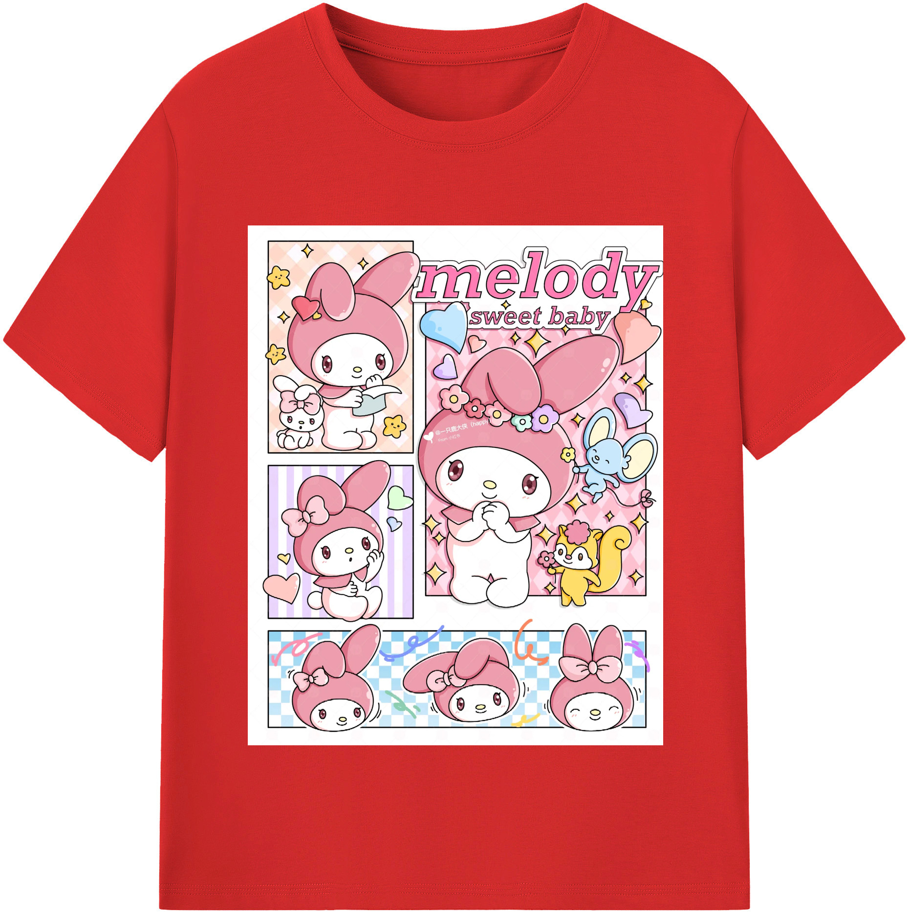 サンリオマイメロディ - 綿100% 半袖Tシャツ ・ フロントプリント ・ 快適 通気性 ・ 日常使い 散歩 スポーツ用