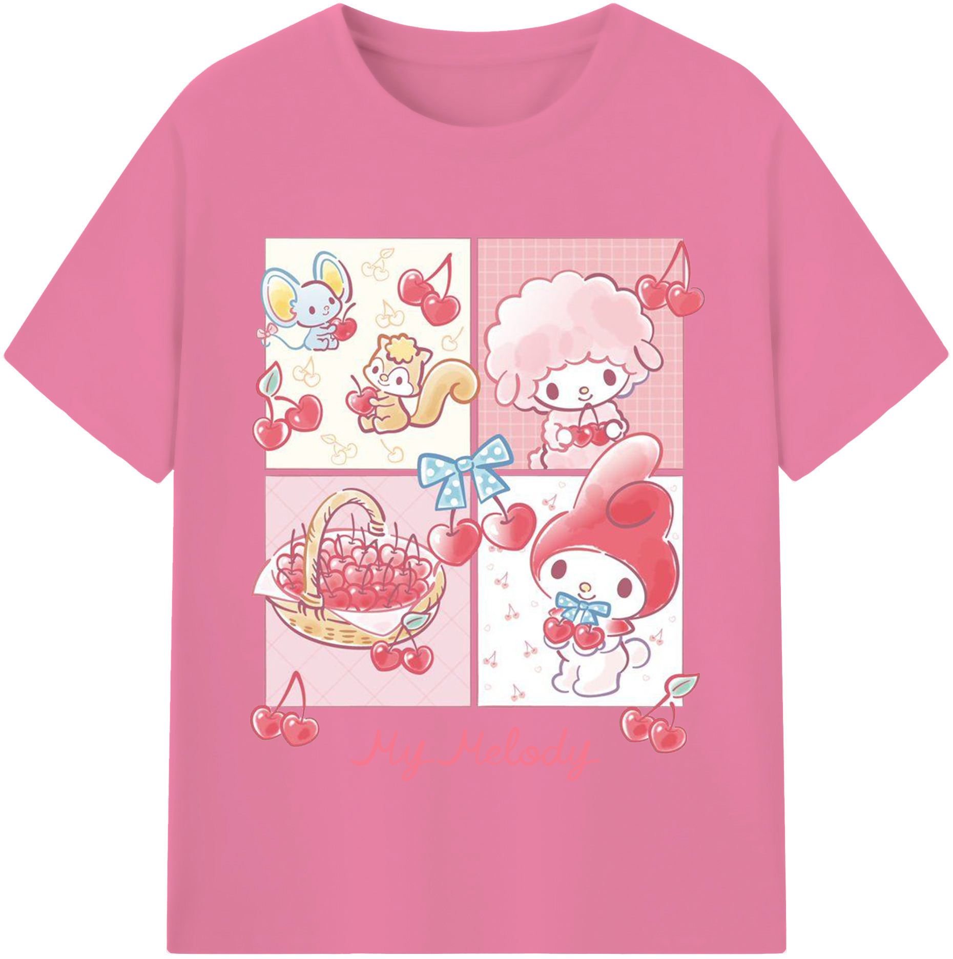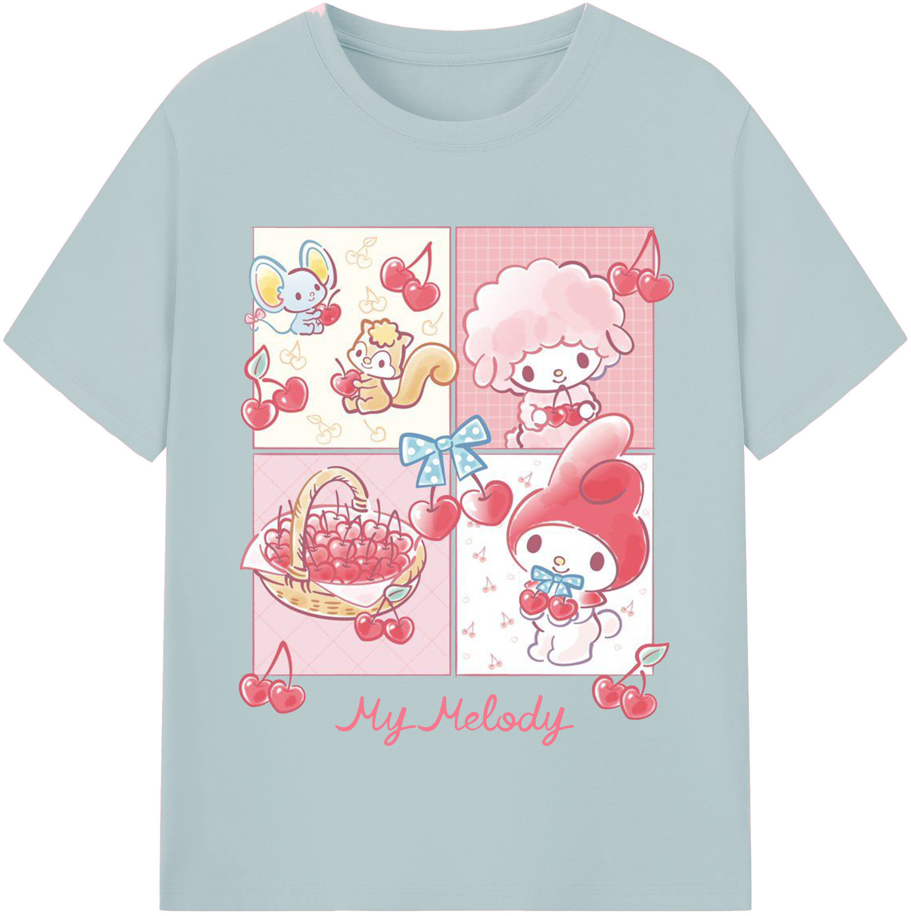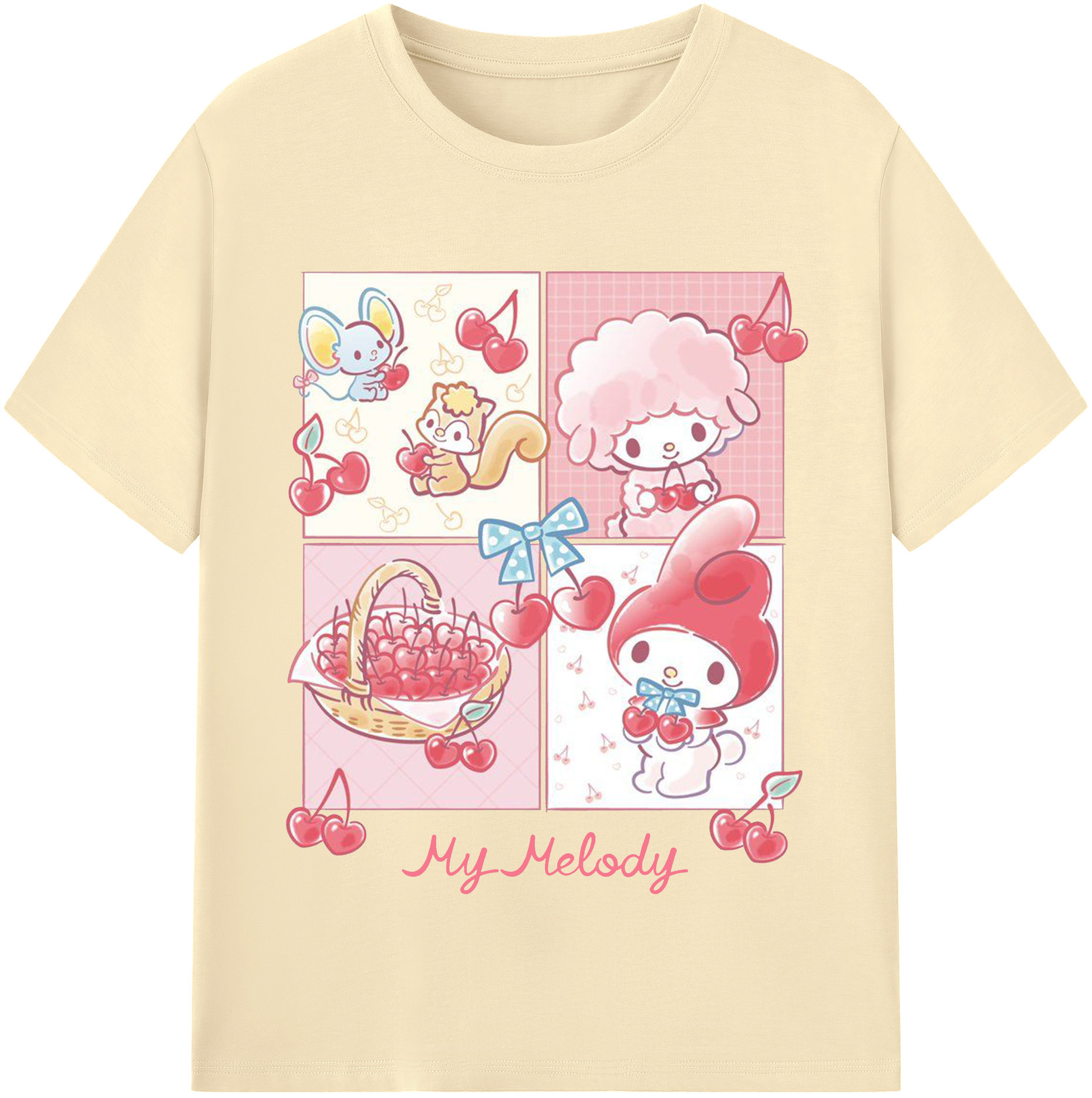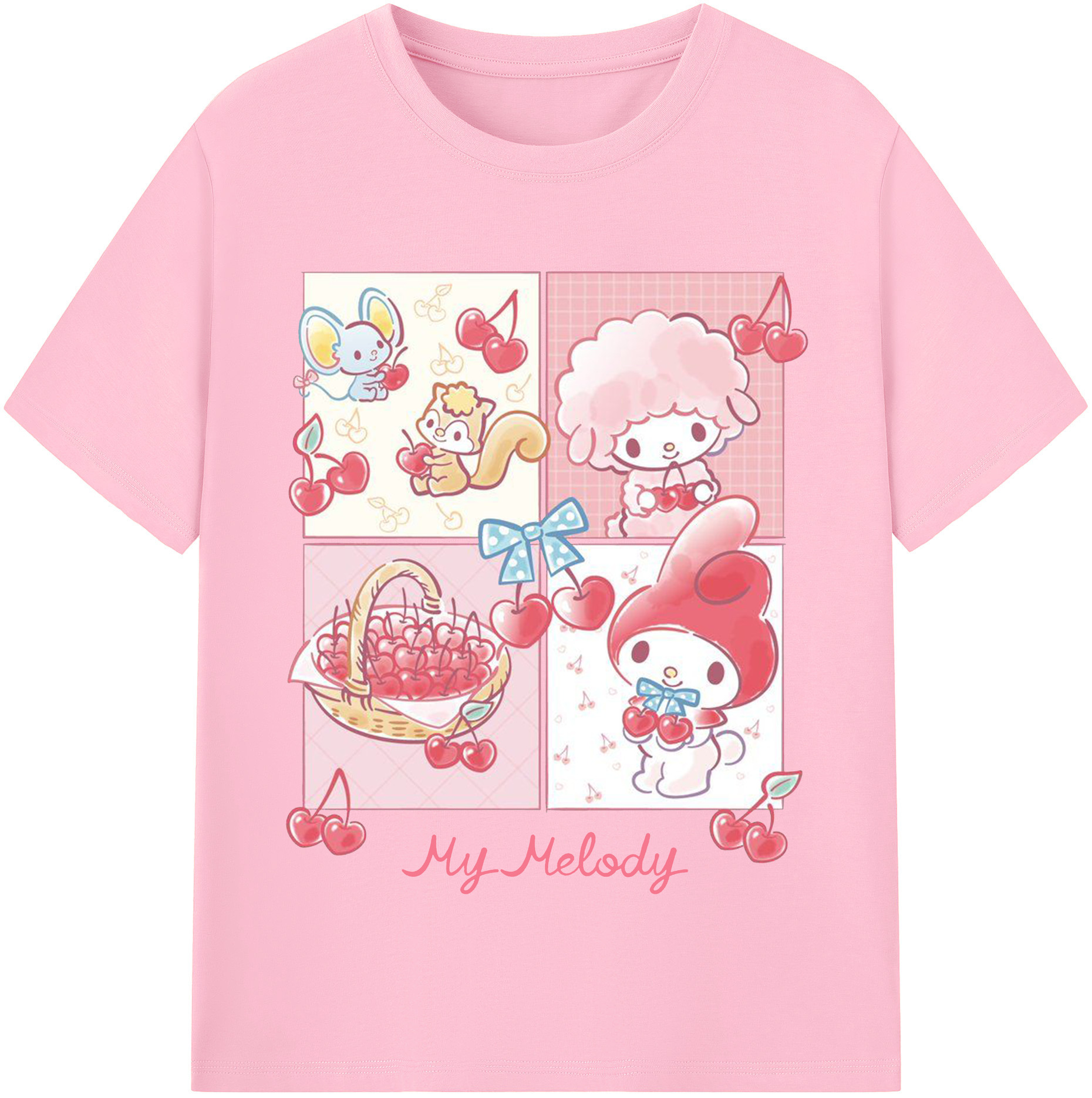 サンリオマイメロディ - 綿100% 半袖Tシャツ ・ フロントプリント ・ 快適 通気性 ・ 日常使い 散歩 スポーツ用