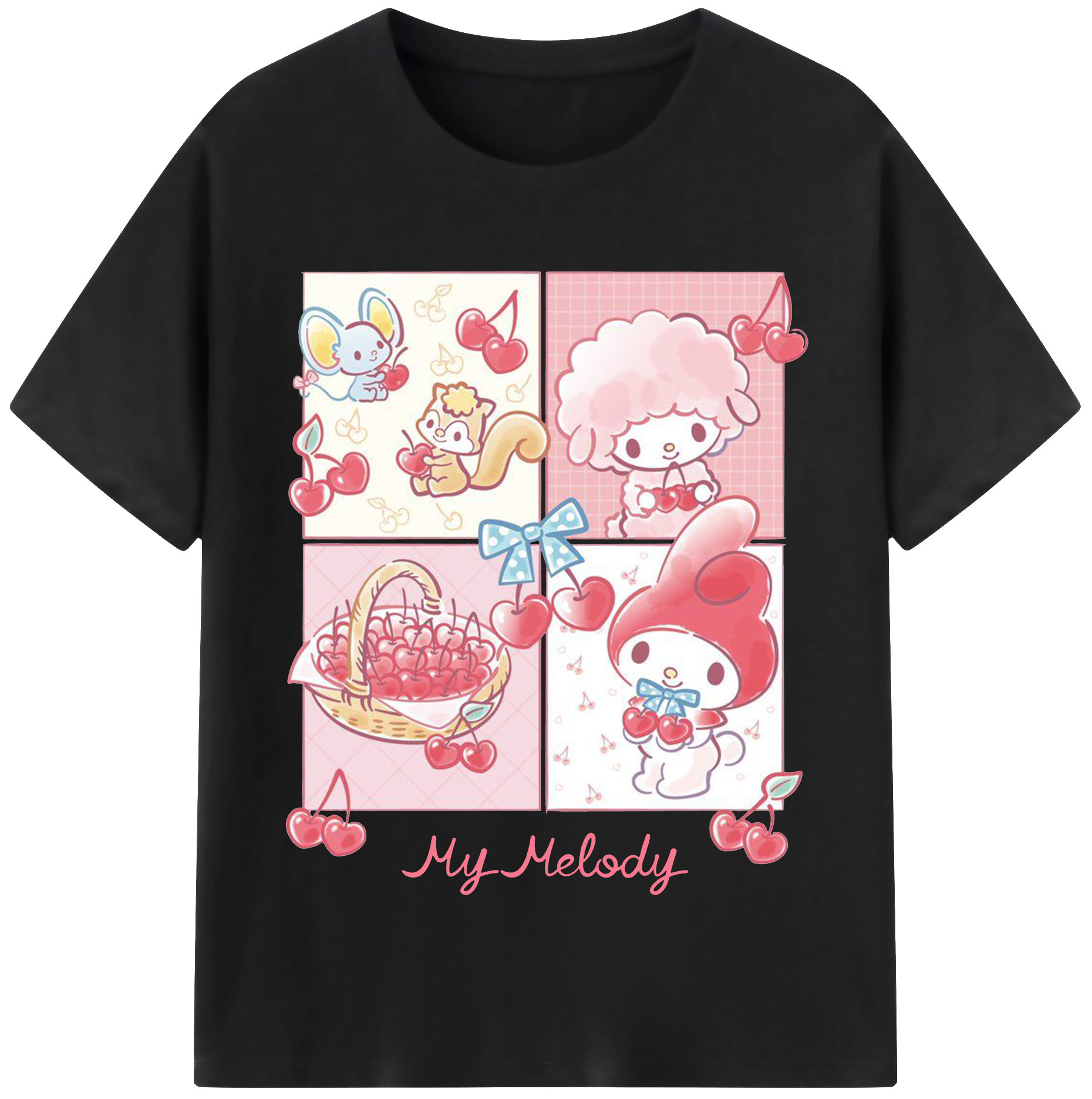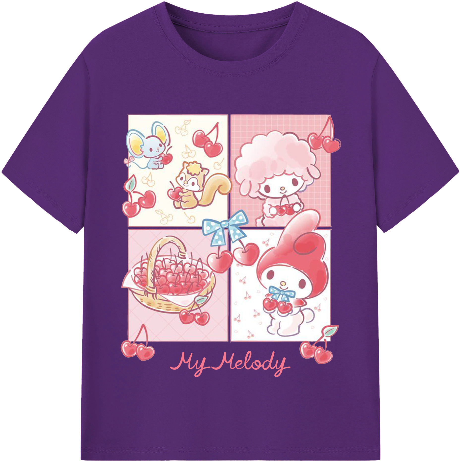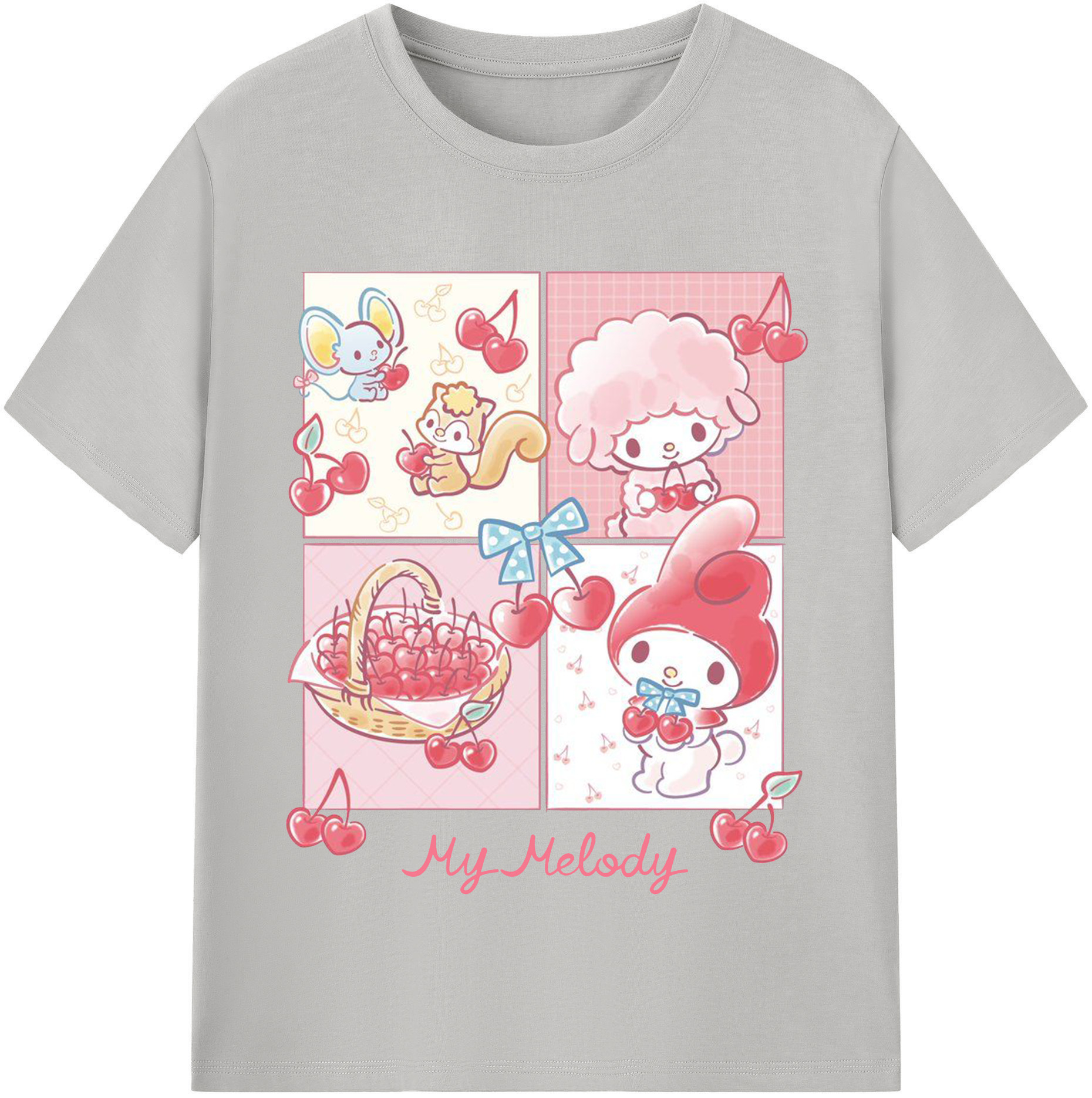 サンリオマイメロディ - 綿100% 半袖Tシャツ ・ フロントプリント ・ 快適 通気性 ・ 日常使い 散歩 スポーツ用