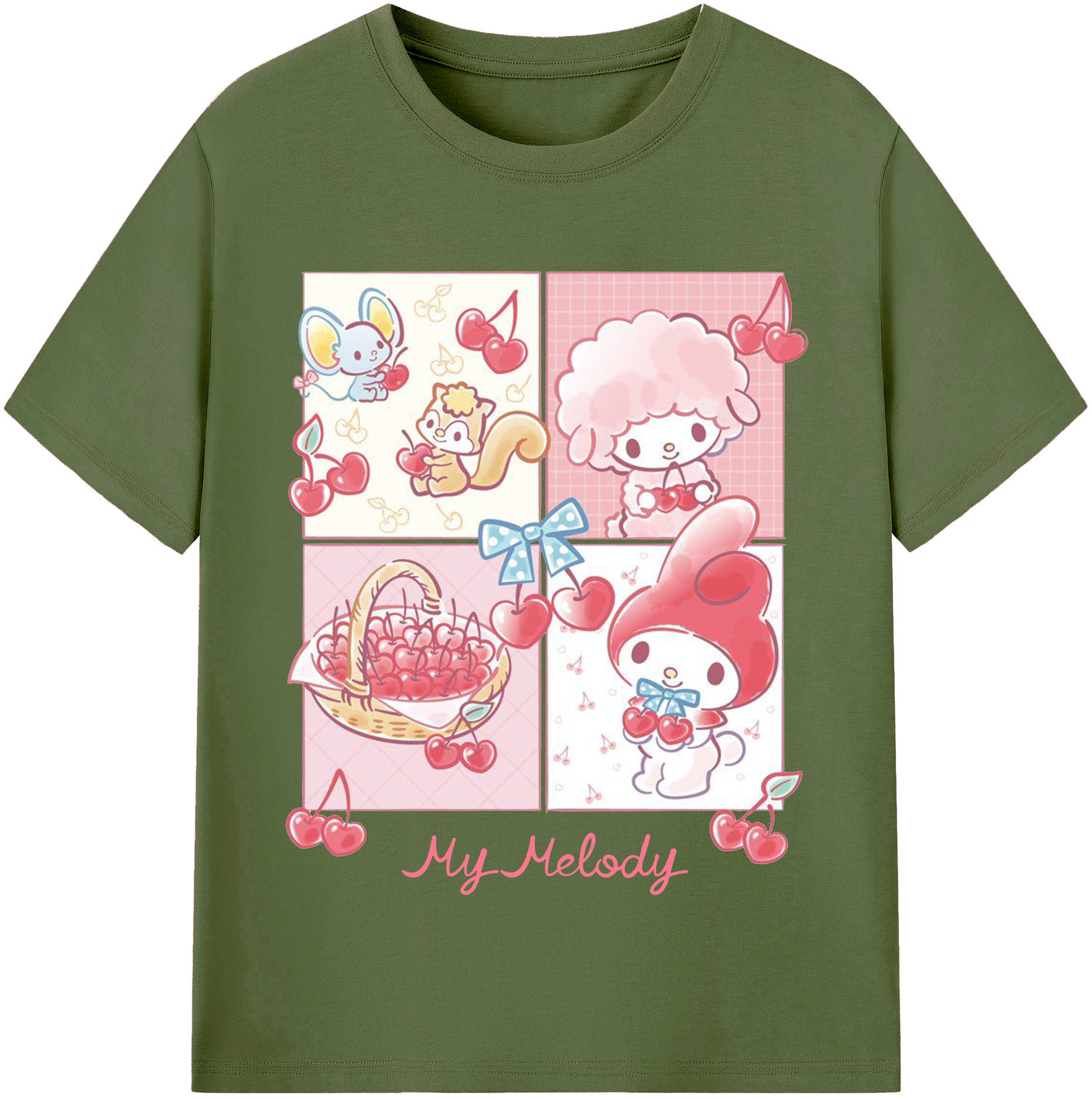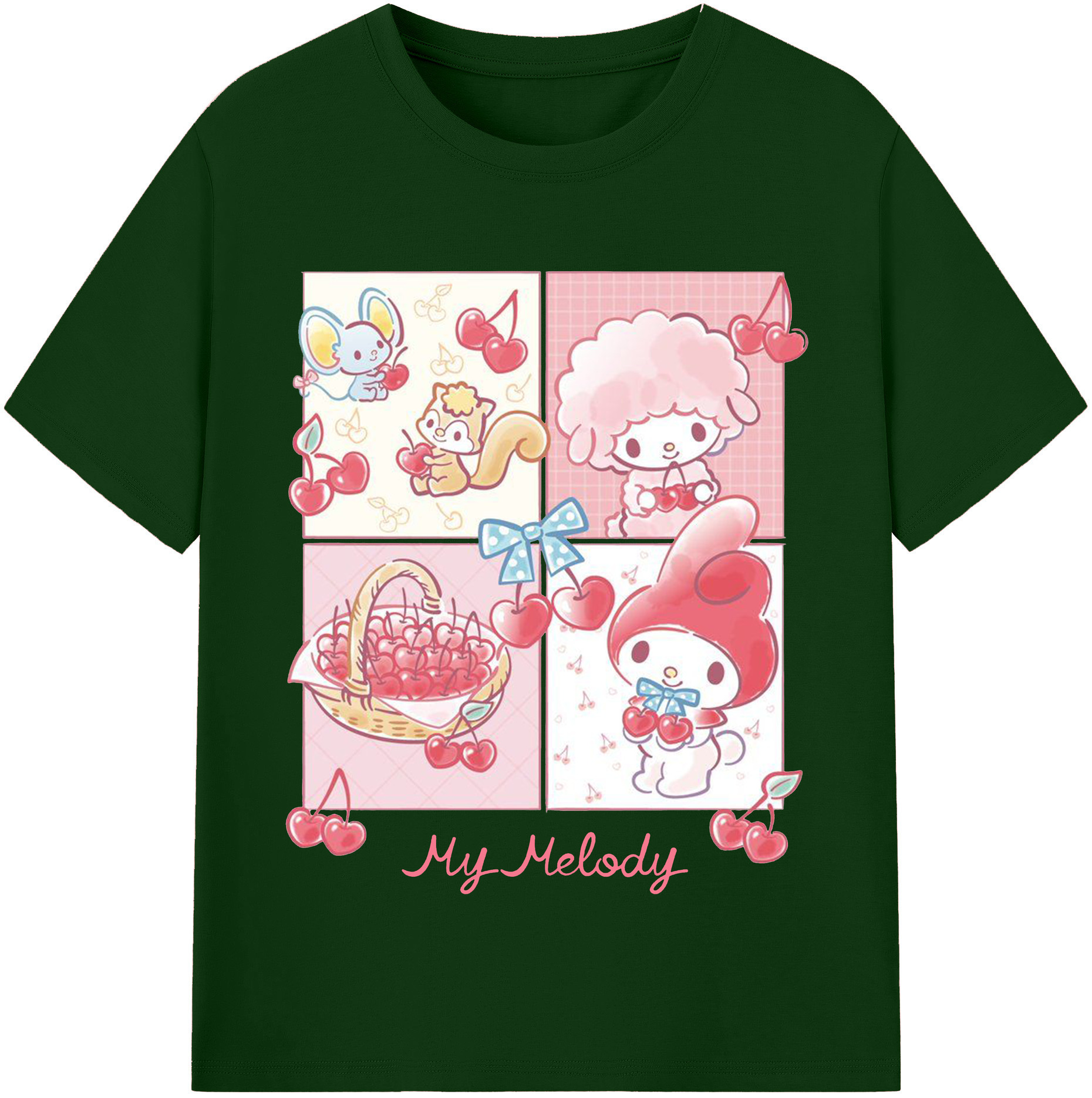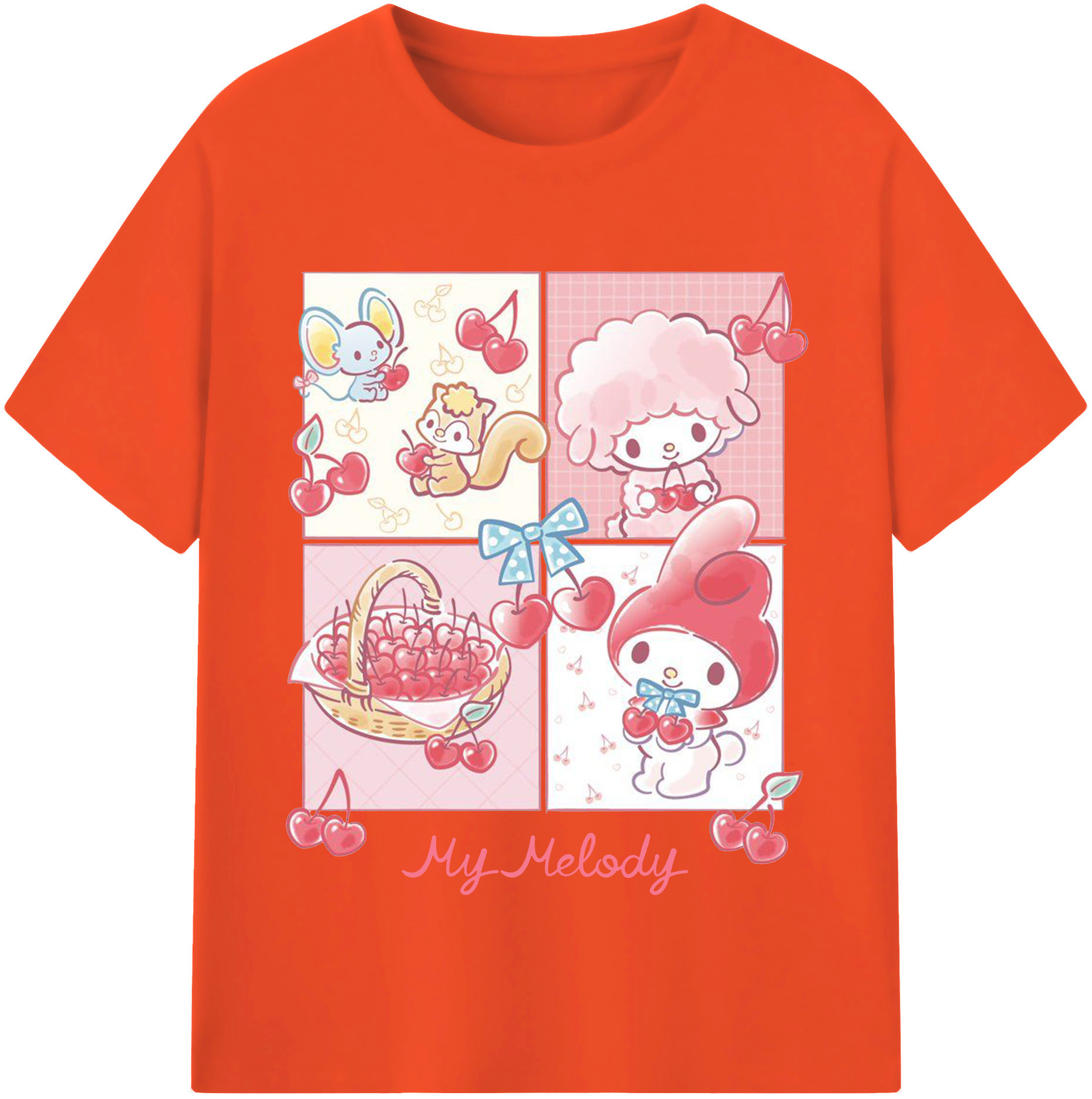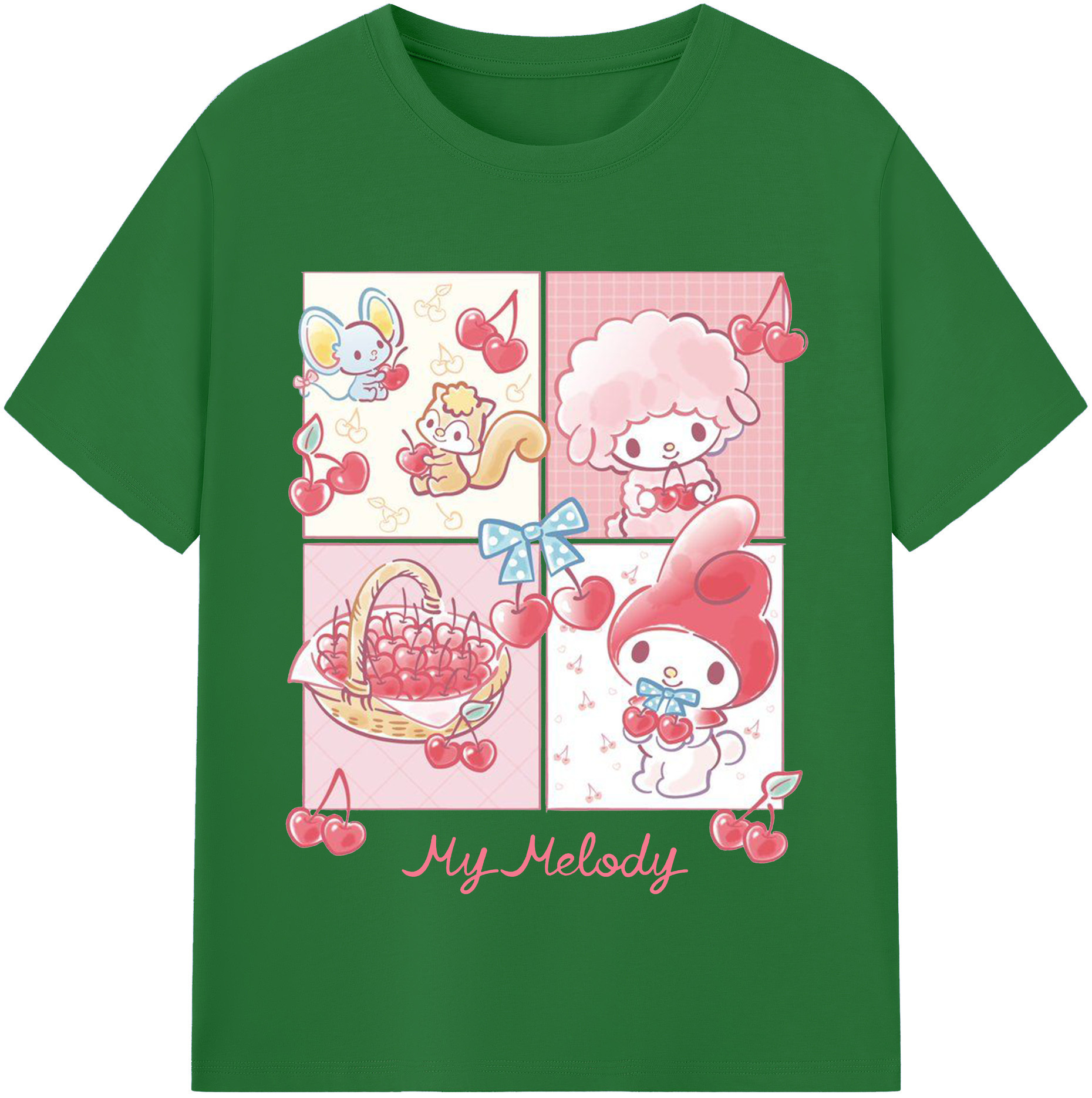 サンリオマイメロディ - 綿100% 半袖Tシャツ ・ フロントプリント ・ 快適 通気性 ・ 日常使い 散歩 スポーツ用