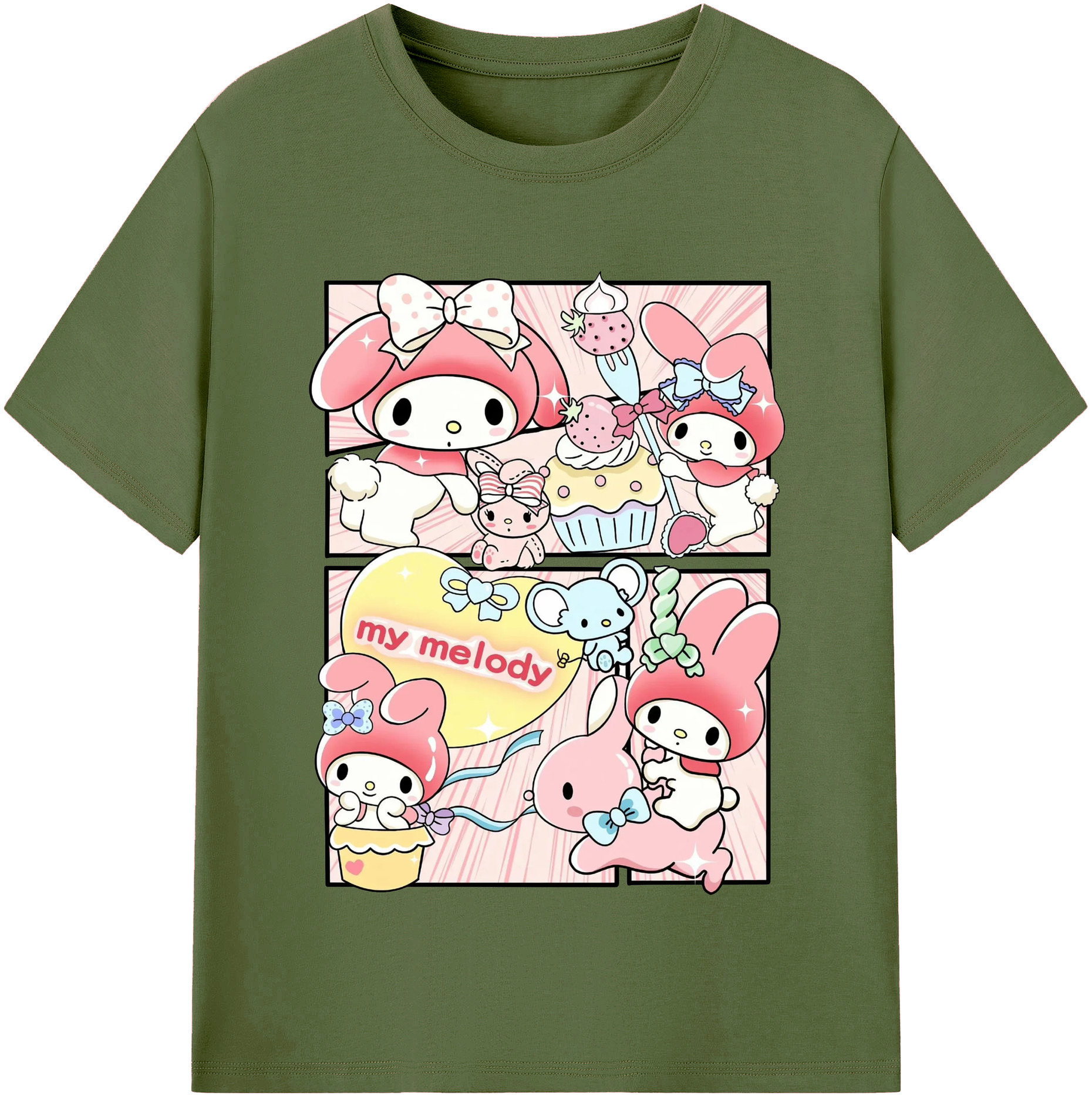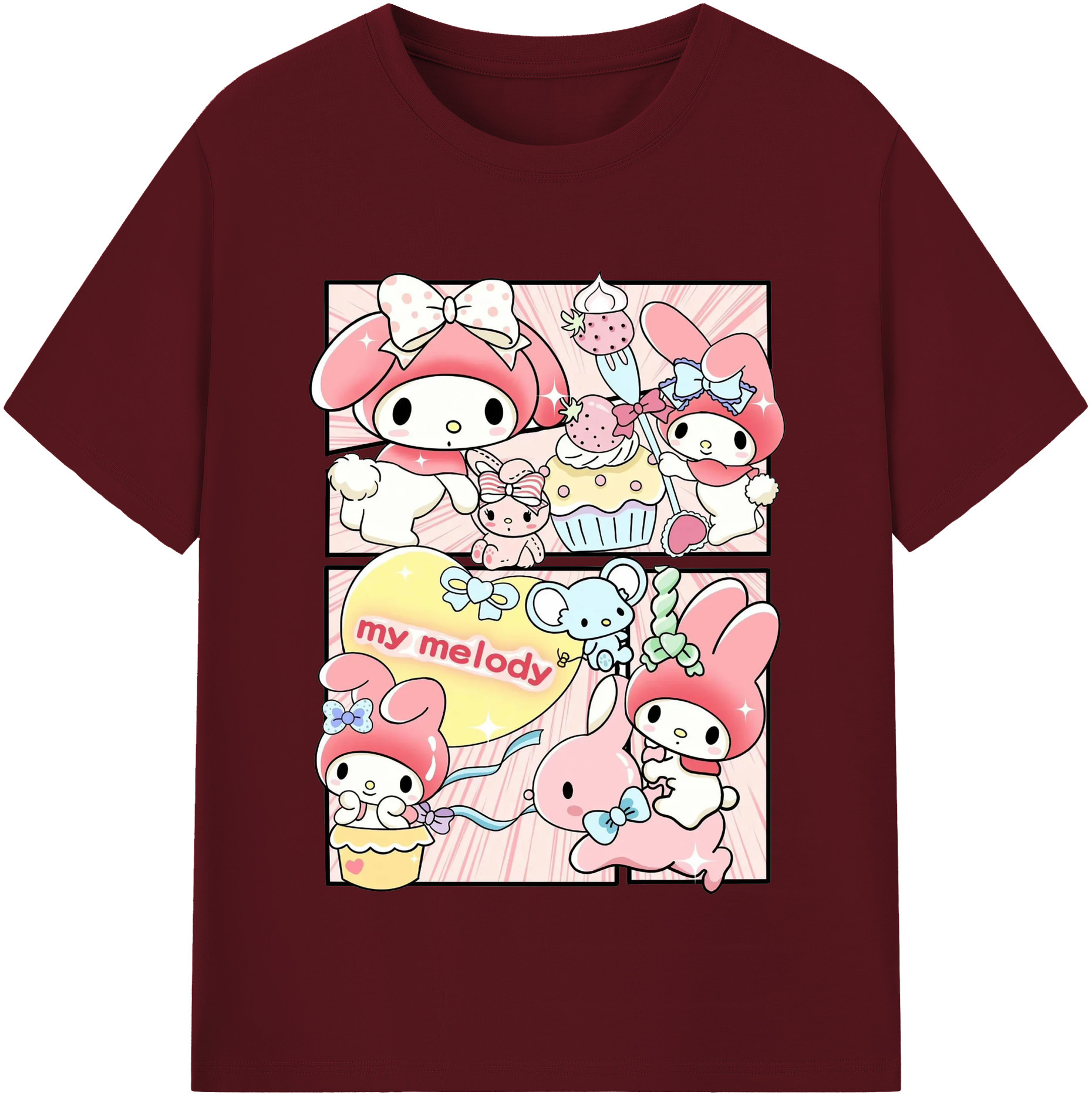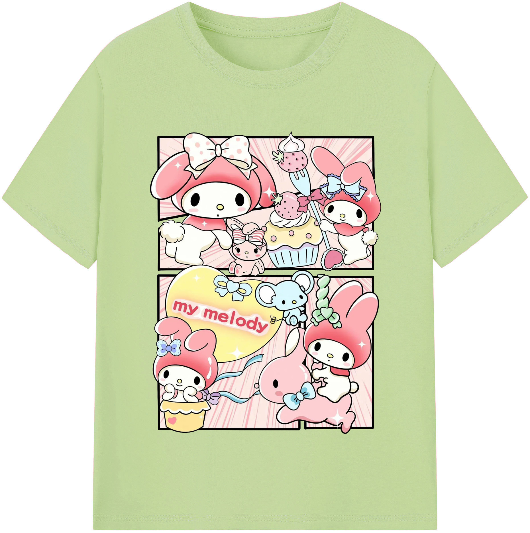おもしろいマイメロディ - 綿100% 半袖Tシャツ ・ フロントプリント ・ 快適 通気性 ・ 日常使い 散歩 スポーツ用
