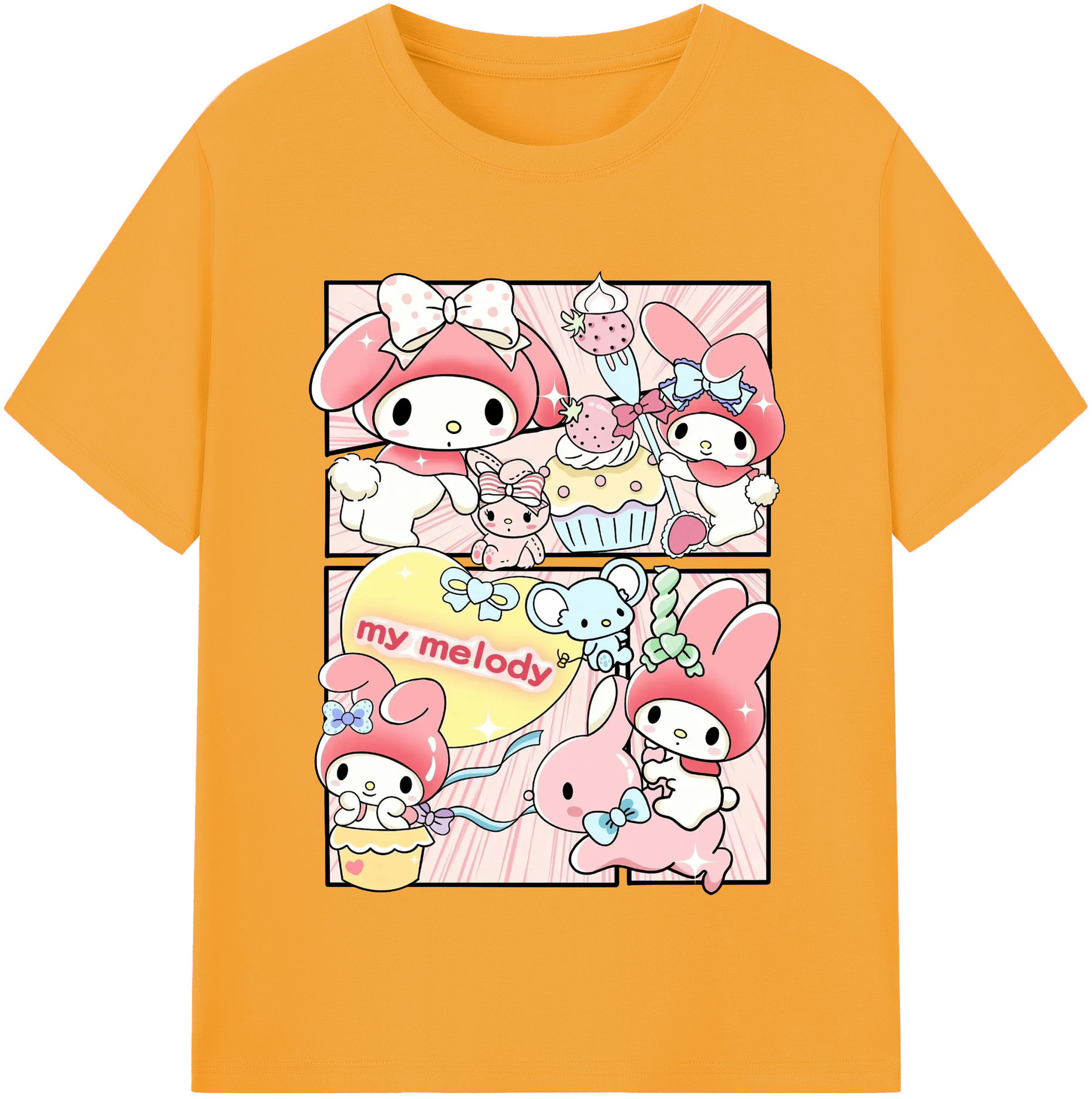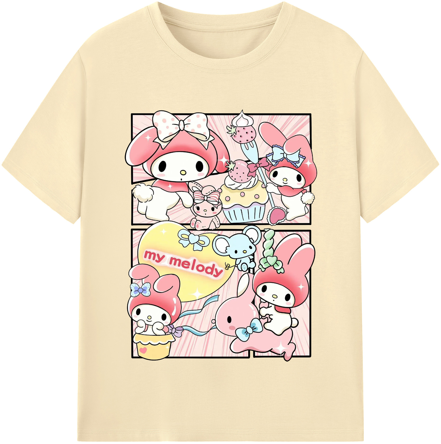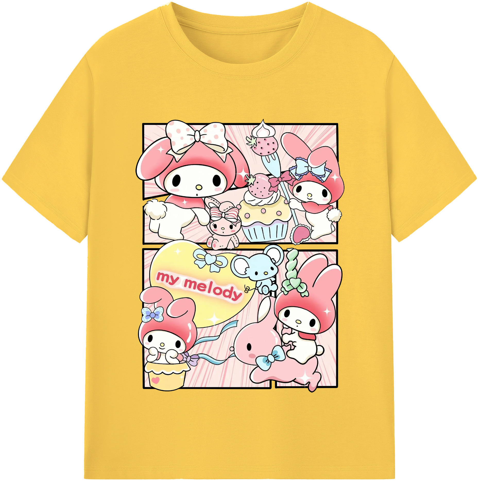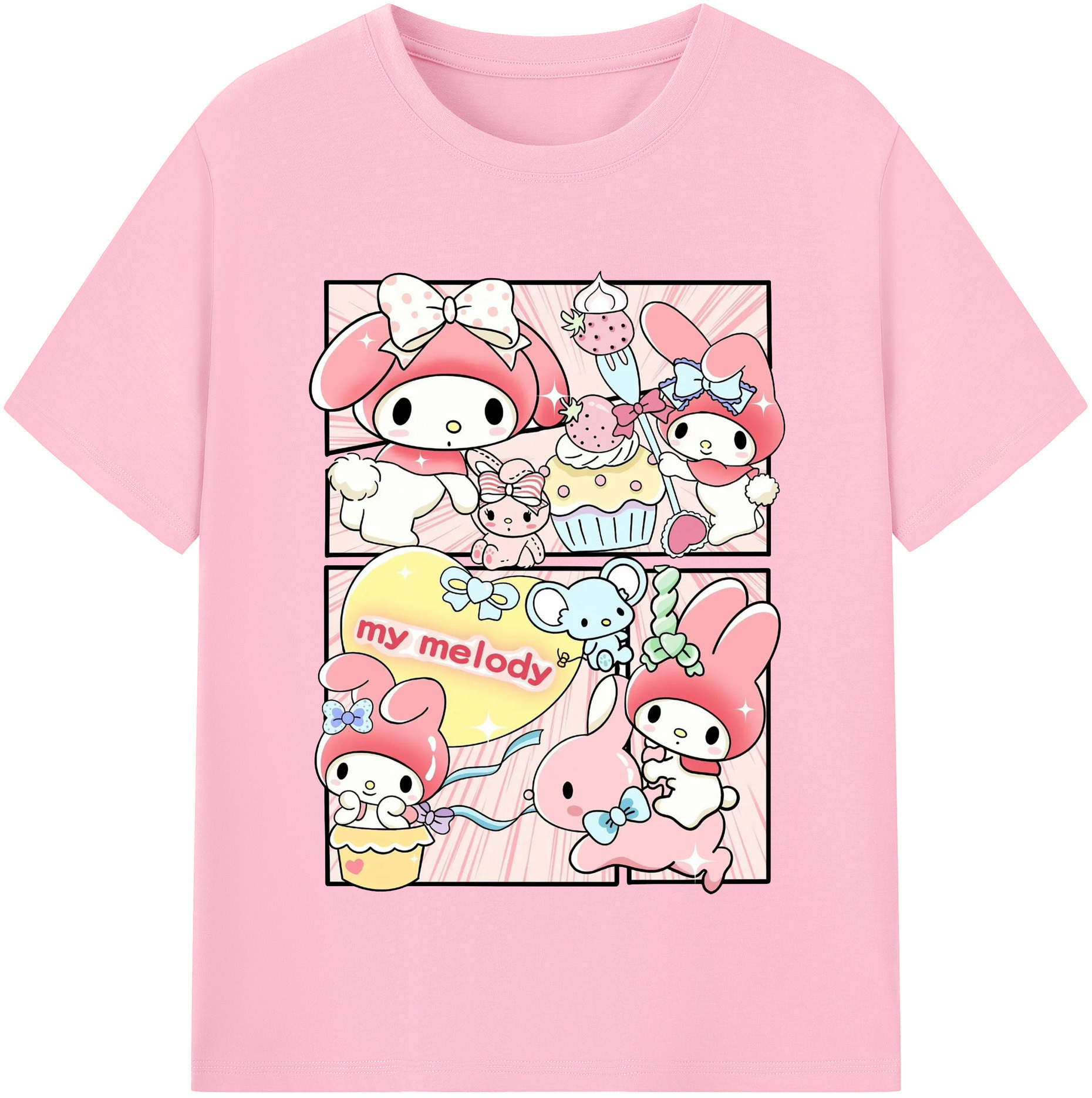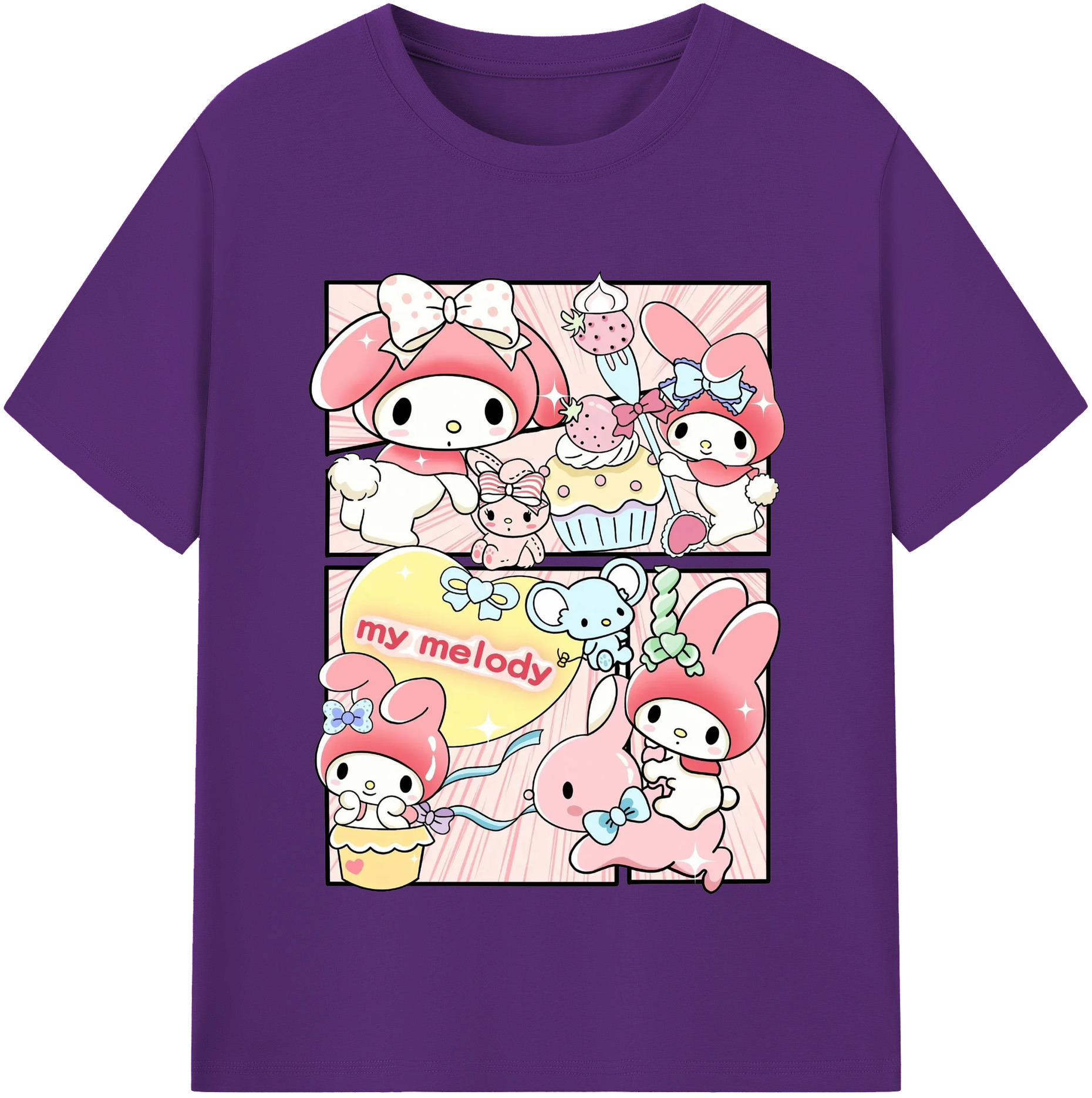 サンリオマイメロディ - 綿100% 半袖Tシャツ ・ フロントプリント ・ 快適 通気性 ・ 日常使い 散歩 スポーツ用