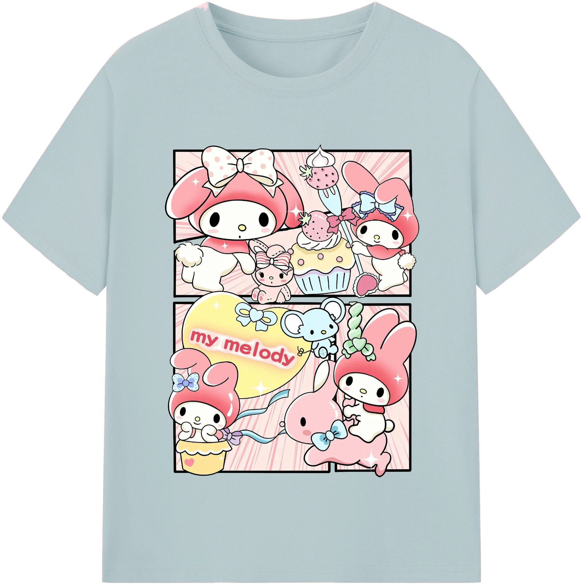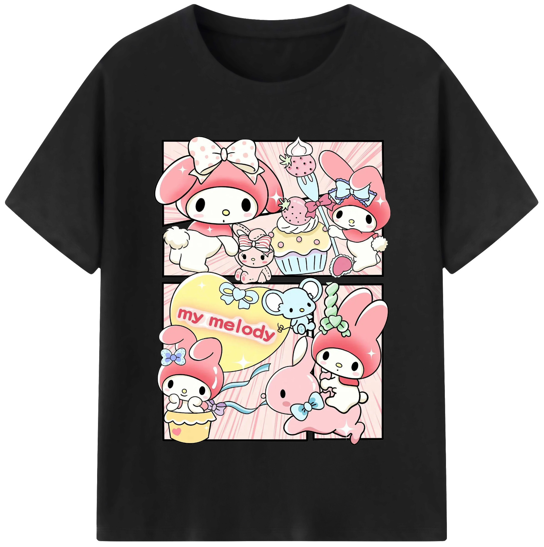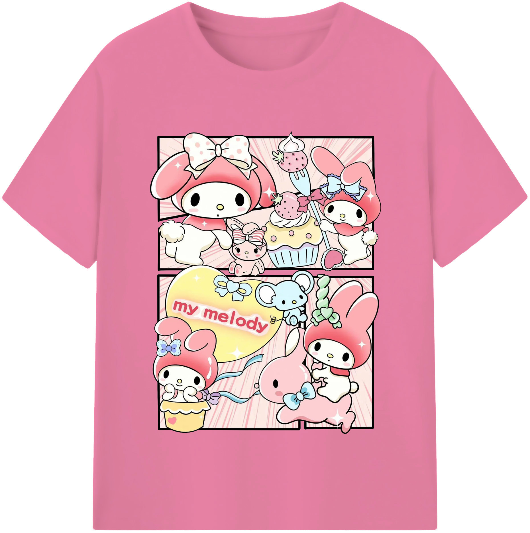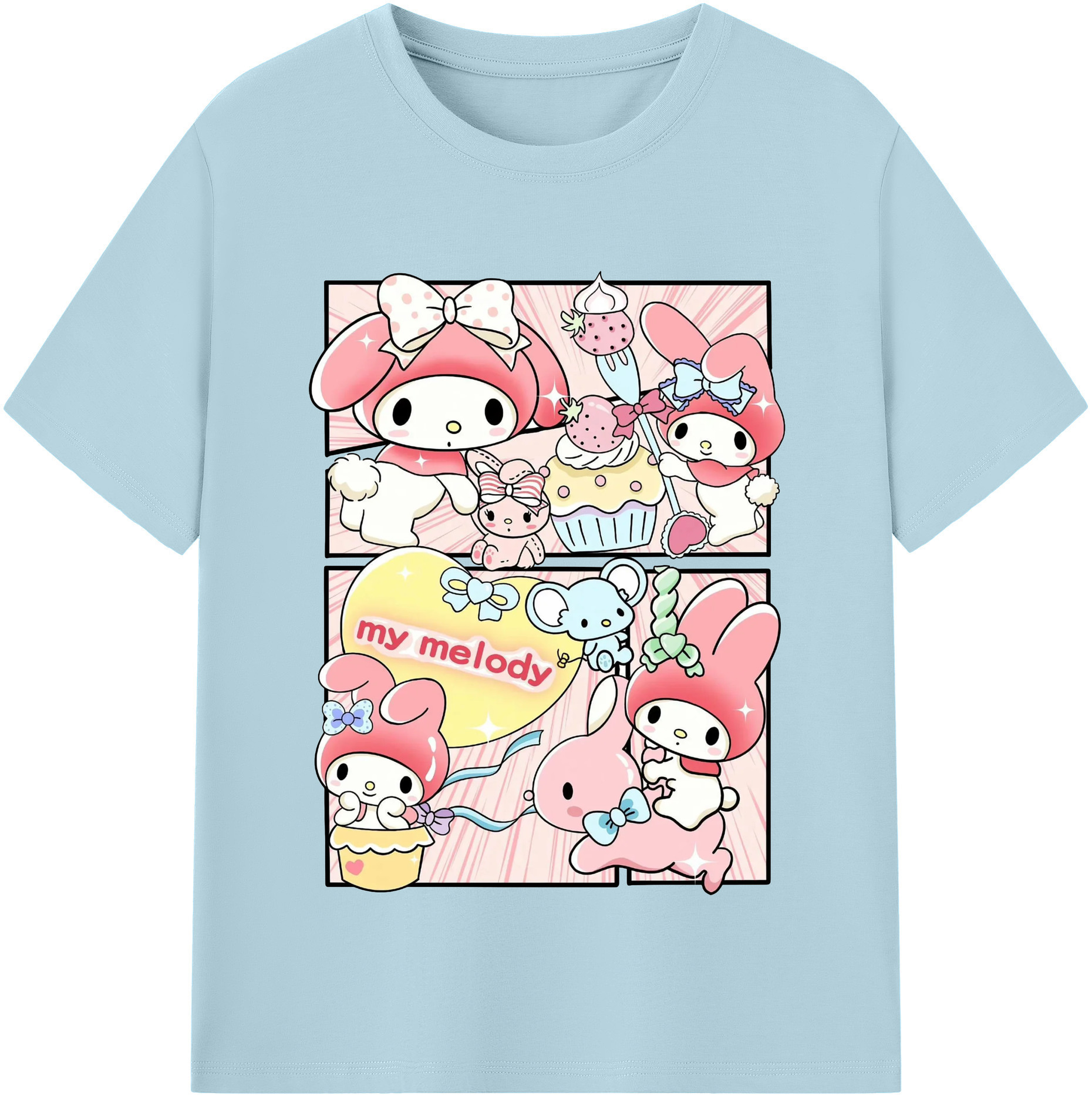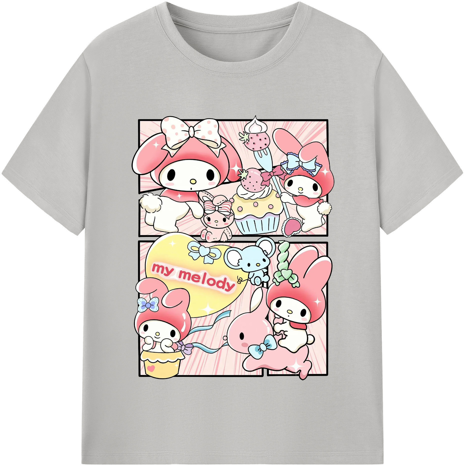 サンリオマイメロディ - 綿100% 半袖Tシャツ ・ フロントプリント ・ 快適 通気性 ・ 日常使い 散歩 スポーツ用