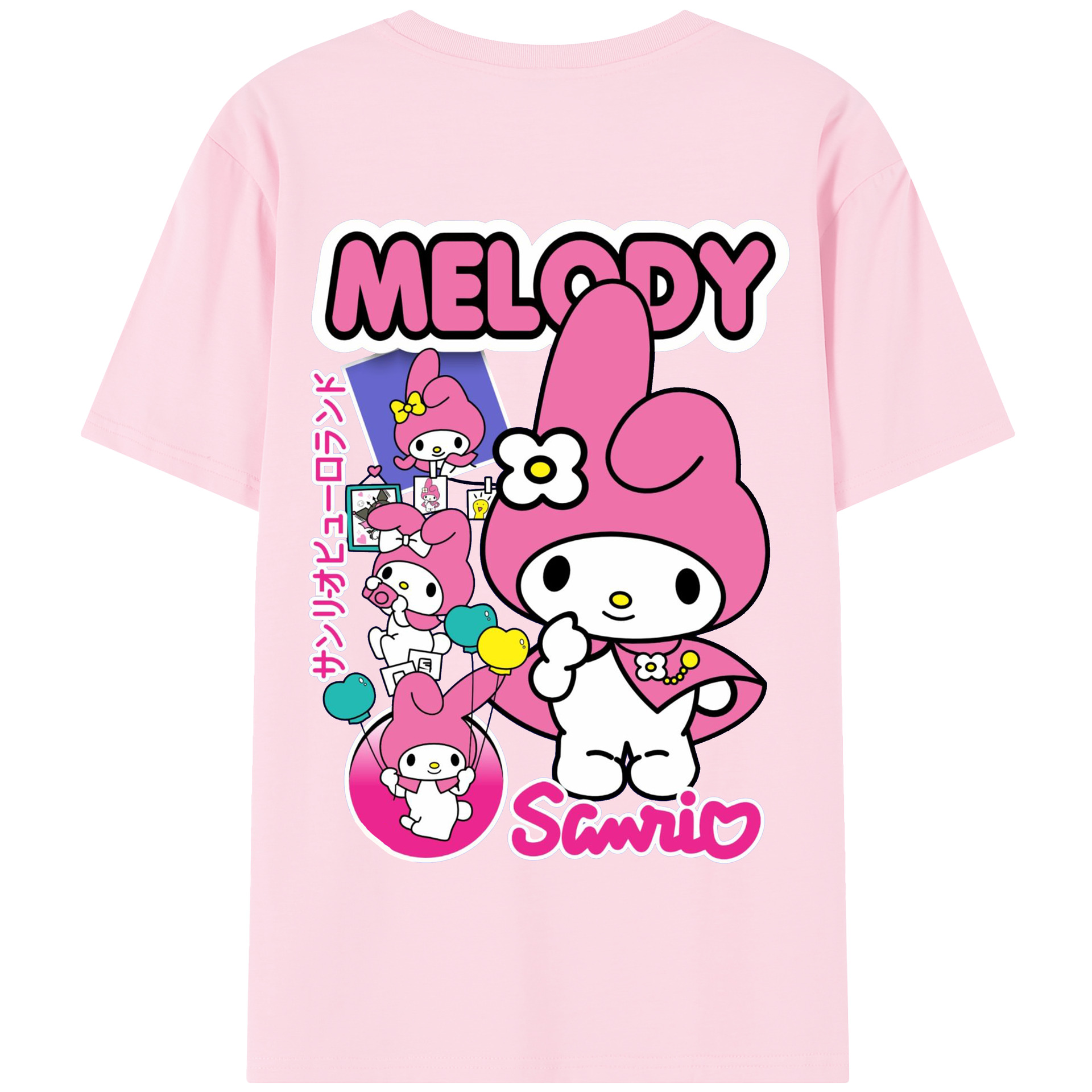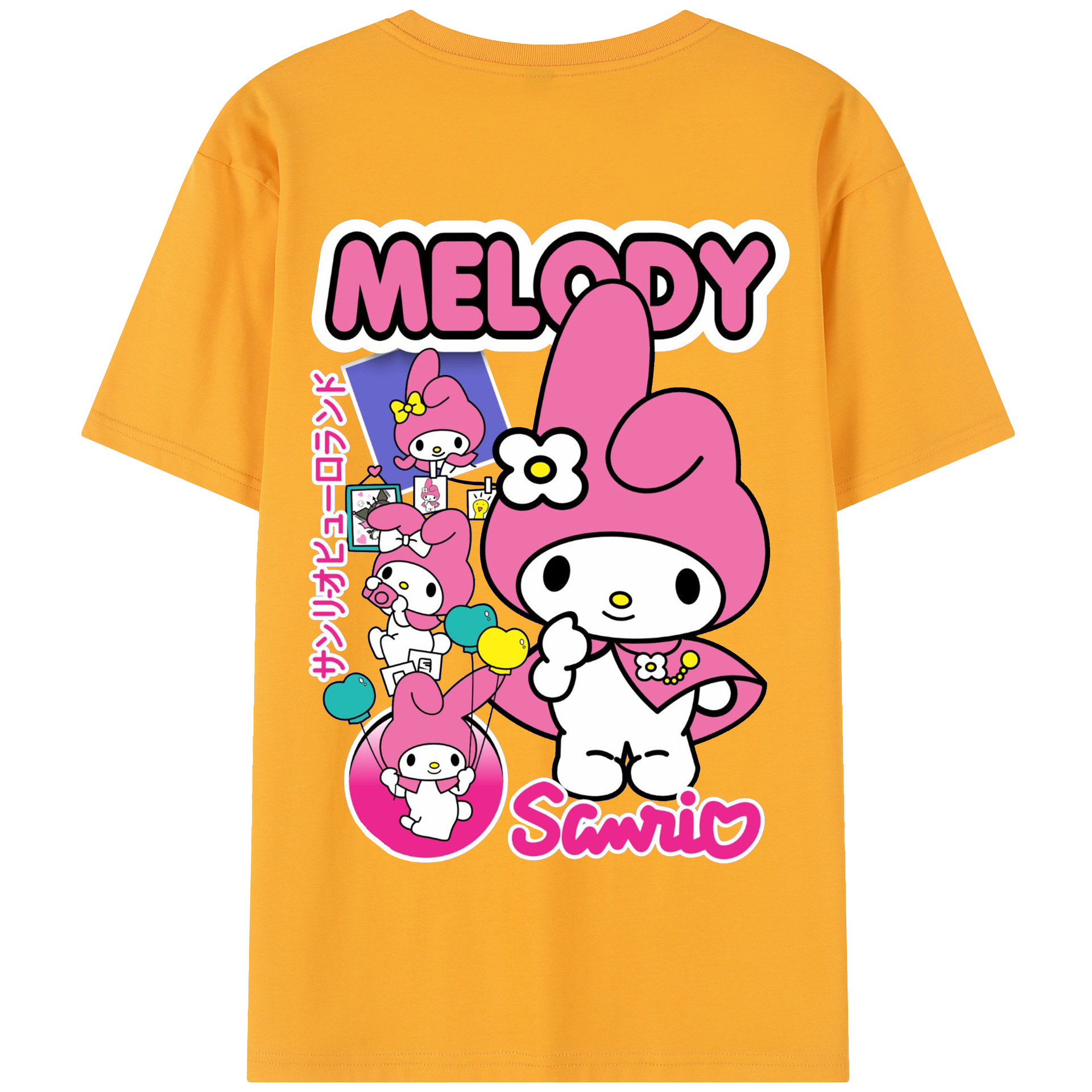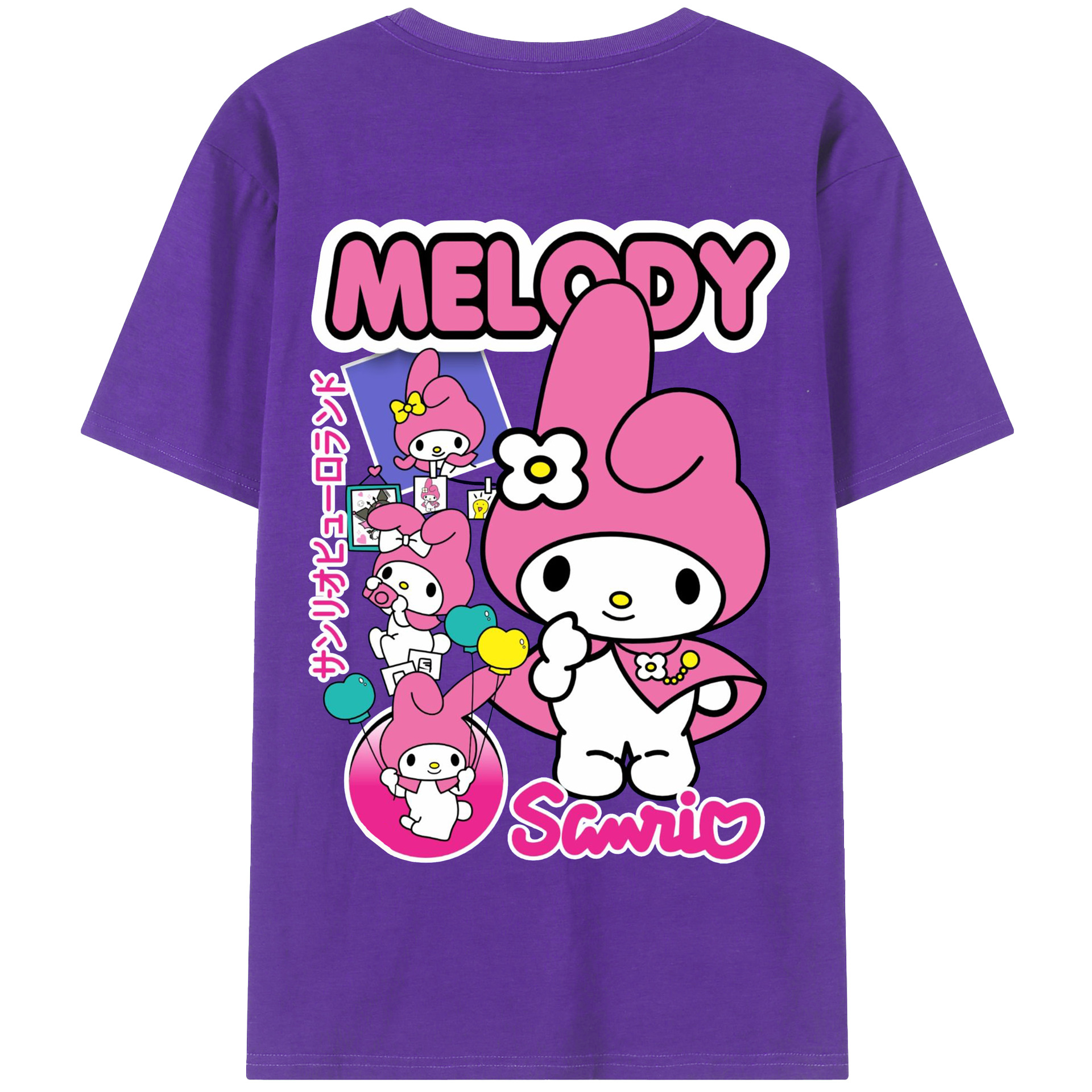 サンリオマイメロディ - 綿100% 半袖Tシャツ ・ バックプリント ・ 快適 通気性 ・ 日常使い 散歩 スポーツ用