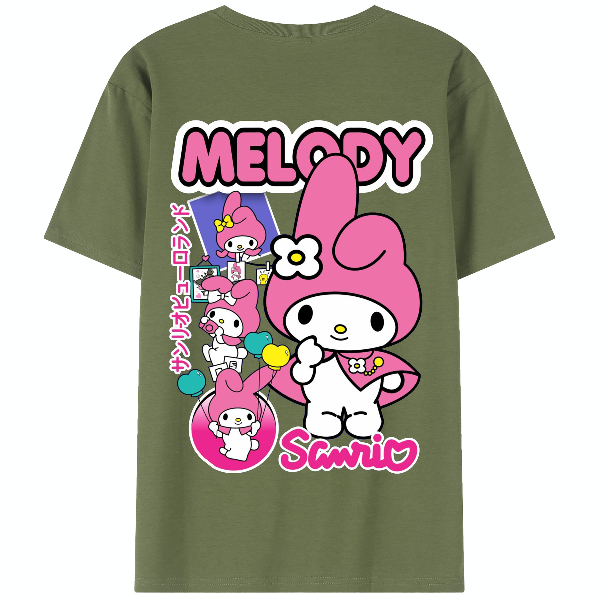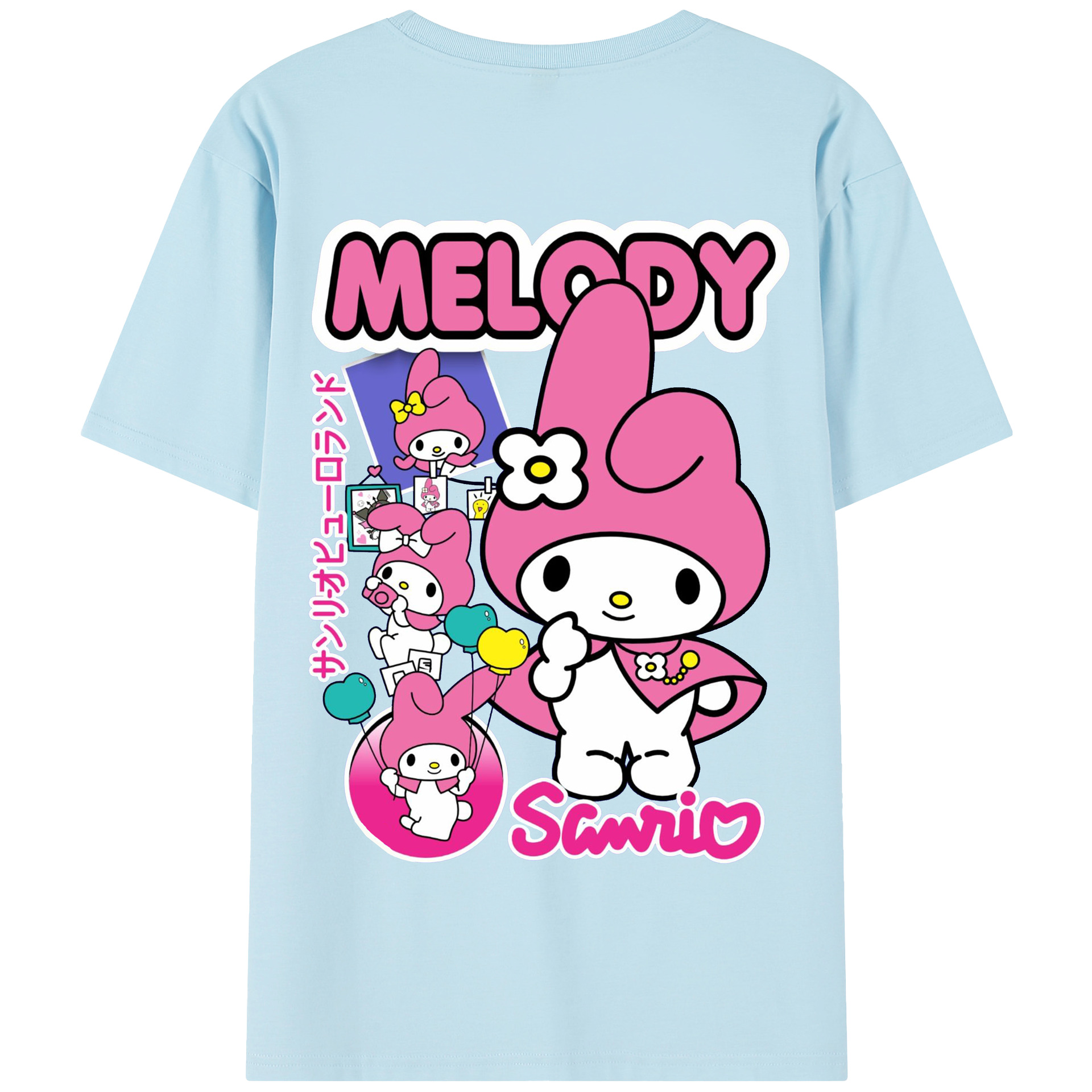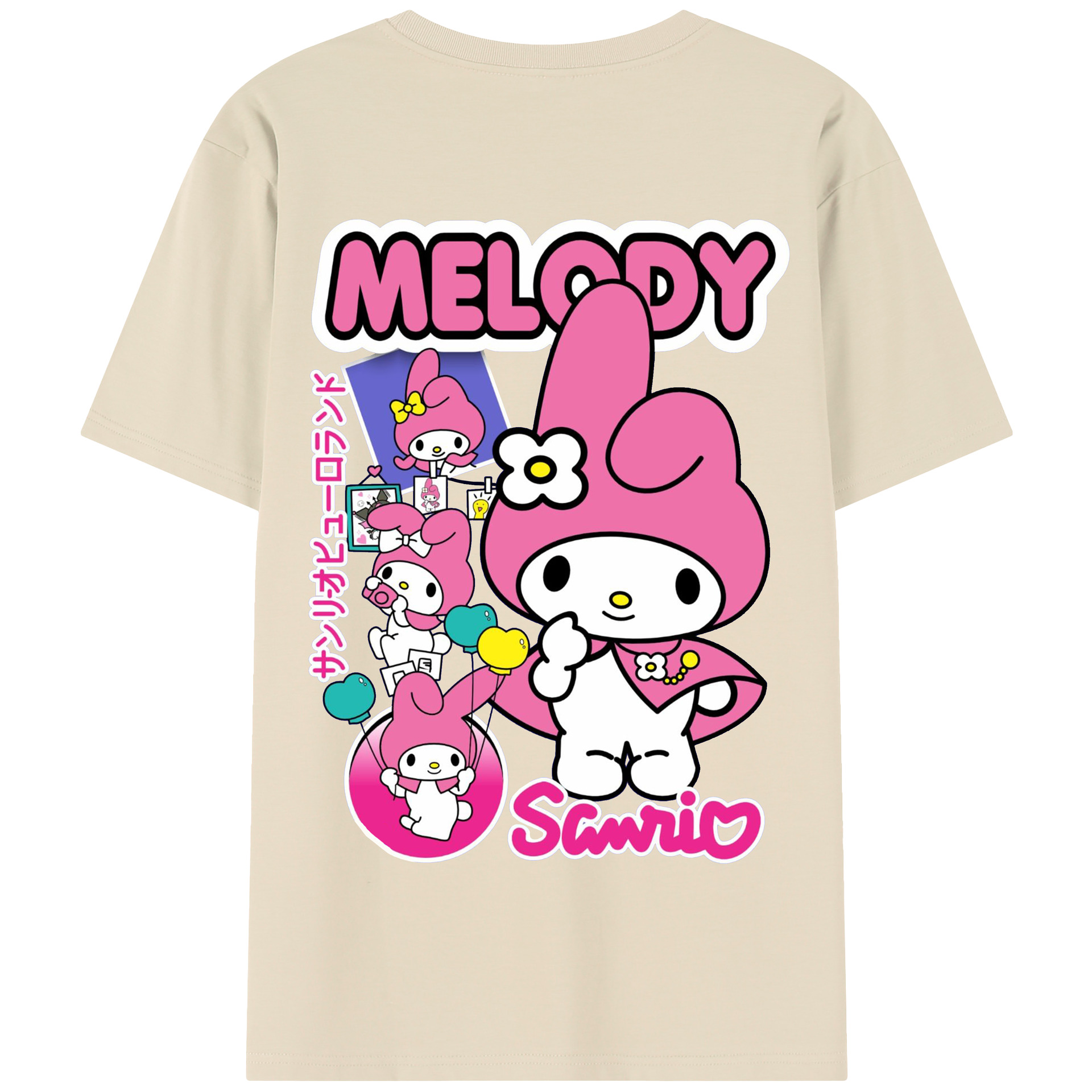 サンリオマイメロディ - 綿100% 半袖Tシャツ ・ バックプリント ・ 快適 通気性 ・ 日常使い 散歩 スポーツ用