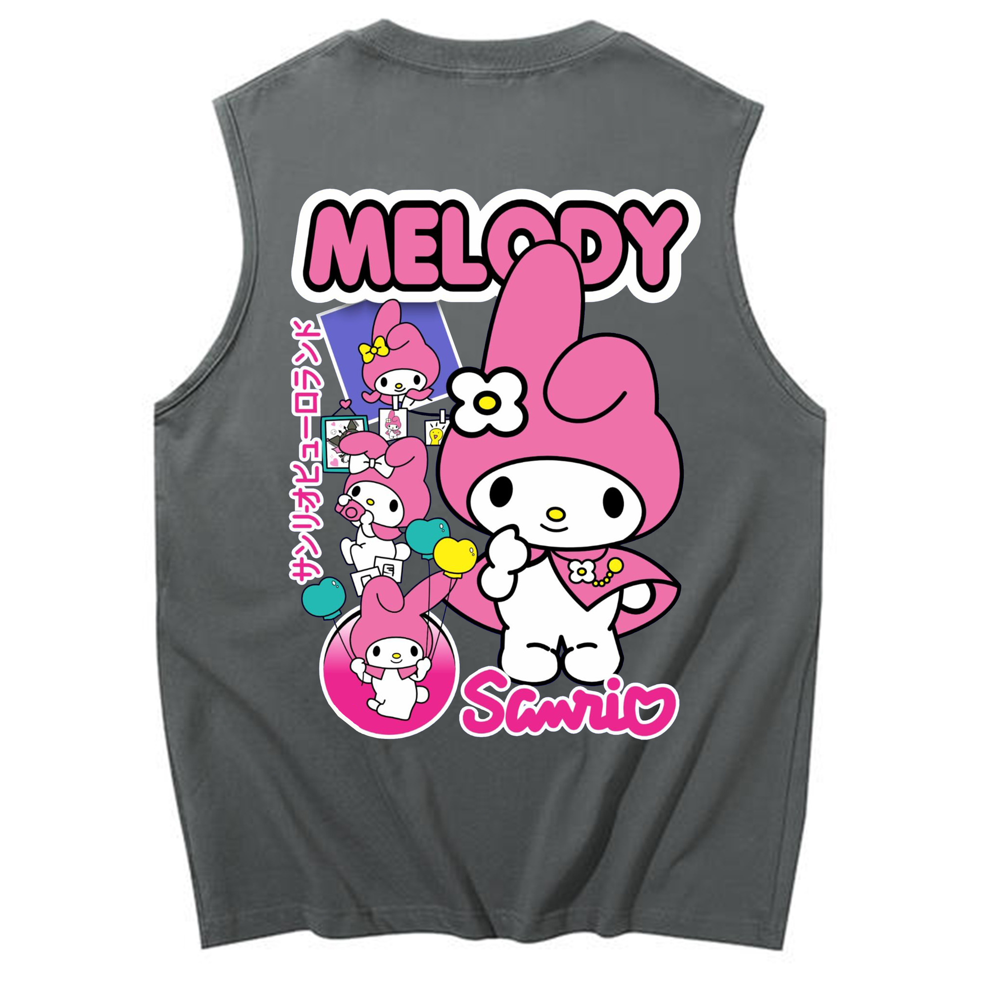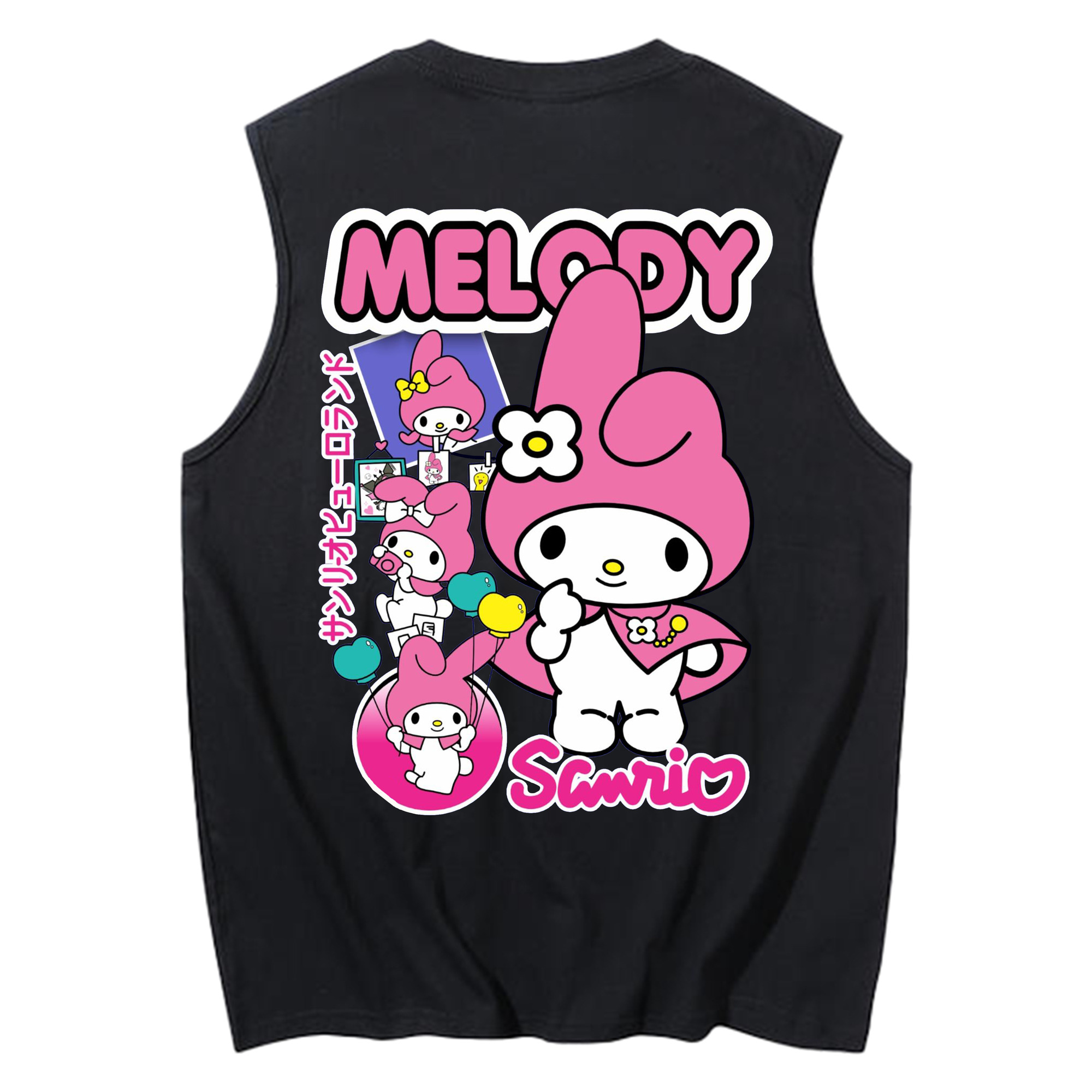 おもしろいマイメロディ - コットン100% タンクトップ ・ 背面プリント ・ タイトシルエット ・ 快適 通気性 ・ スポーツ カジュアル 散歩用