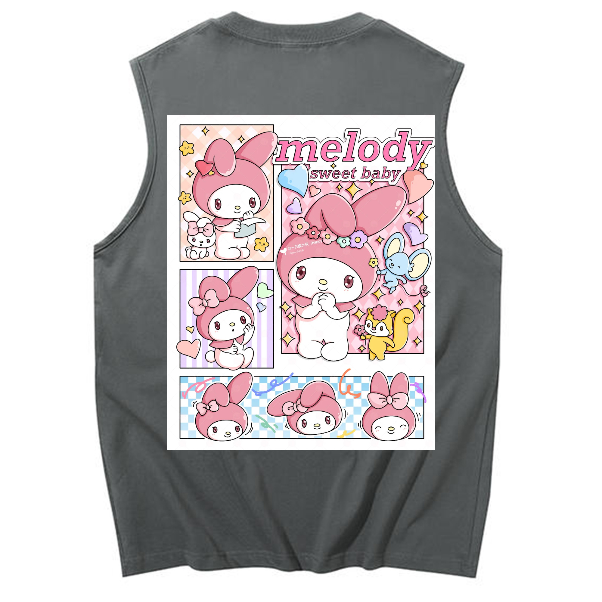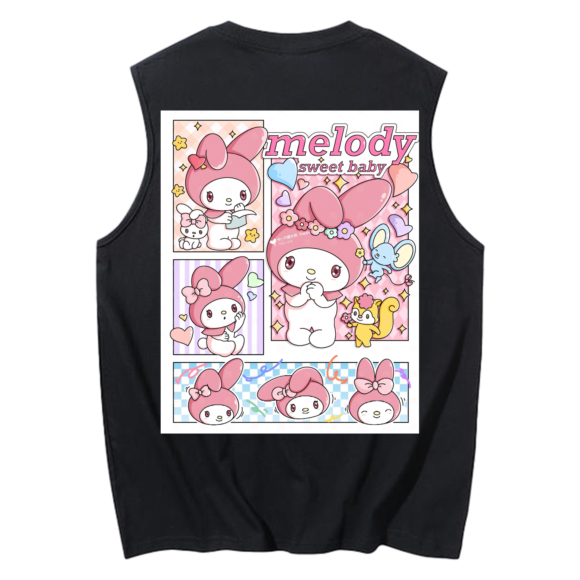 おもしろいマイメロディ - コットン100% タンクトップ ・ 背面プリント ・ タイトシルエット ・ 快適 通気性 ・ スポーツ カジュアル 散歩用
