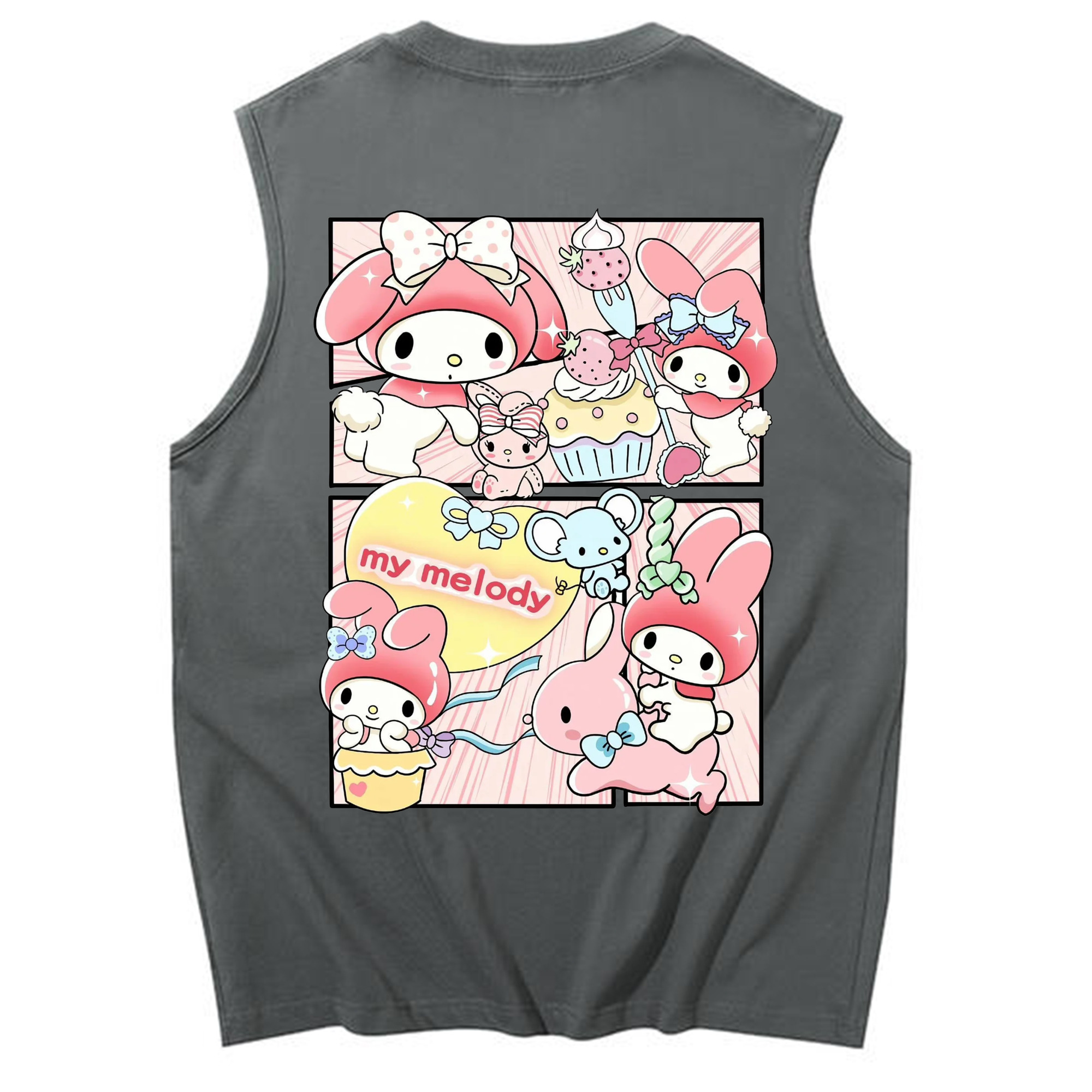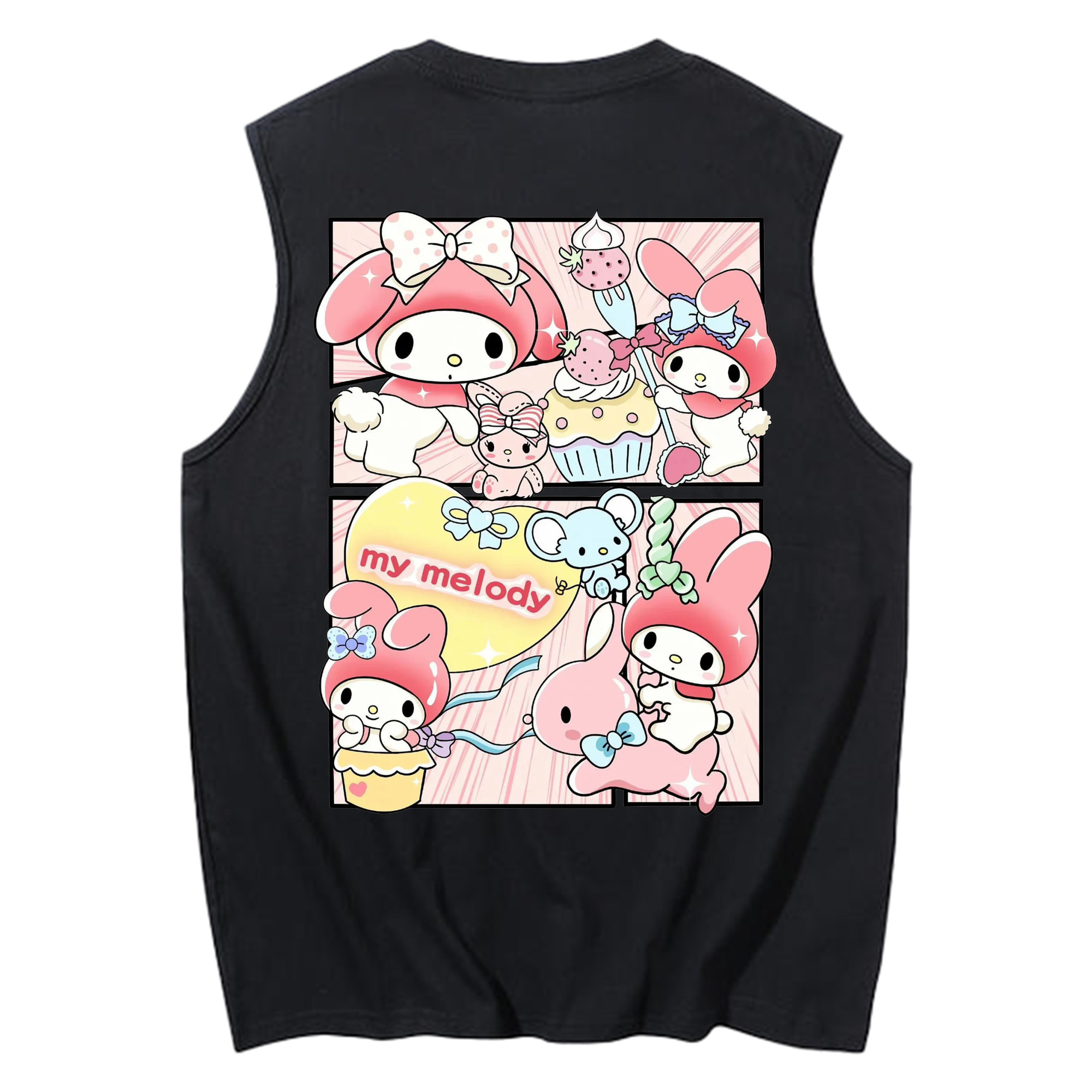 おもしろいマイメロディ - 綿100% 半袖Tシャツ ・ バックプリント ・ 快適 通気性 ・ 日常使い 散歩 スポーツ用