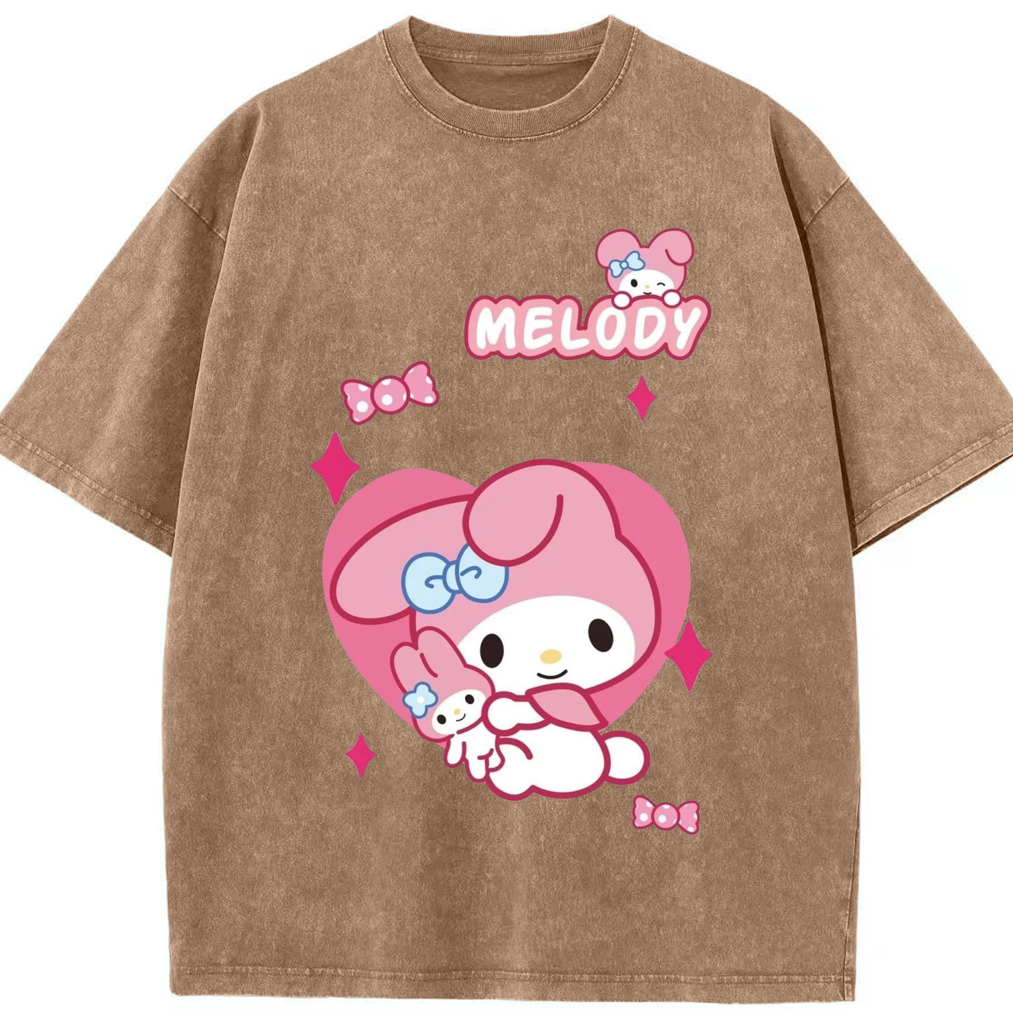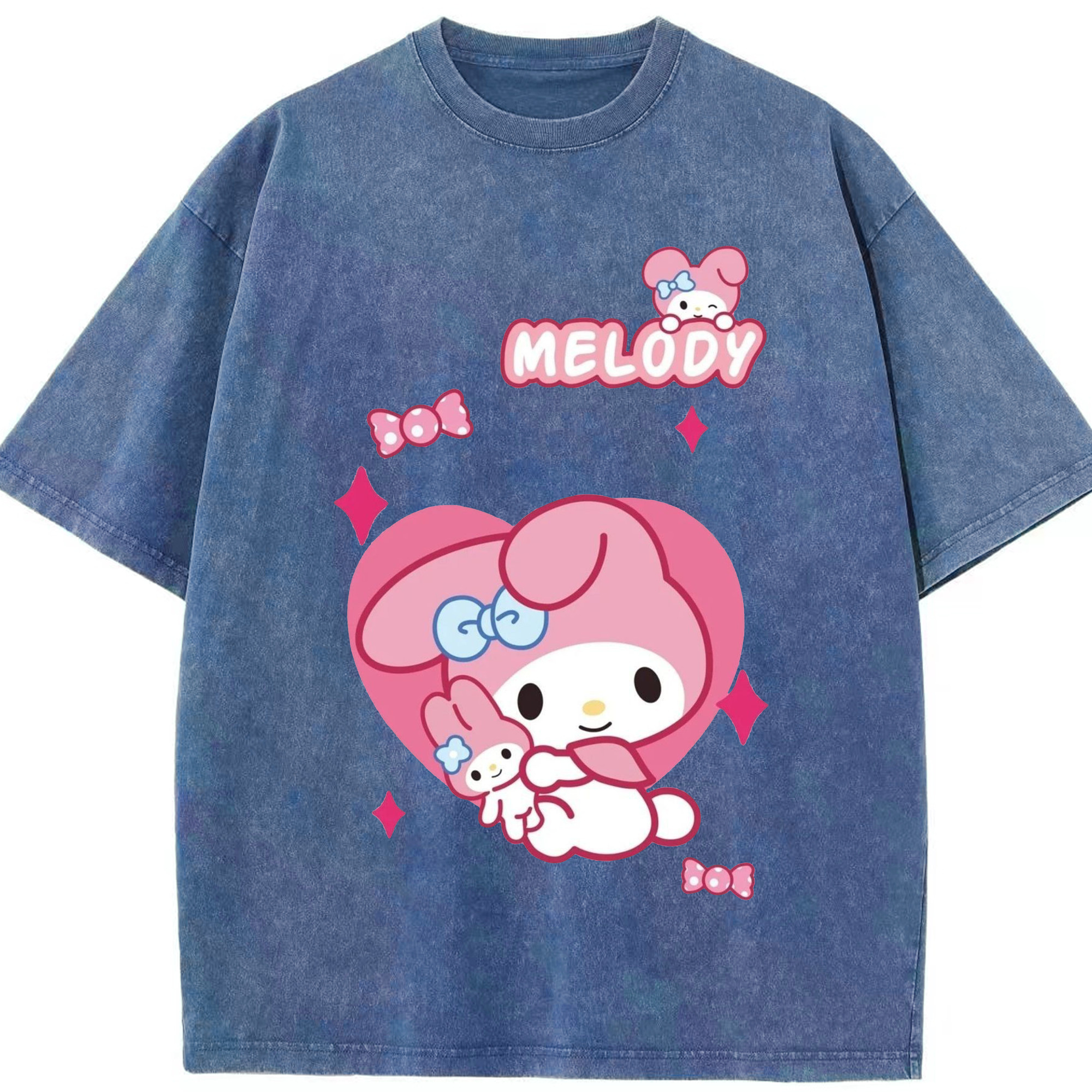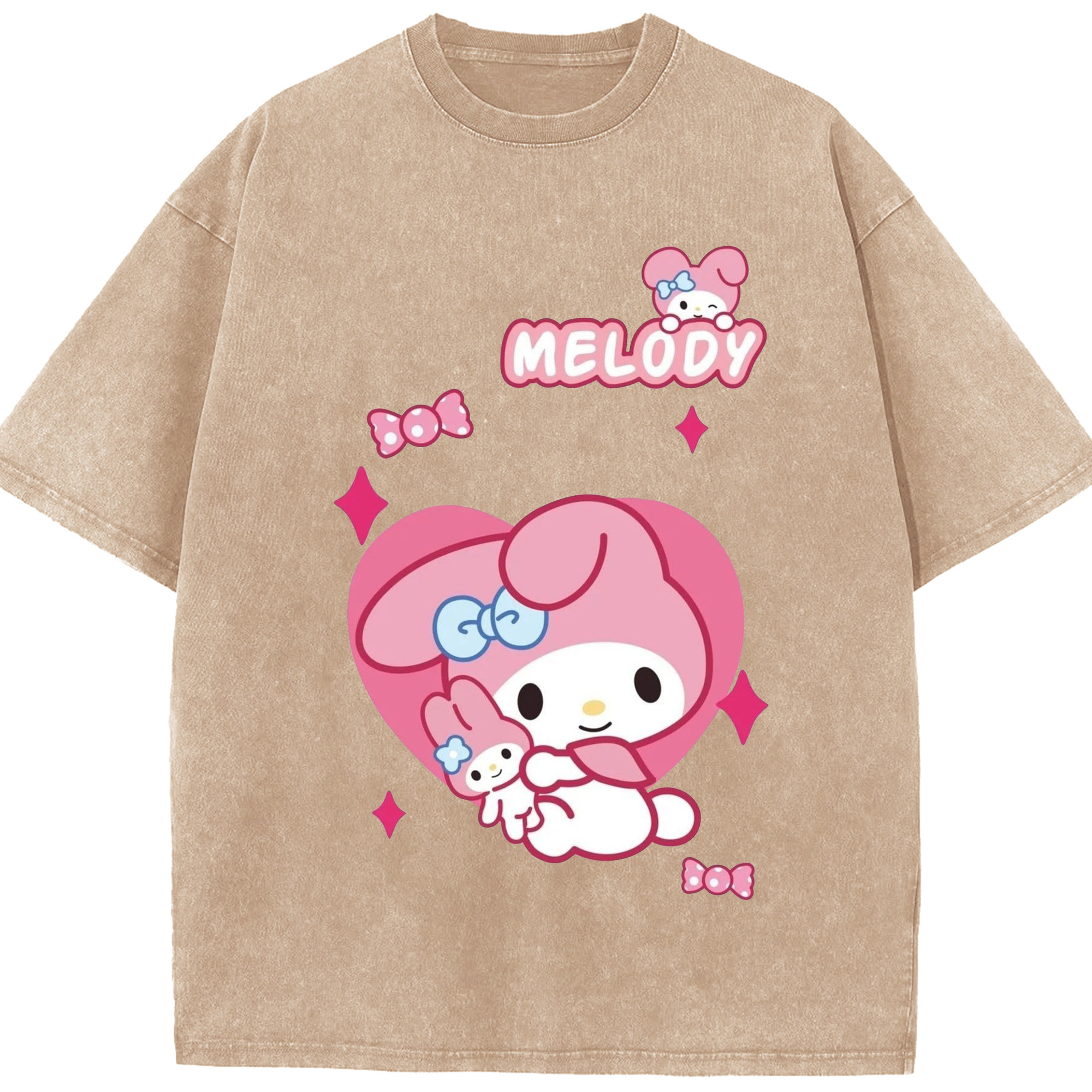 おもしろいマイメロディ - 綿100% ヴィンテージ風 半袖Tシャツ ・ フロントプリント ・ 柔らか肌触り ・ 通気性 快適 ・ スポーツ カジュアル 外出用