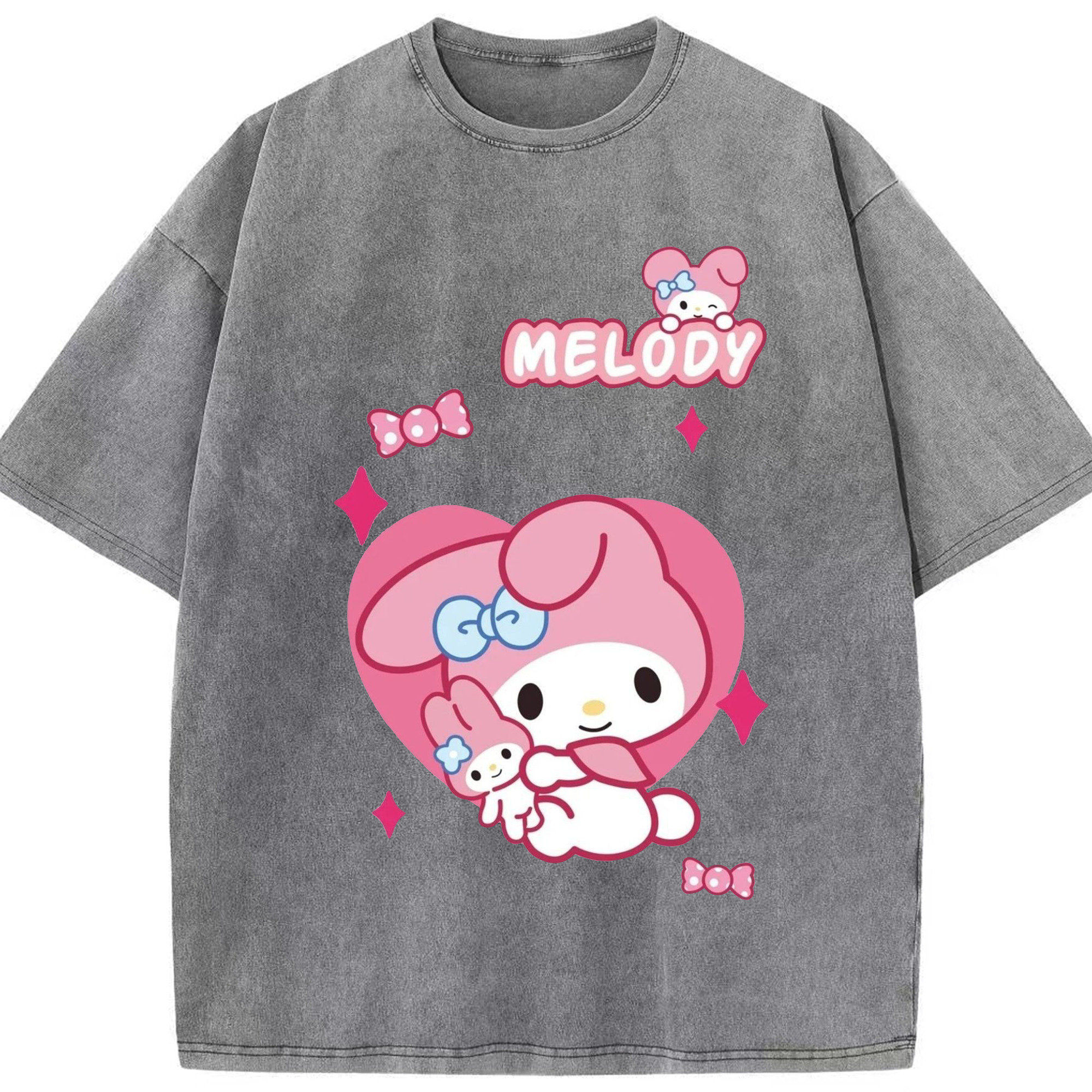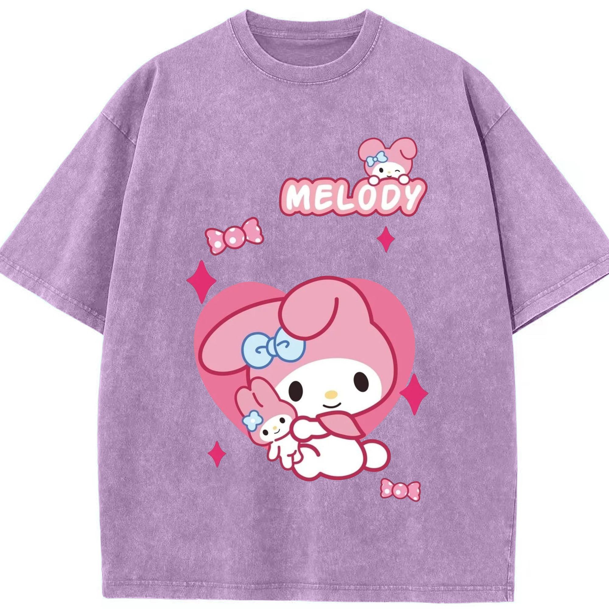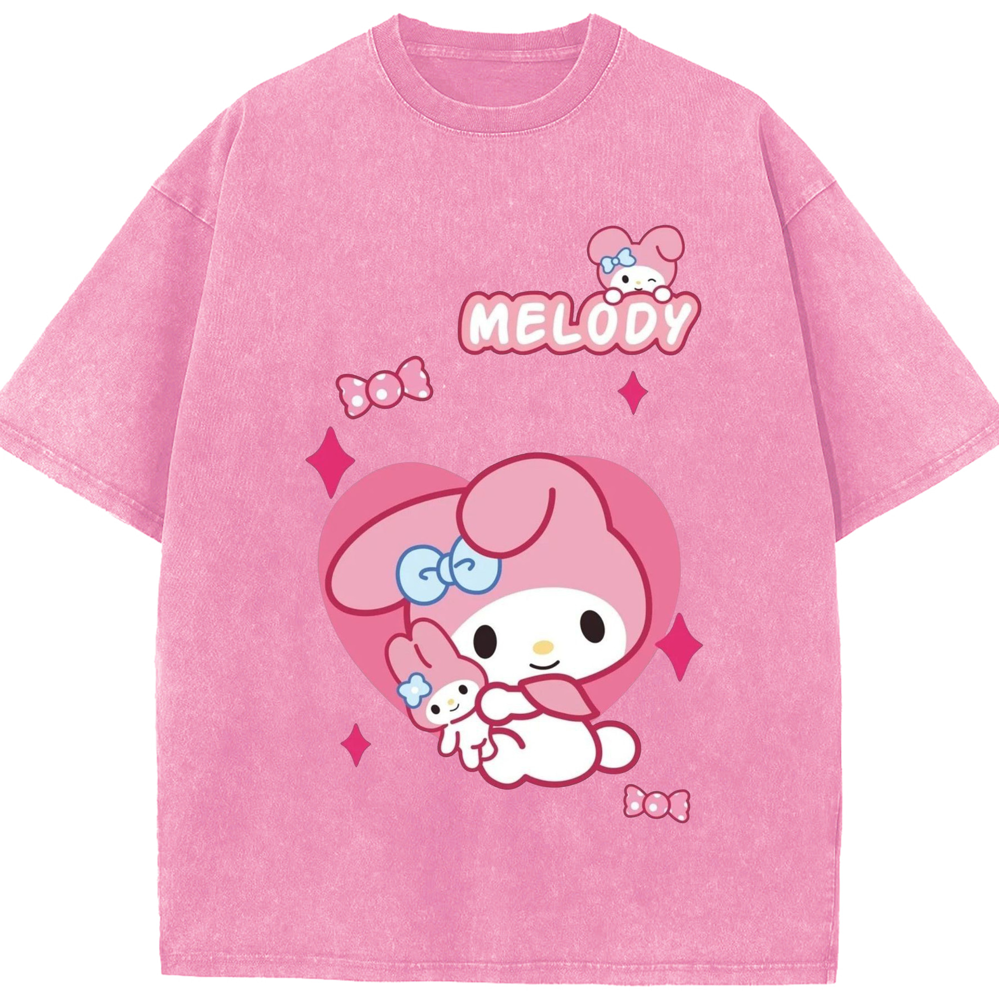 おもしろいマイメロディ - 綿100% 半袖Tシャツ ・ バックプリント ・ 快適 通気性 ・ 日常使い 散歩 スポーツ用