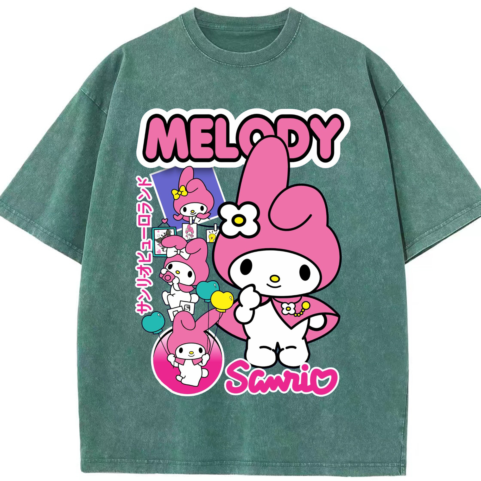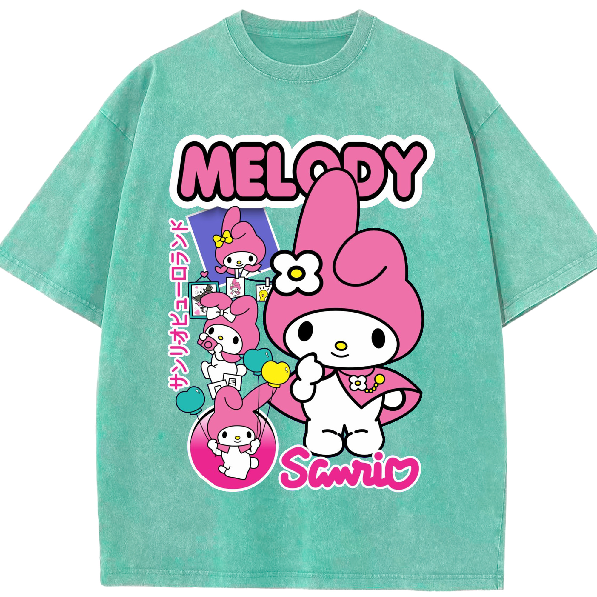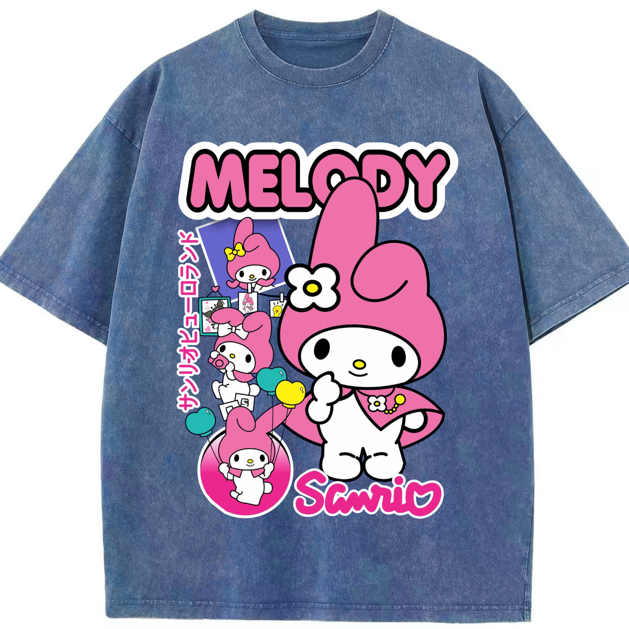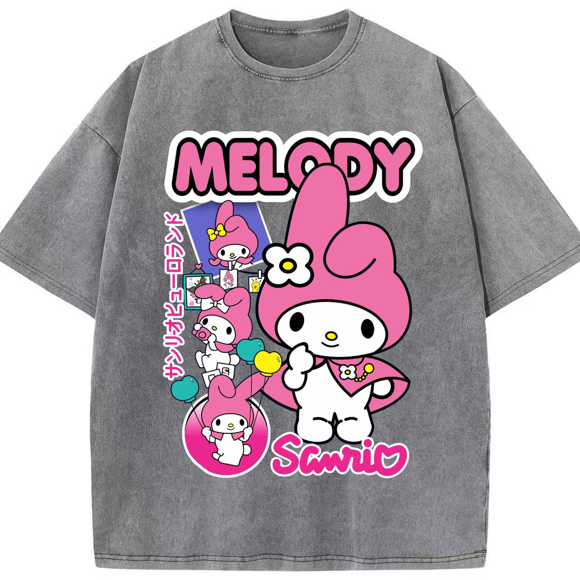 かわいい系サンリオ - 綿100% ヴィンテージ風 半袖Tシャツ ・ フロントプリント ・ 柔らか肌触り ・ 通気性 快適 ・ スポーツ カジュアル 外出用