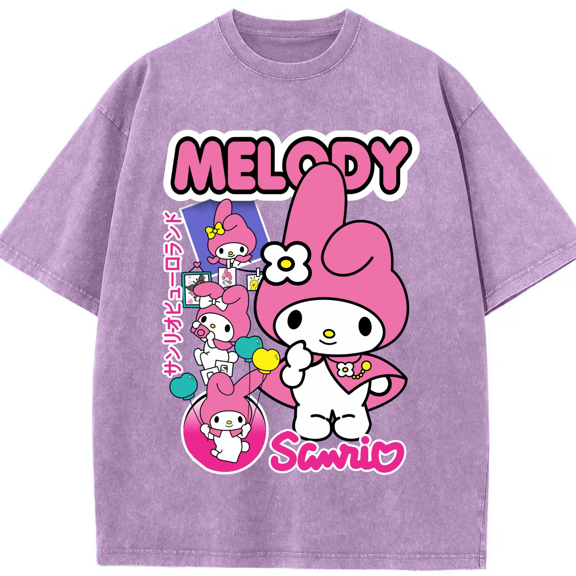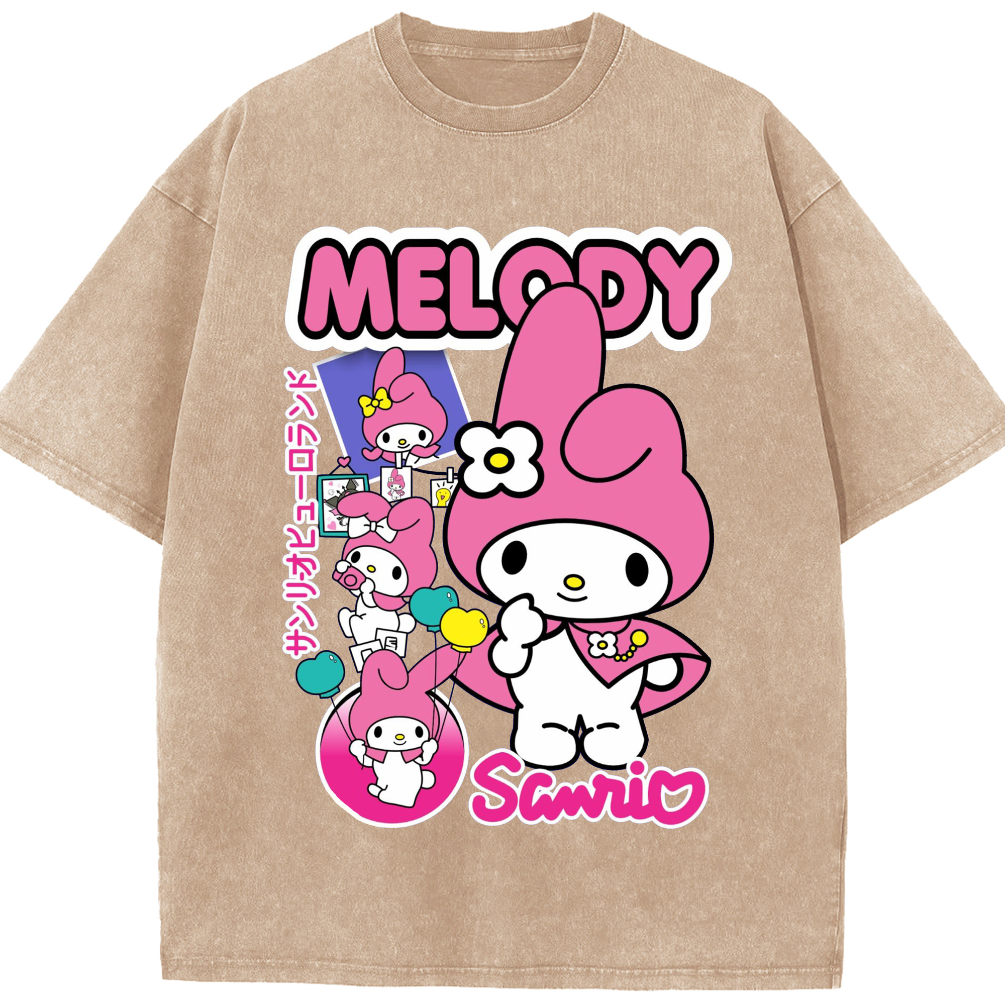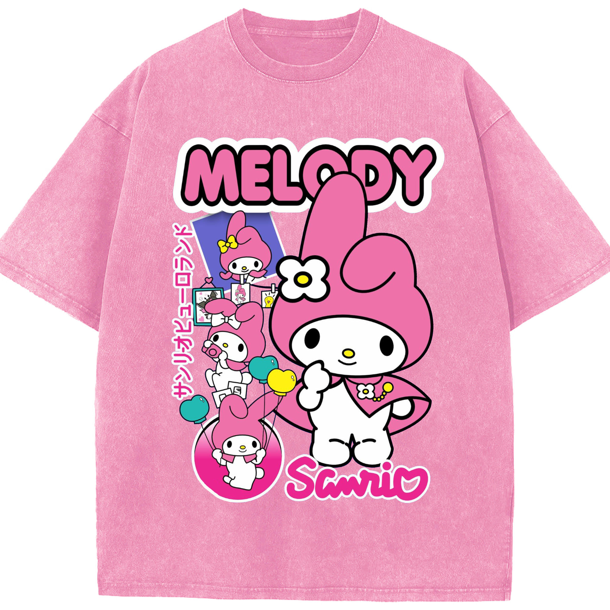 おもしろいマイメロディ - 綿100% 半袖Tシャツ ・ バックプリント ・ 快適 通気性 ・ 日常使い 散歩 スポーツ用