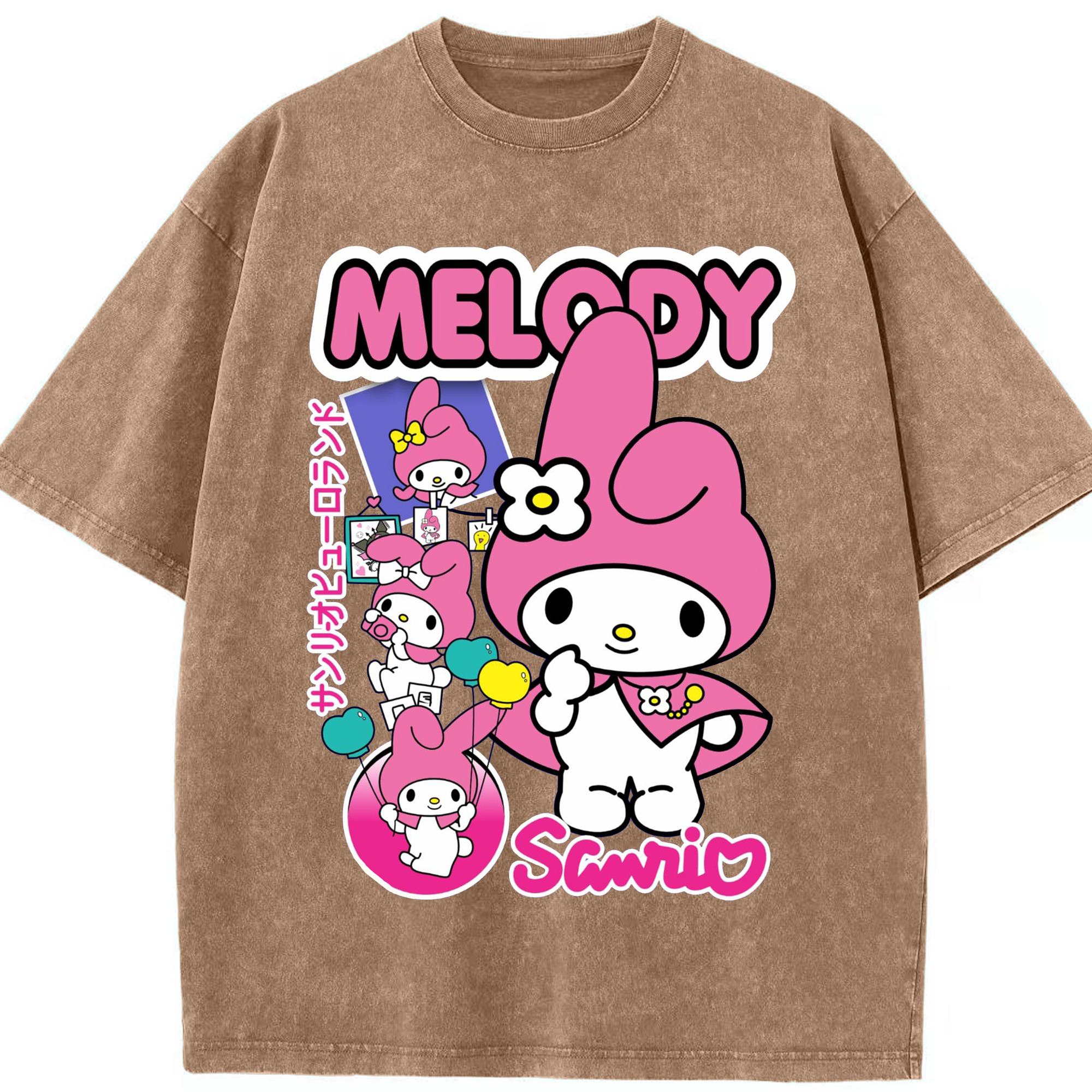 サンリオファミリー新作 - 綿100% ヴィンテージ風 半袖Tシャツ ・ フロントプリント ・ 柔らか肌触り ・ 通気性 快適 ・ スポーツ カジュアル 外出用