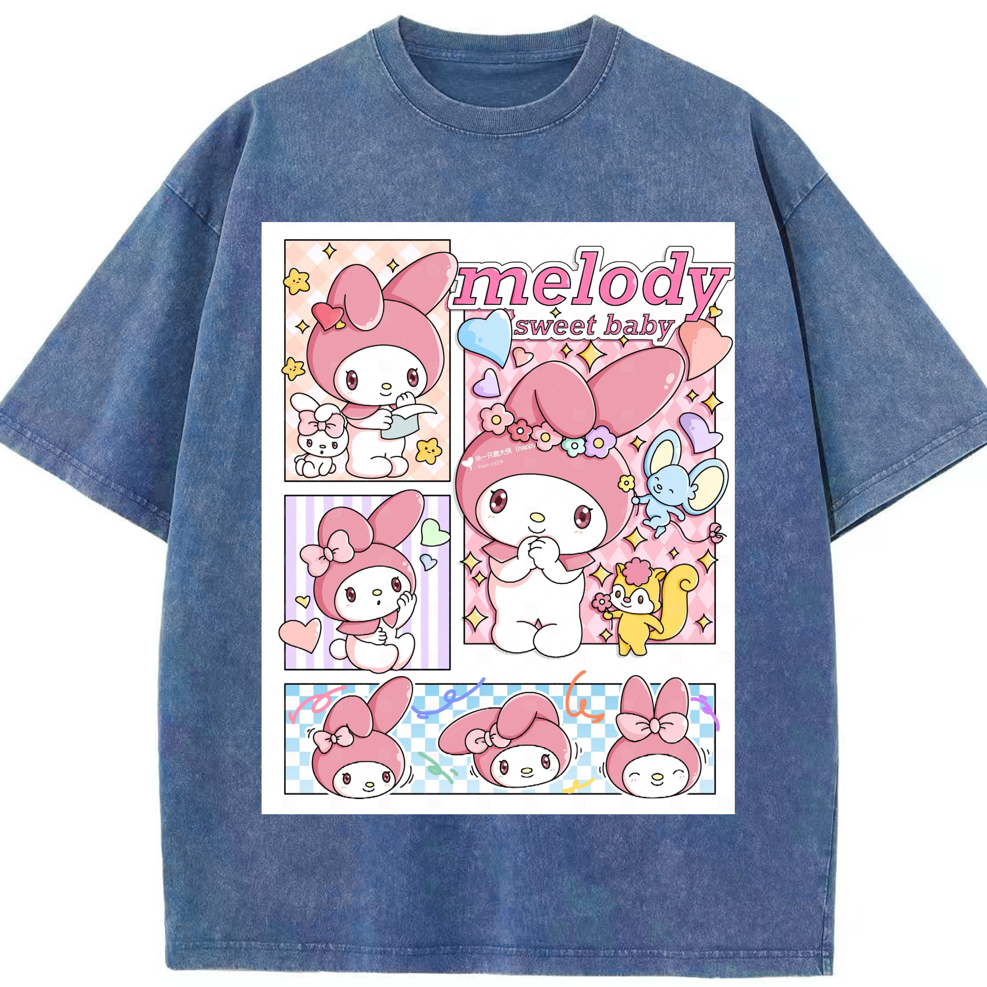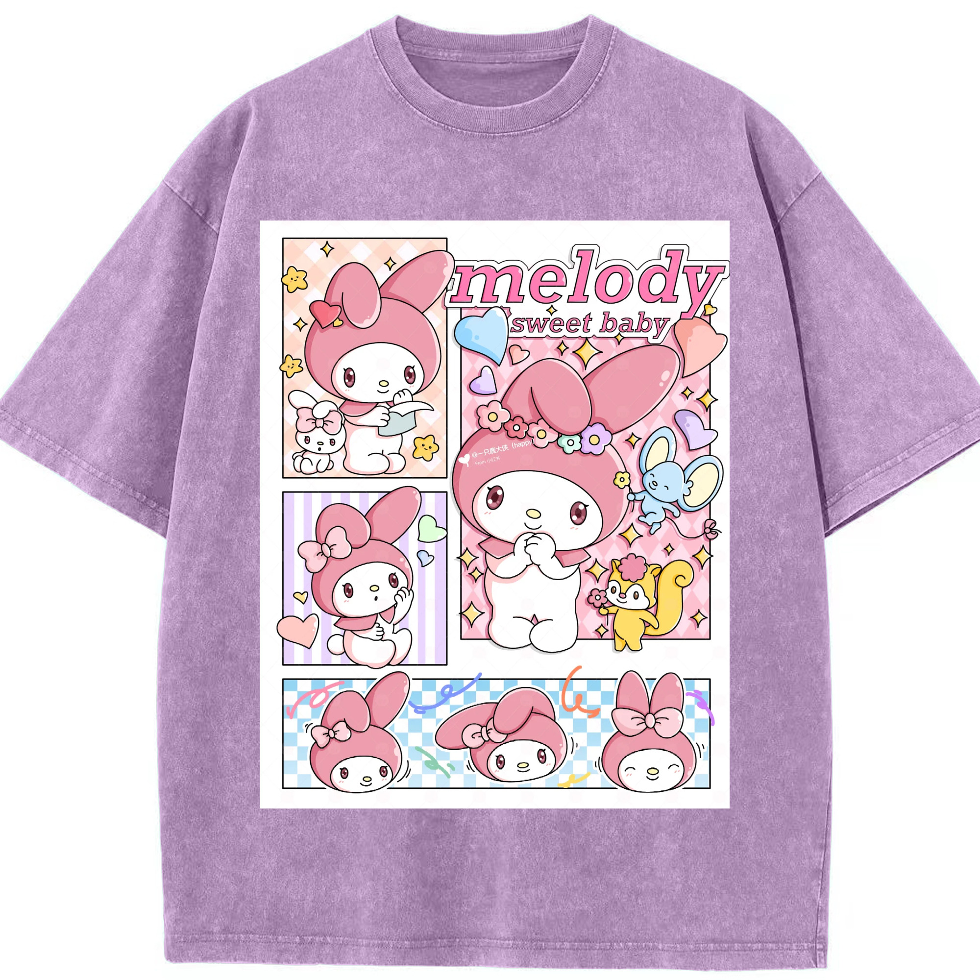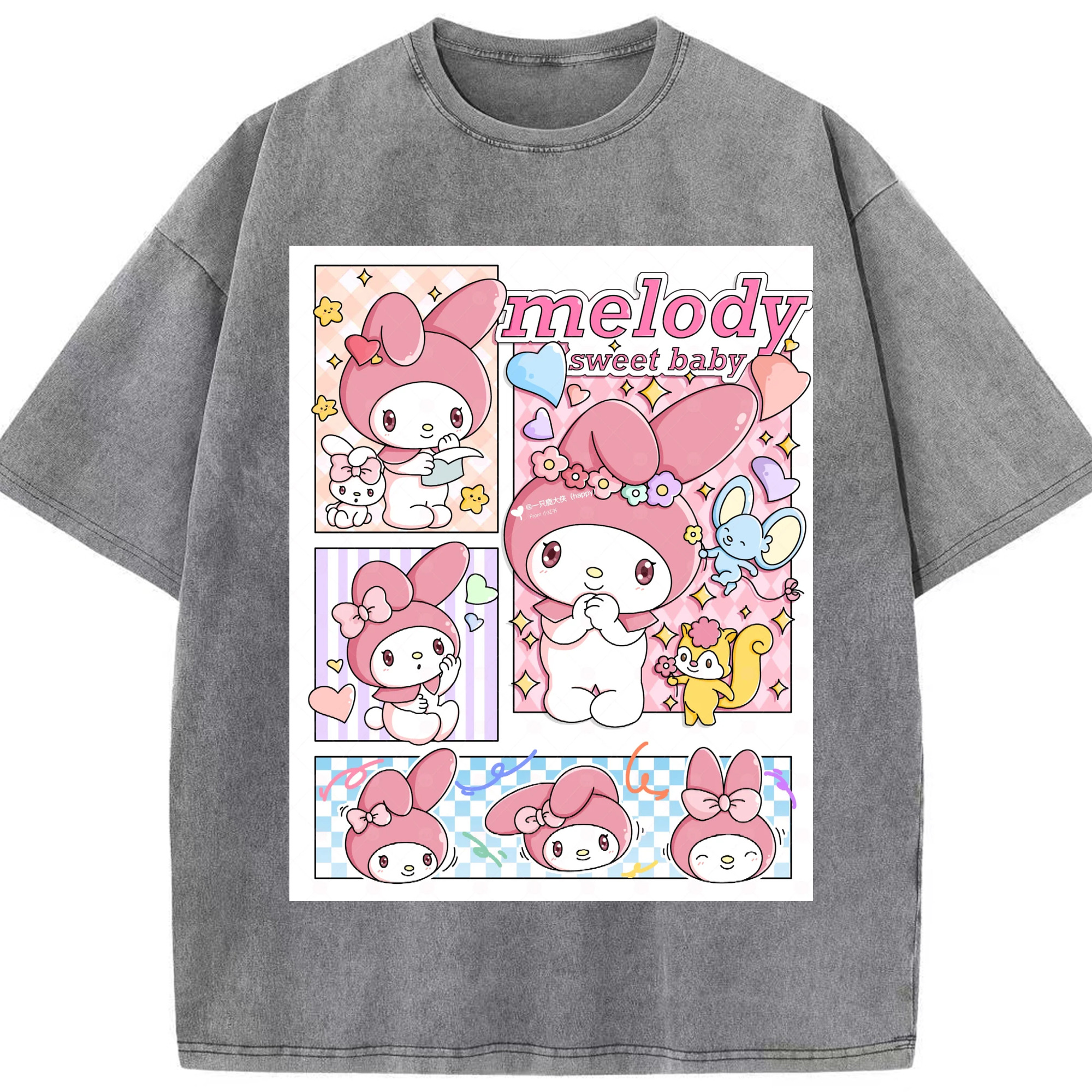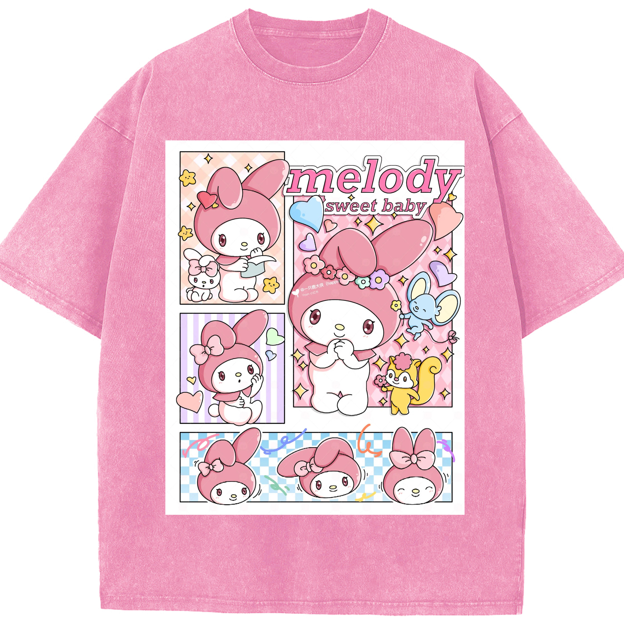 おもしろいマイメロディ - 綿100% 半袖Tシャツ ・ バックプリント ・ 快適 通気性 ・ 日常使い 散歩 スポーツ用