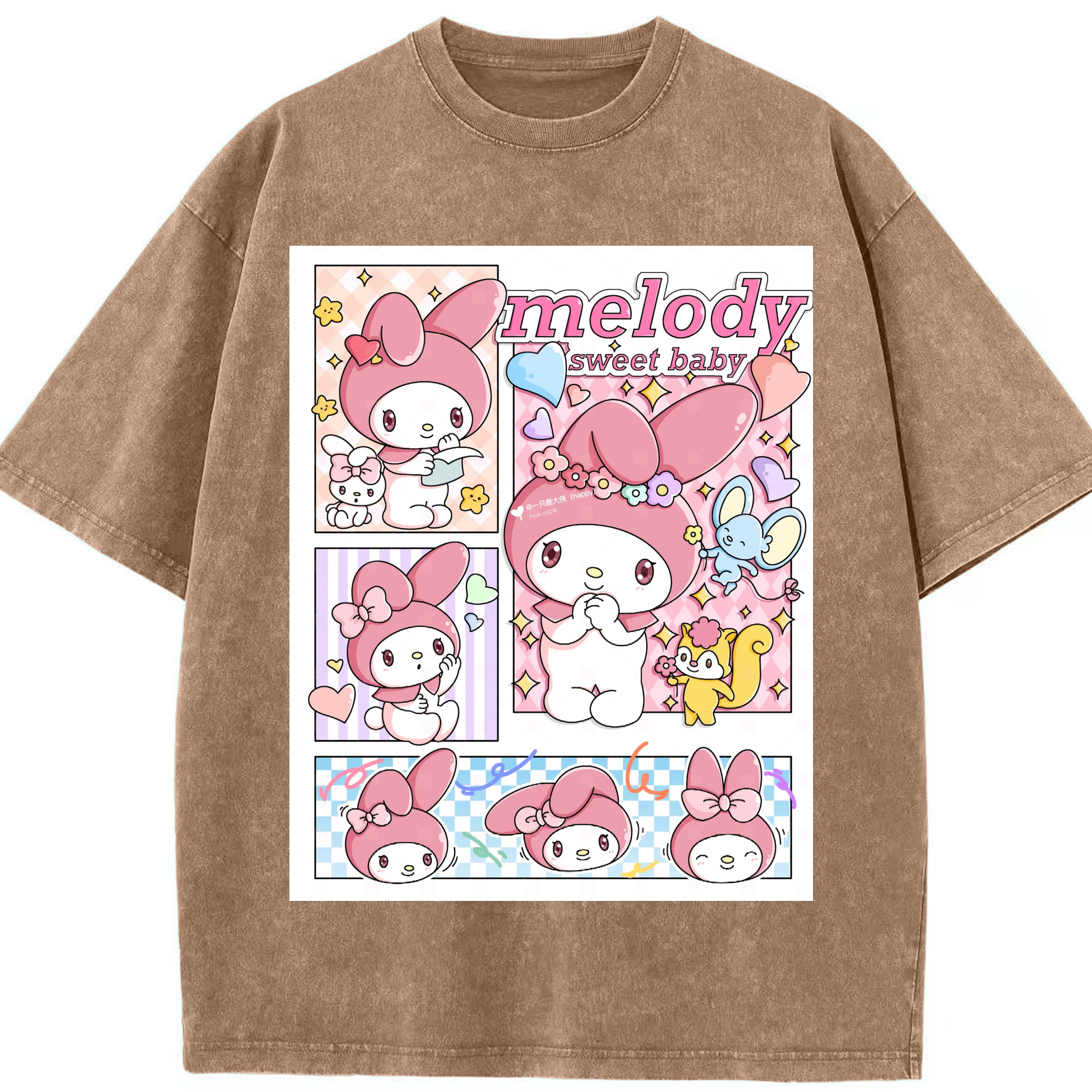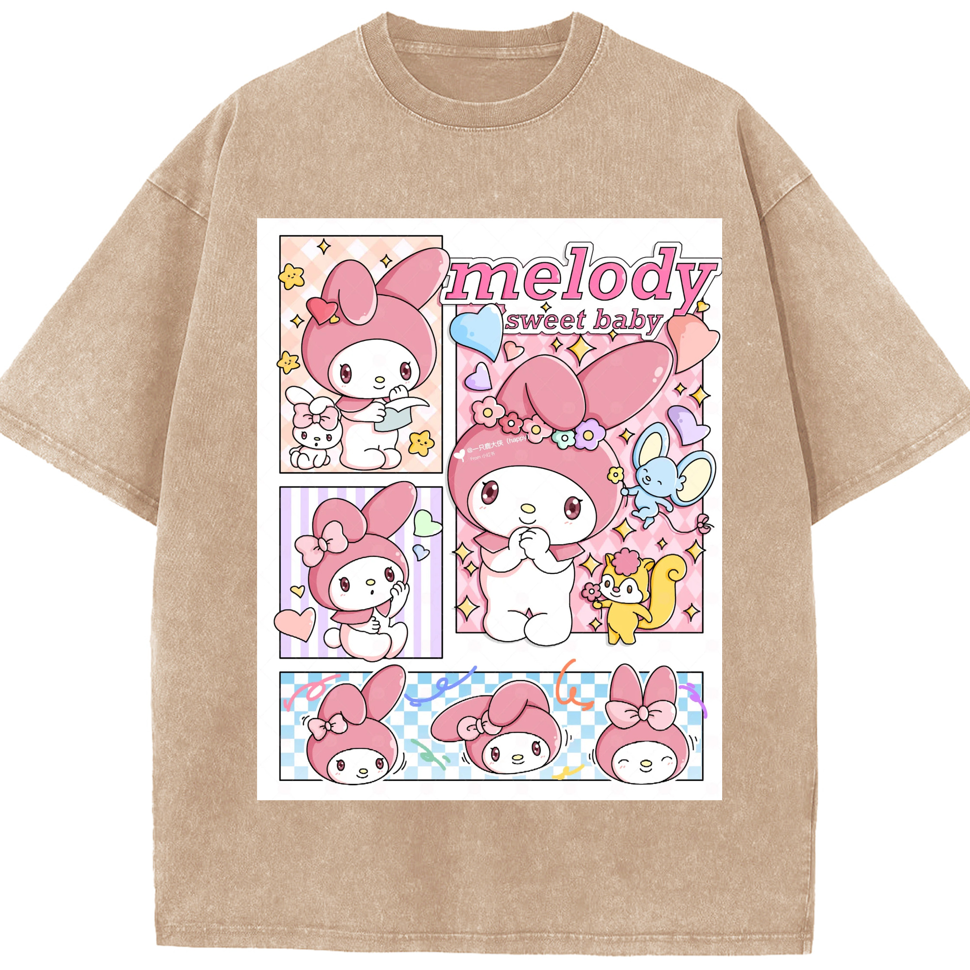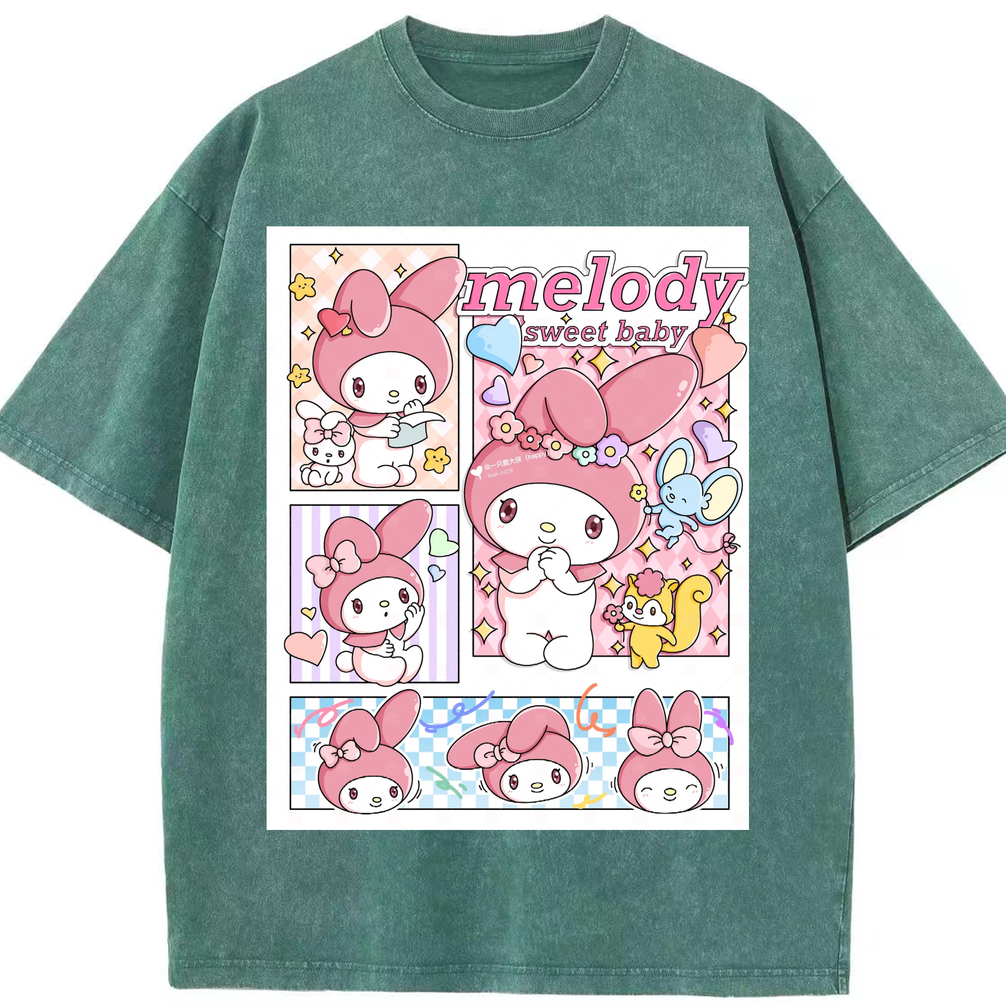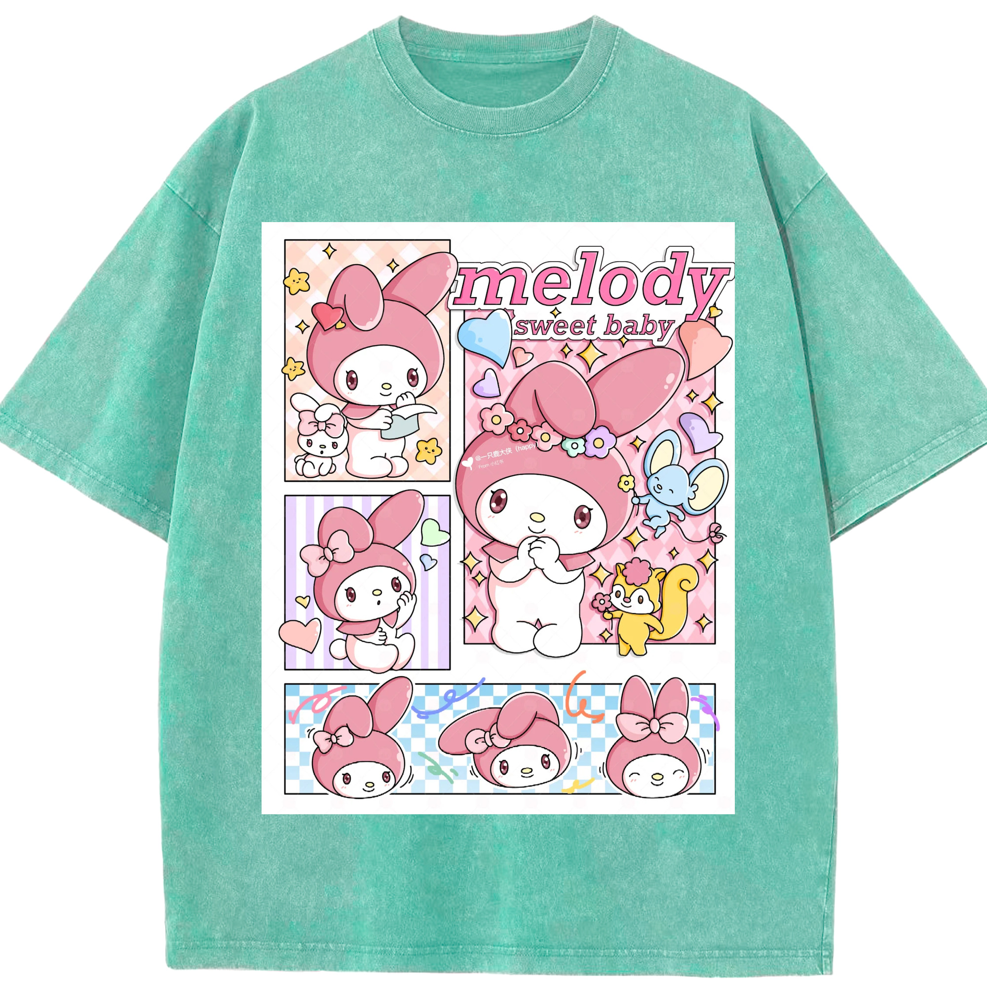 おもしろいマイメロディ - 綿100% 半袖Tシャツ ・ バックプリント ・ 快適 通気性 ・ 日常使い 散歩 スポーツ用
