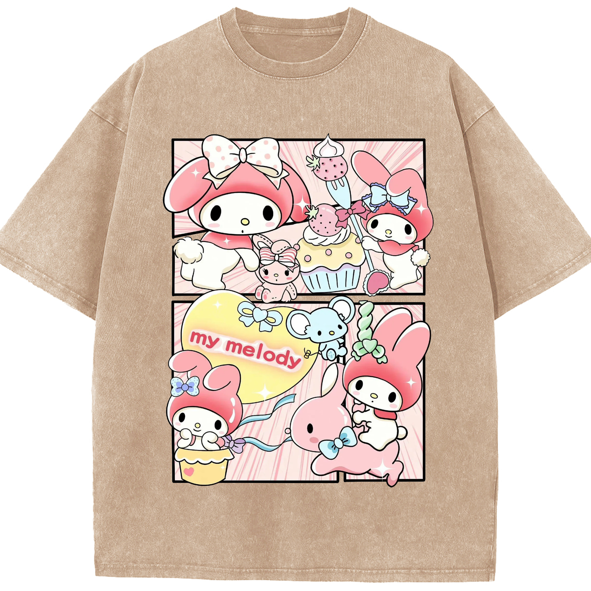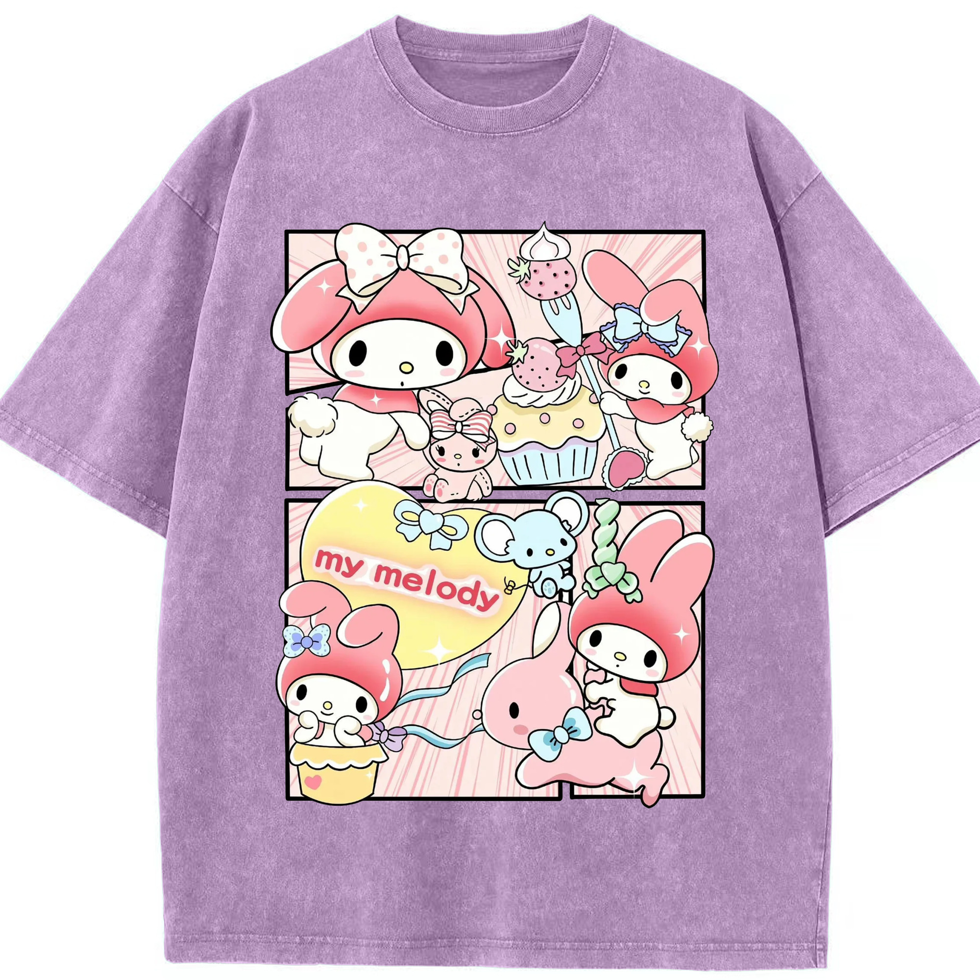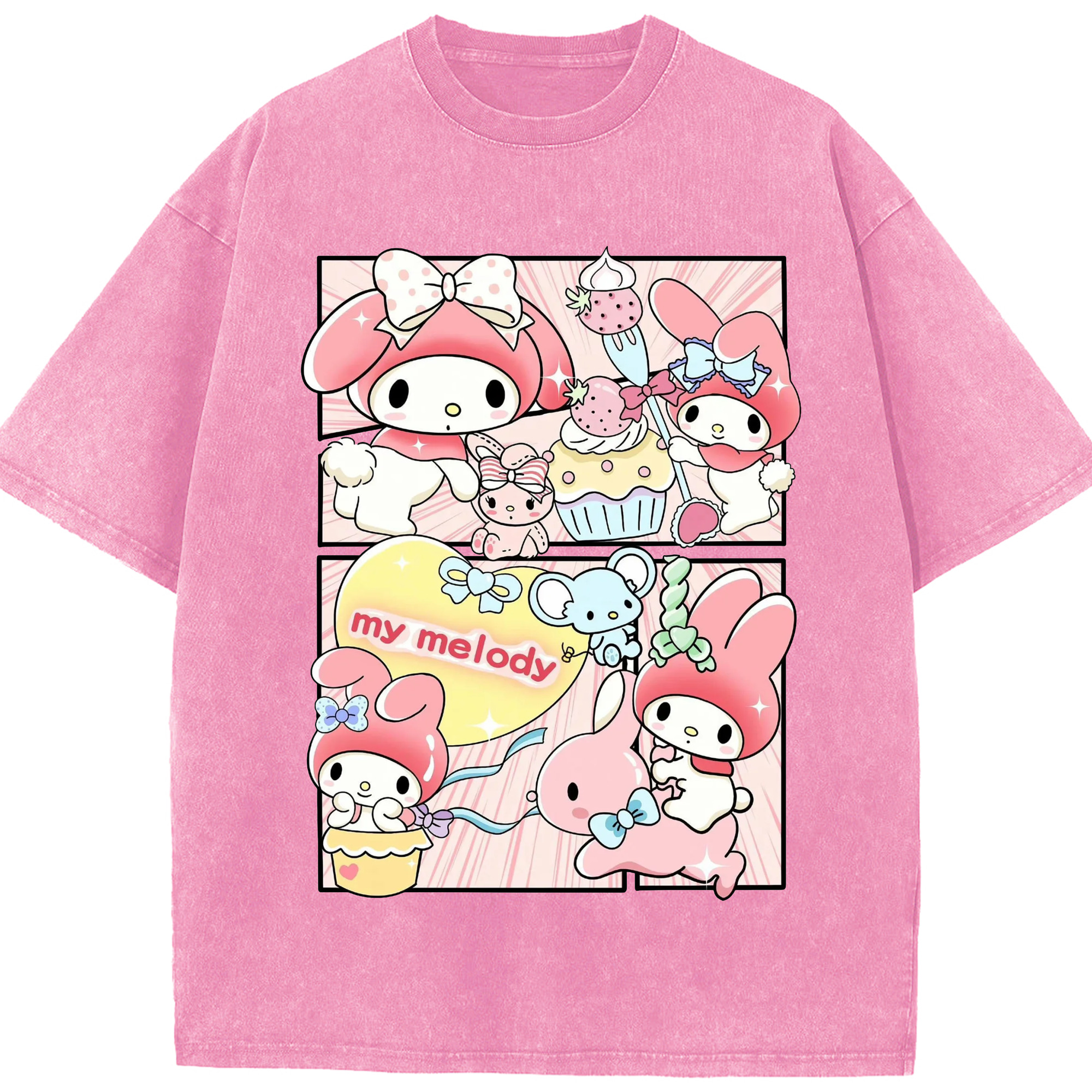 おもしろいマイメロディ - 綿100% 半袖Tシャツ ・ バックプリント ・ 快適 通気性 ・ 日常使い 散歩 スポーツ用