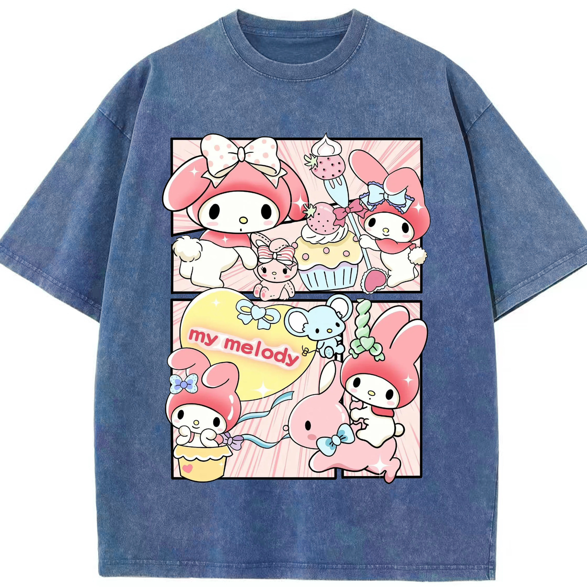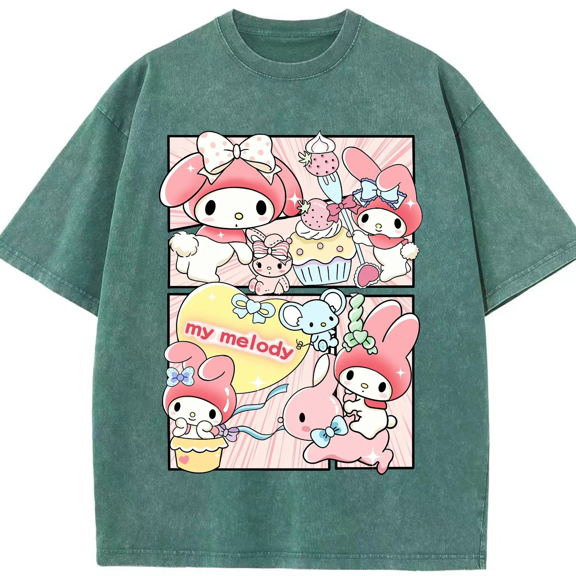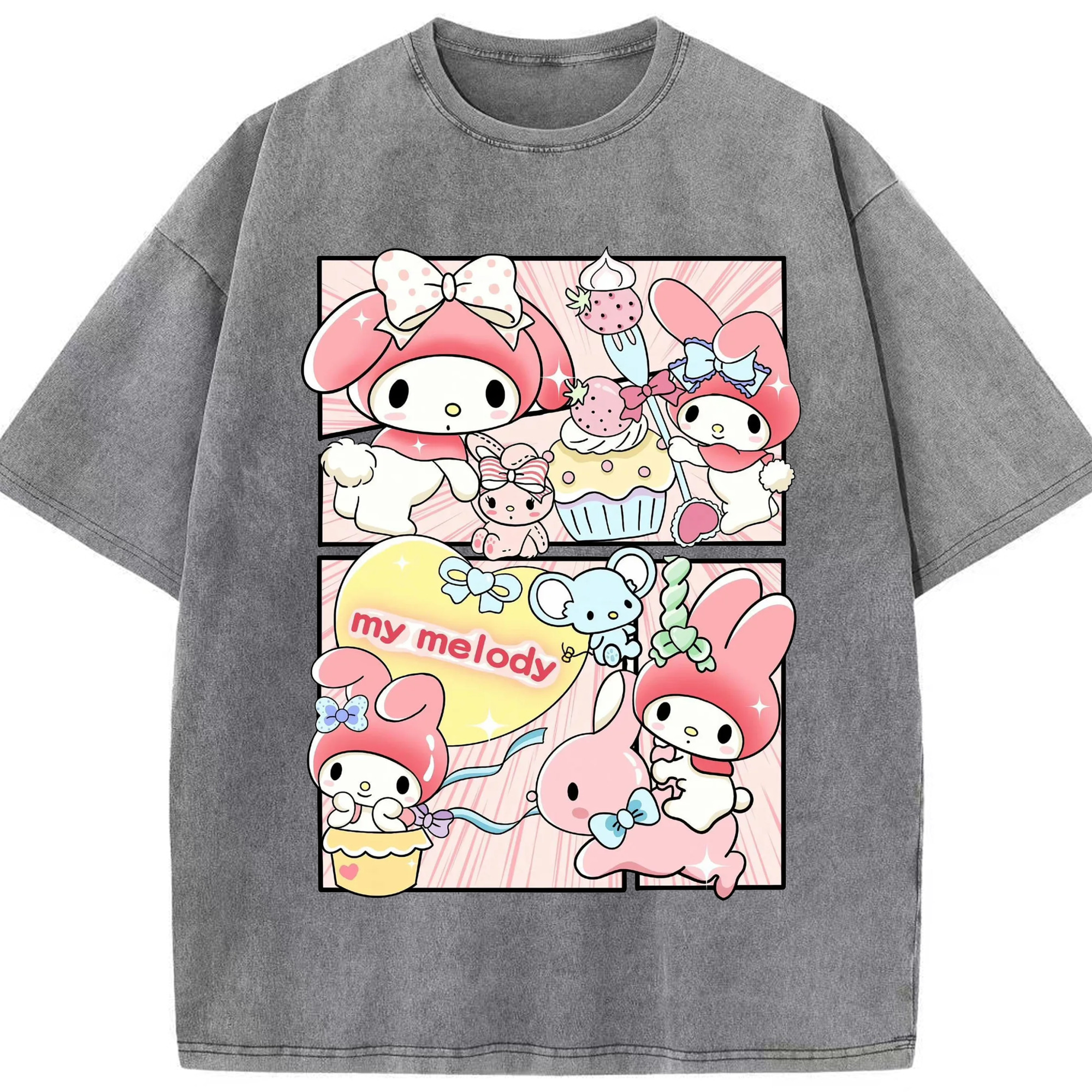 おもしろいマイメロディ - 綿100% 半袖Tシャツ ・ バックプリント ・ 快適 通気性 ・ 日常使い 散歩 スポーツ用