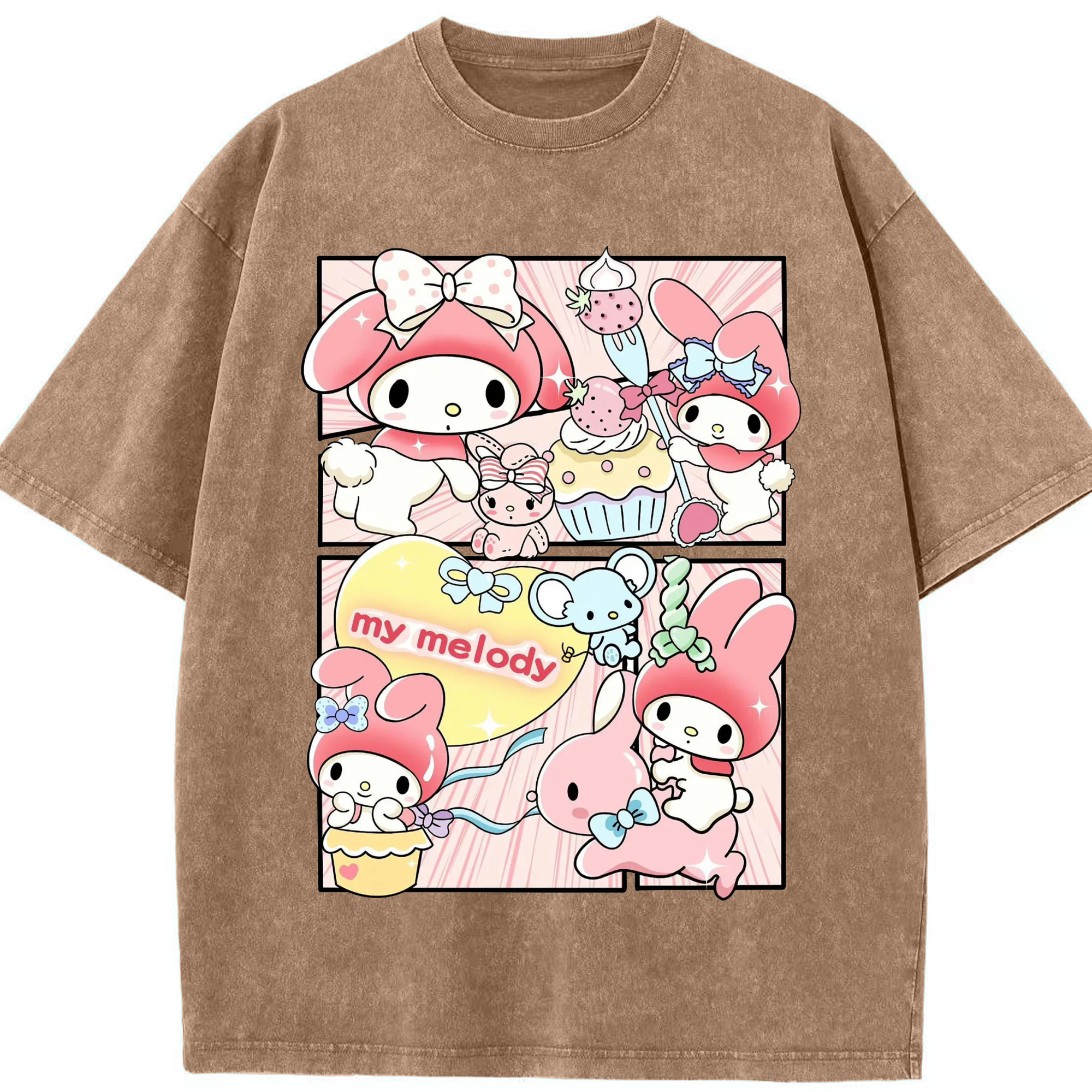 サンリオファミリー 2025年新作 - 綿100% ヴィンテージ風 半袖Tシャツ ・ フロントプリント ・ 柔らか肌触り ・ 通気性 快適 ・ スポーツ カジュアル 外出用
