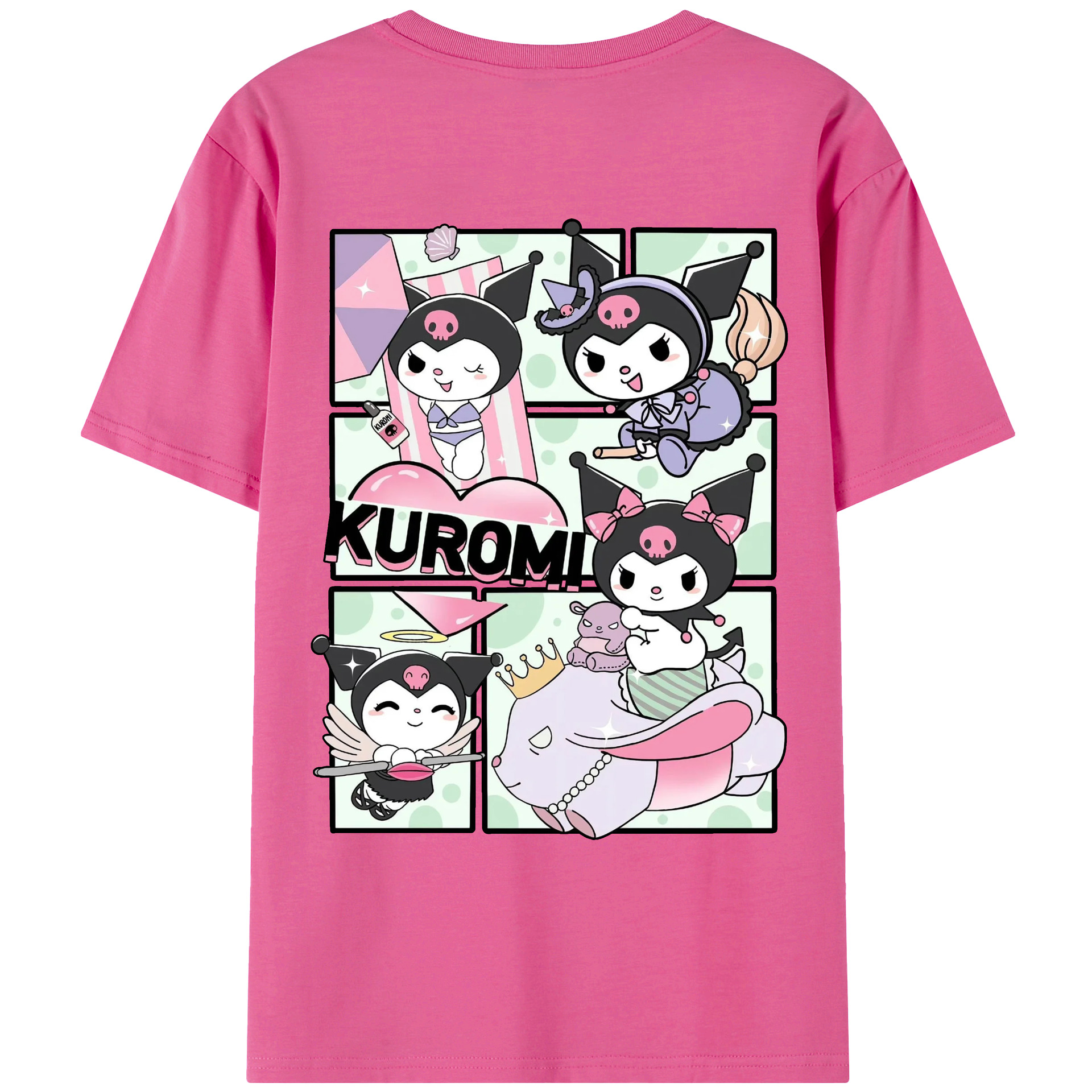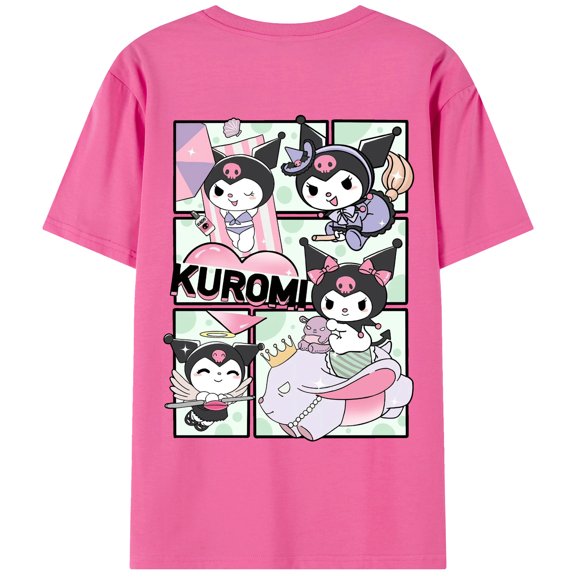 おもしろクロミ - レディース半袖Tシャツ ・ 綿100% ・ バックプリント ・ 強化クルーネック ・ 二重折り袖口 ・ 快適 通気性 ・ フィットネス カジュアル 旅行用