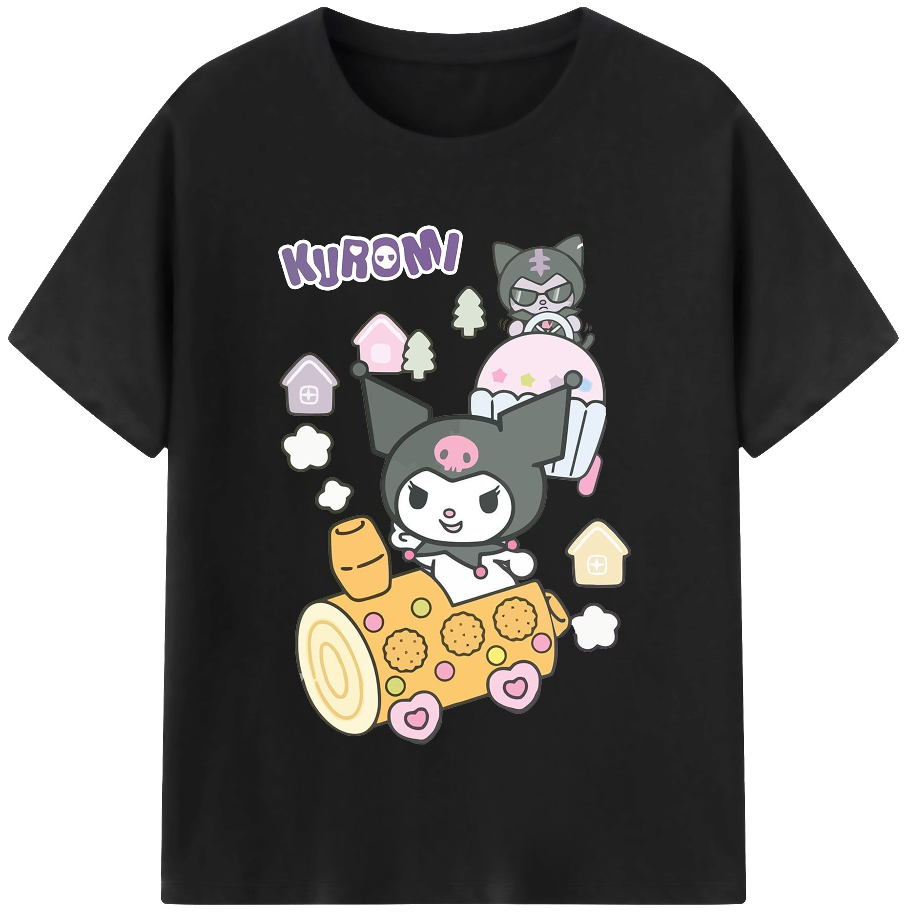 おもしろクロミ - レディースカジュアルプリントTシャツ ・ 綿100% ・ クルーネック ・ フロントプリント ・ 柔らかく快適 ・ フィットネス カジュアル 旅行用