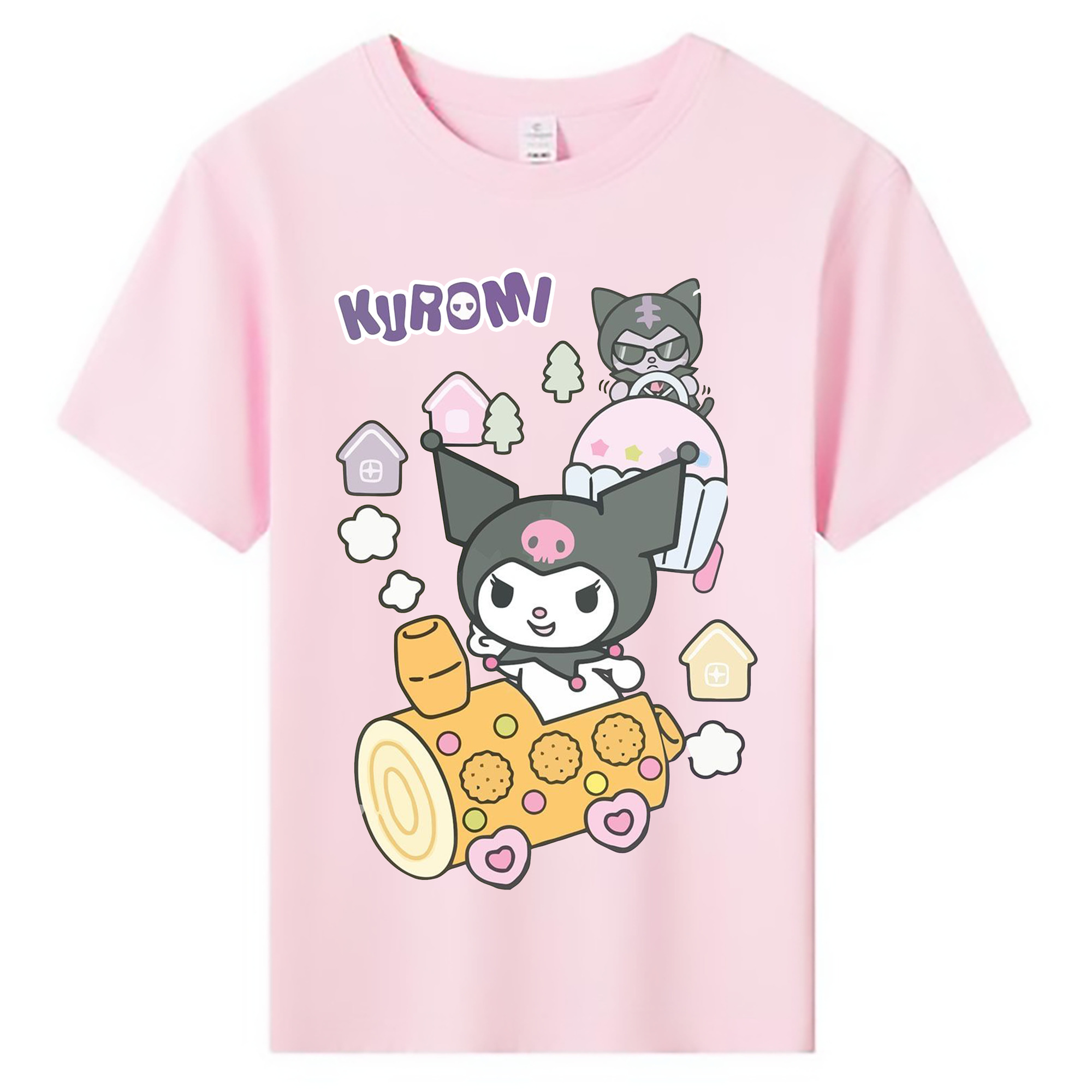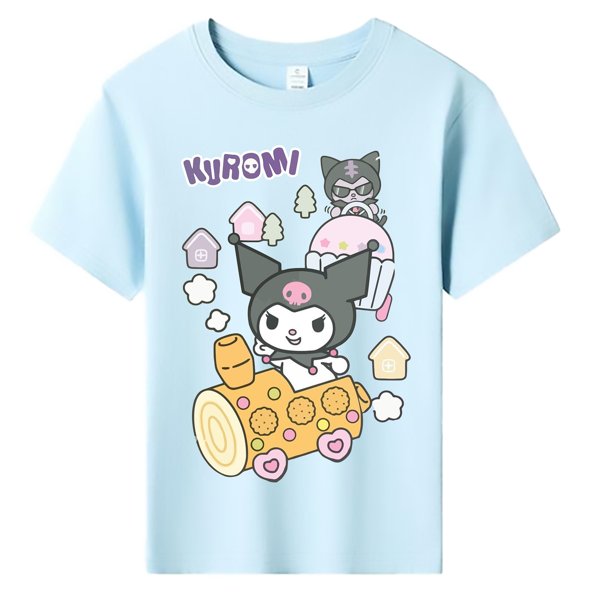 サンリオクロミ&LABUBU ラブブ - 綿100% キッズTシャツ ・ フロントプリント ・ 快適 通気性 ・ スポーツ カジュアル 散歩用