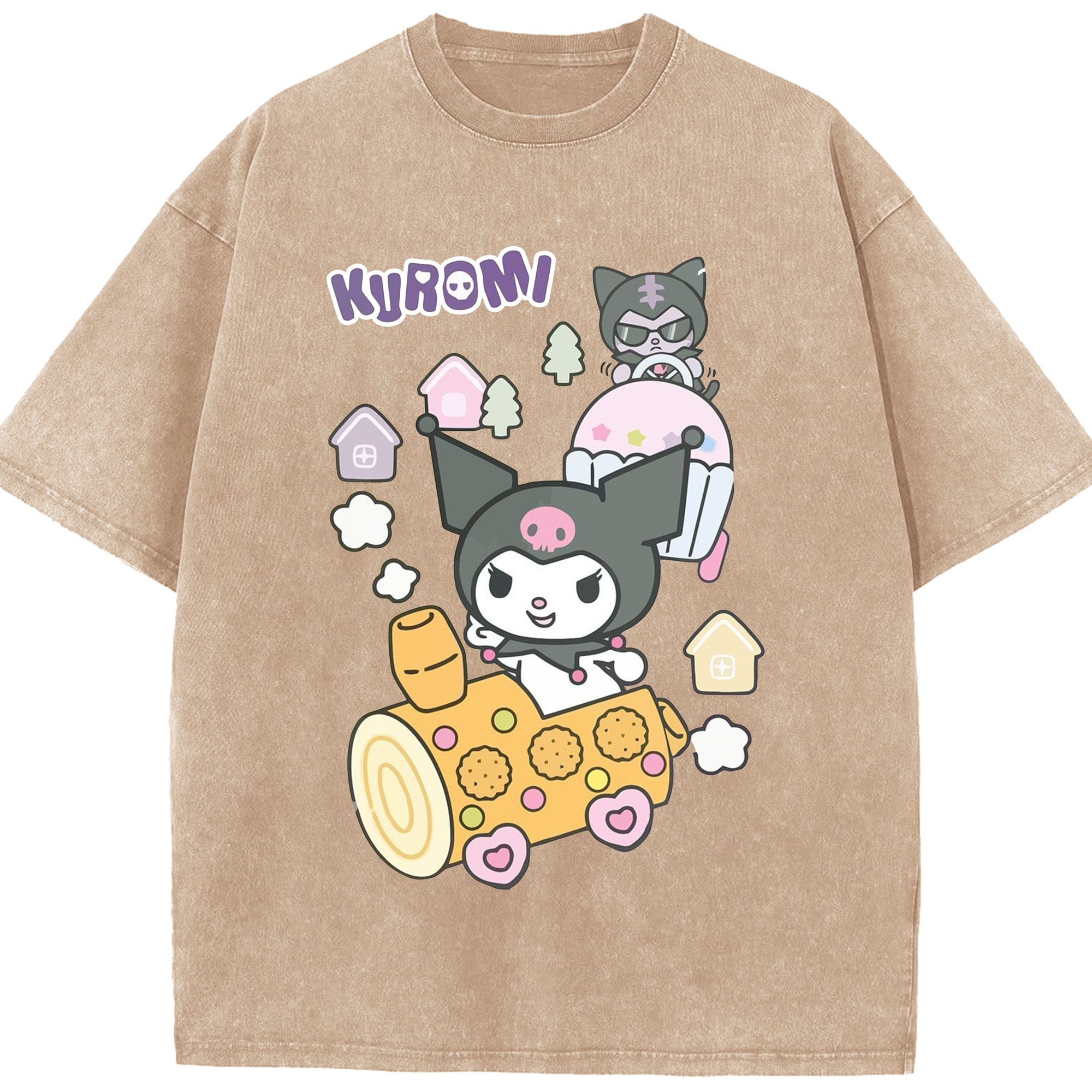 サンリオ&ちいかわ - 綿100% ヴィンテージ風 半袖Tシャツ ・ フロントプリント ・ 柔らか肌触り ・ 通気性 快適 ・ スポーツ カジュアル 外出用
