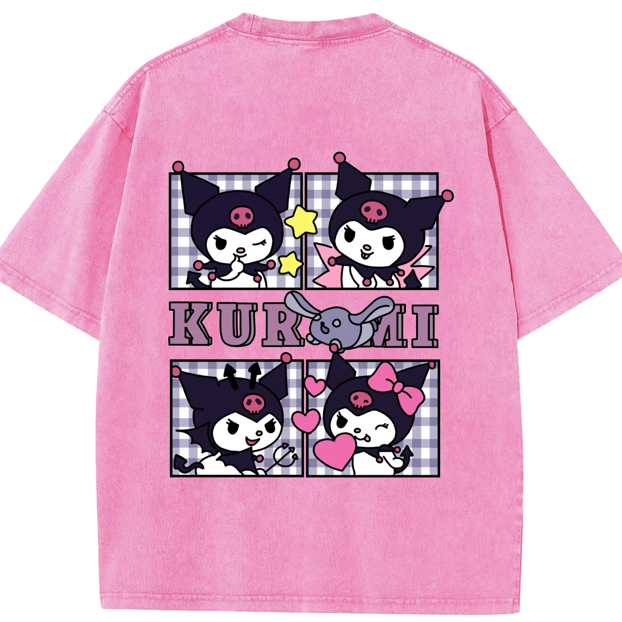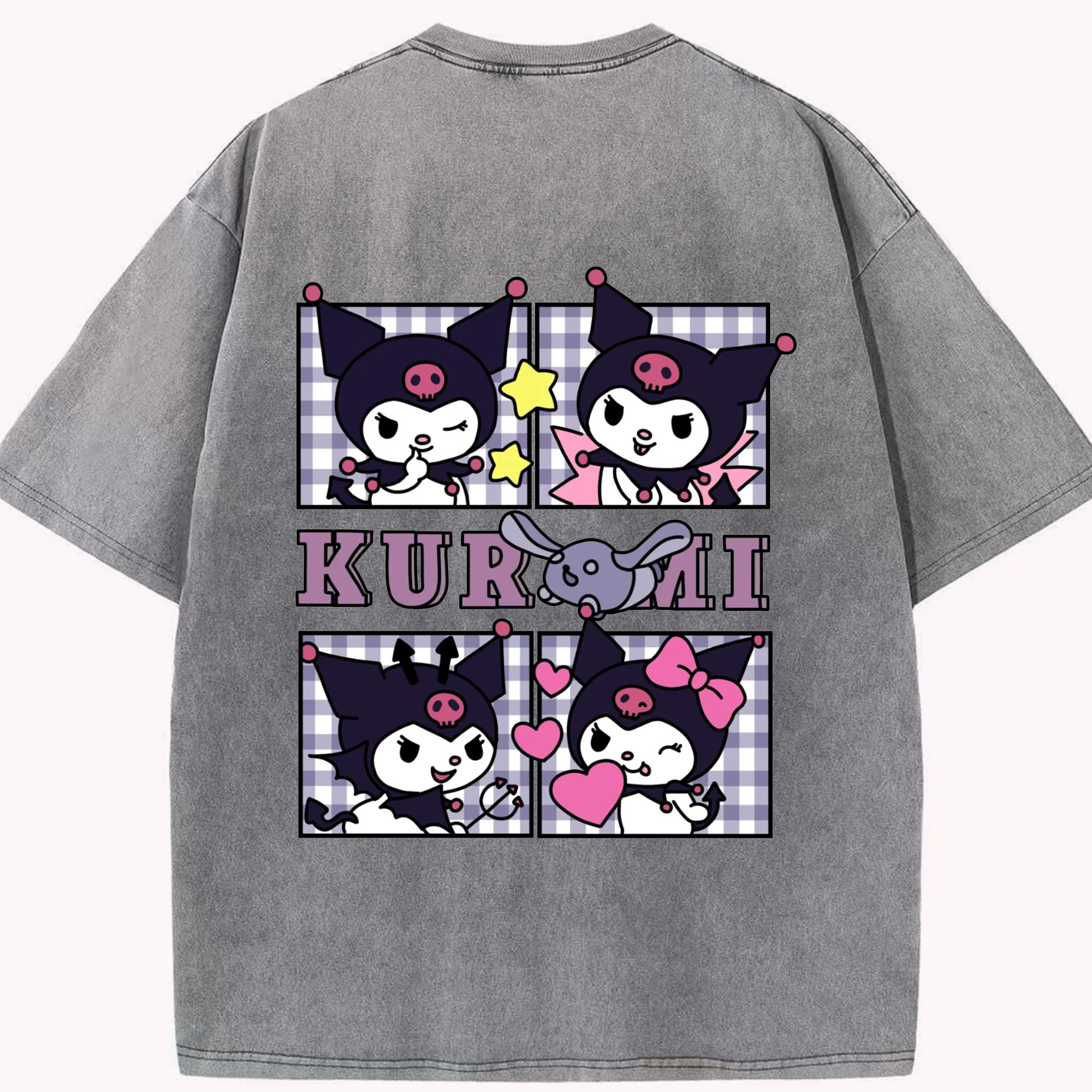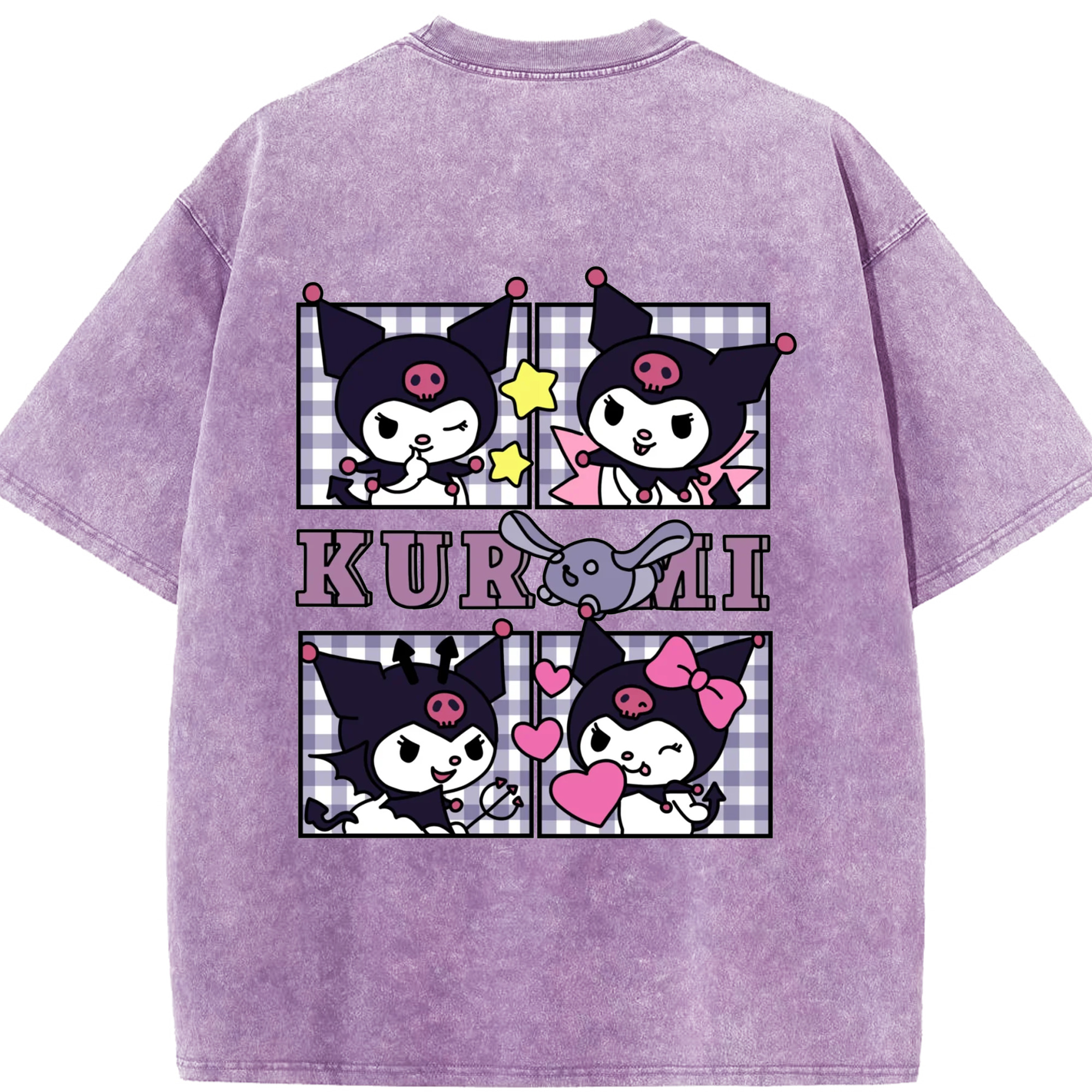 かわいいクロミ - 綿100% ヴィンテージ風 半袖Tシャツ ・ 背面プリント ・ 柔らか肌触り ・ 通気性 快適 ・ スポーツ カジュアル 外出用