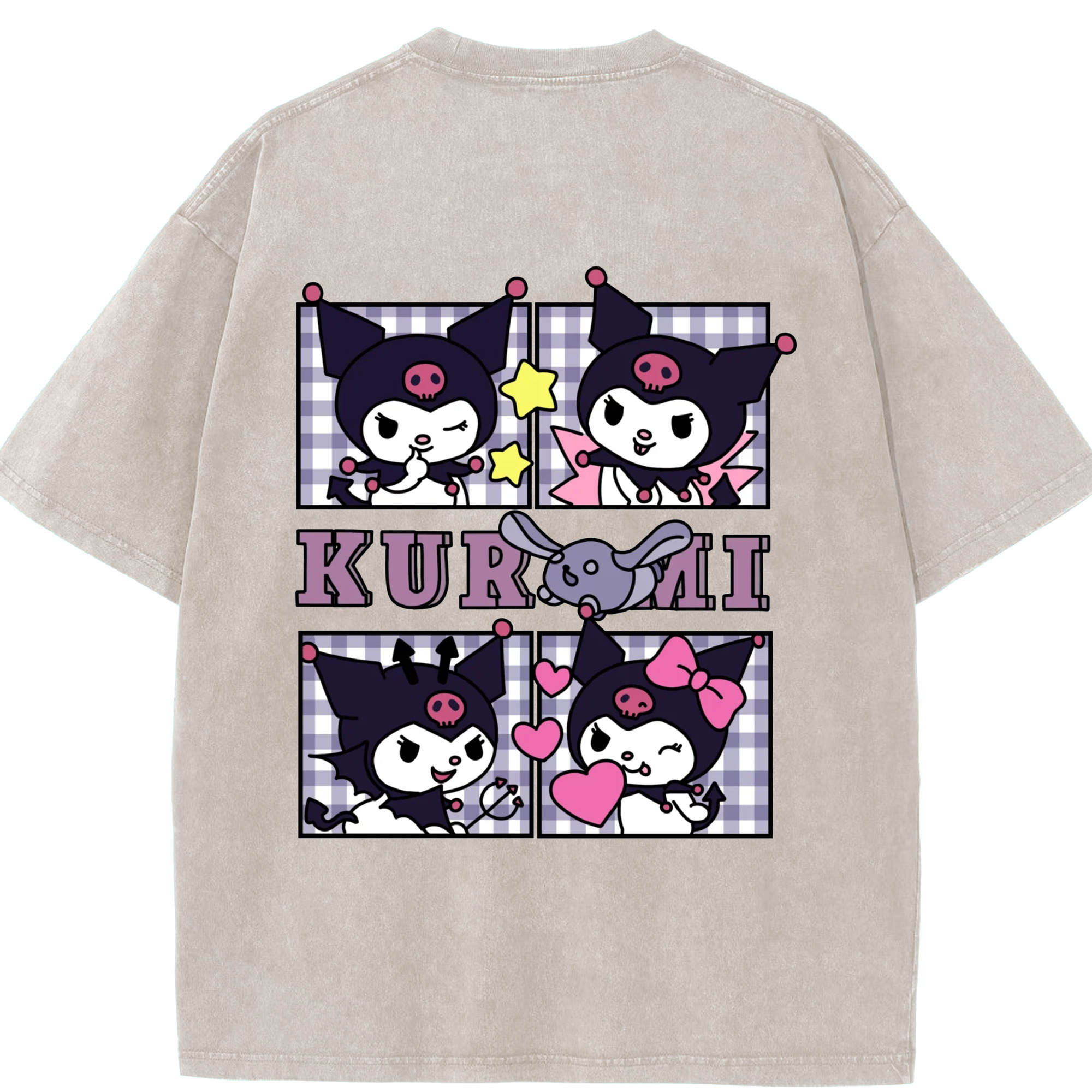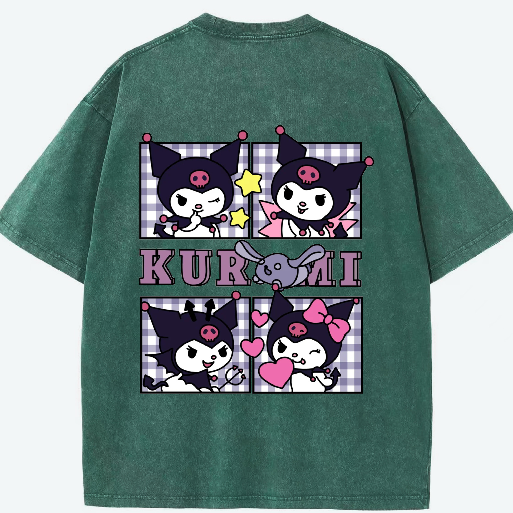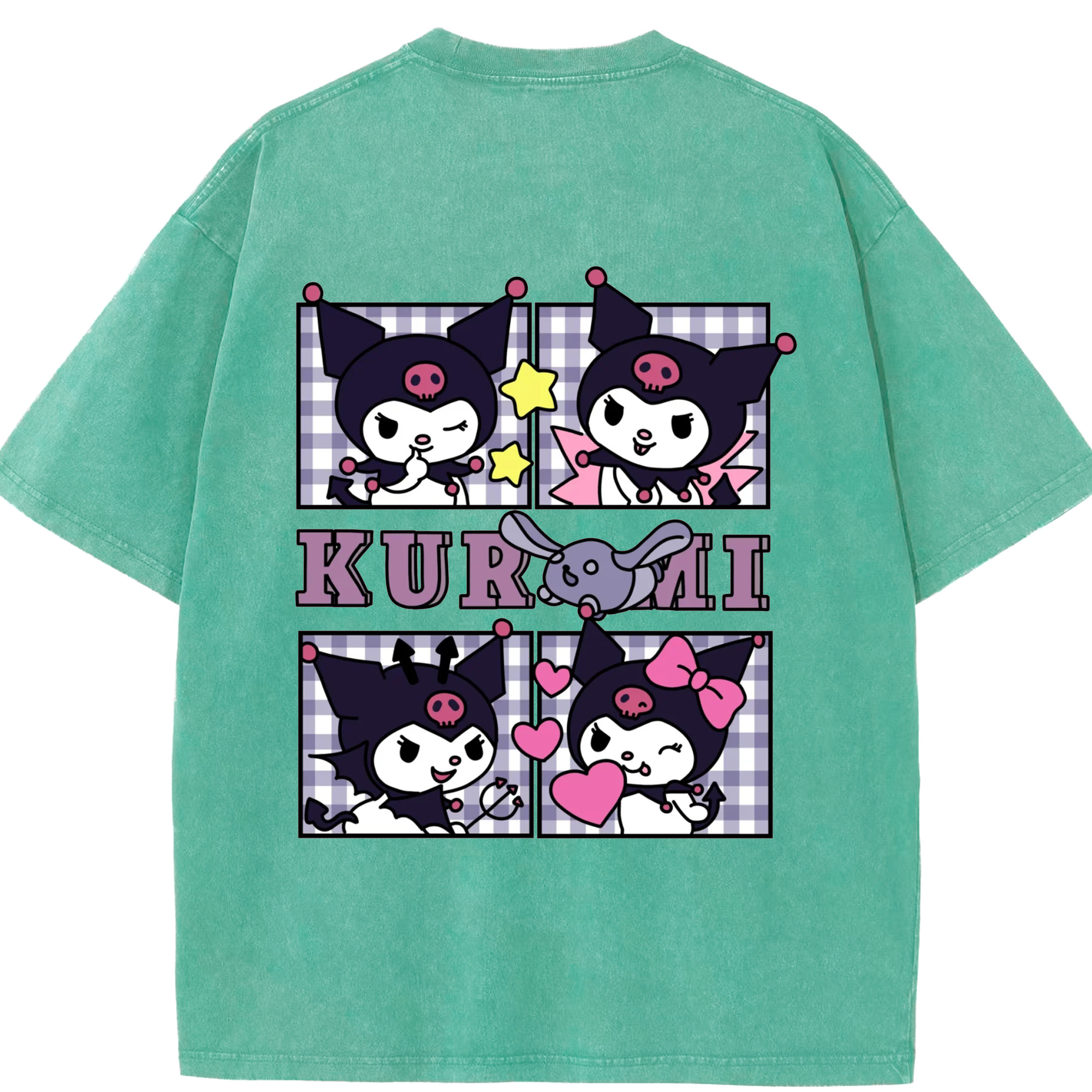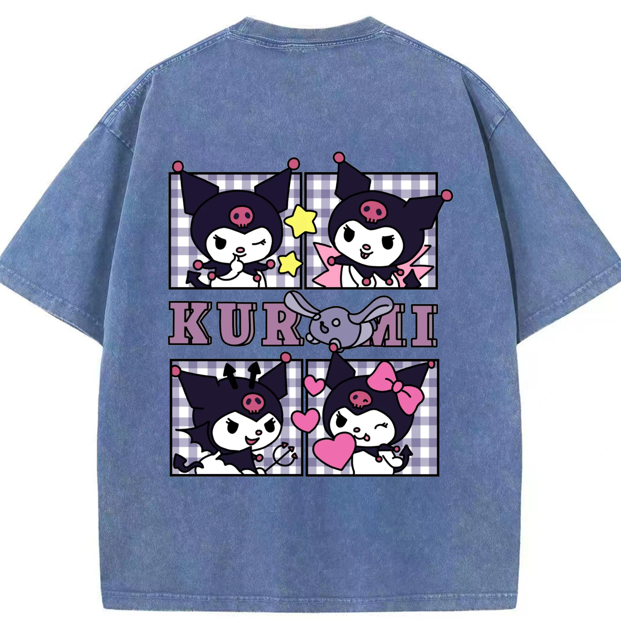 かわいいクロミ - 綿100% ヴィンテージ風 半袖Tシャツ ・ 背面プリント ・ 柔らか肌触り ・ 通気性 快適 ・ スポーツ カジュアル 外出用