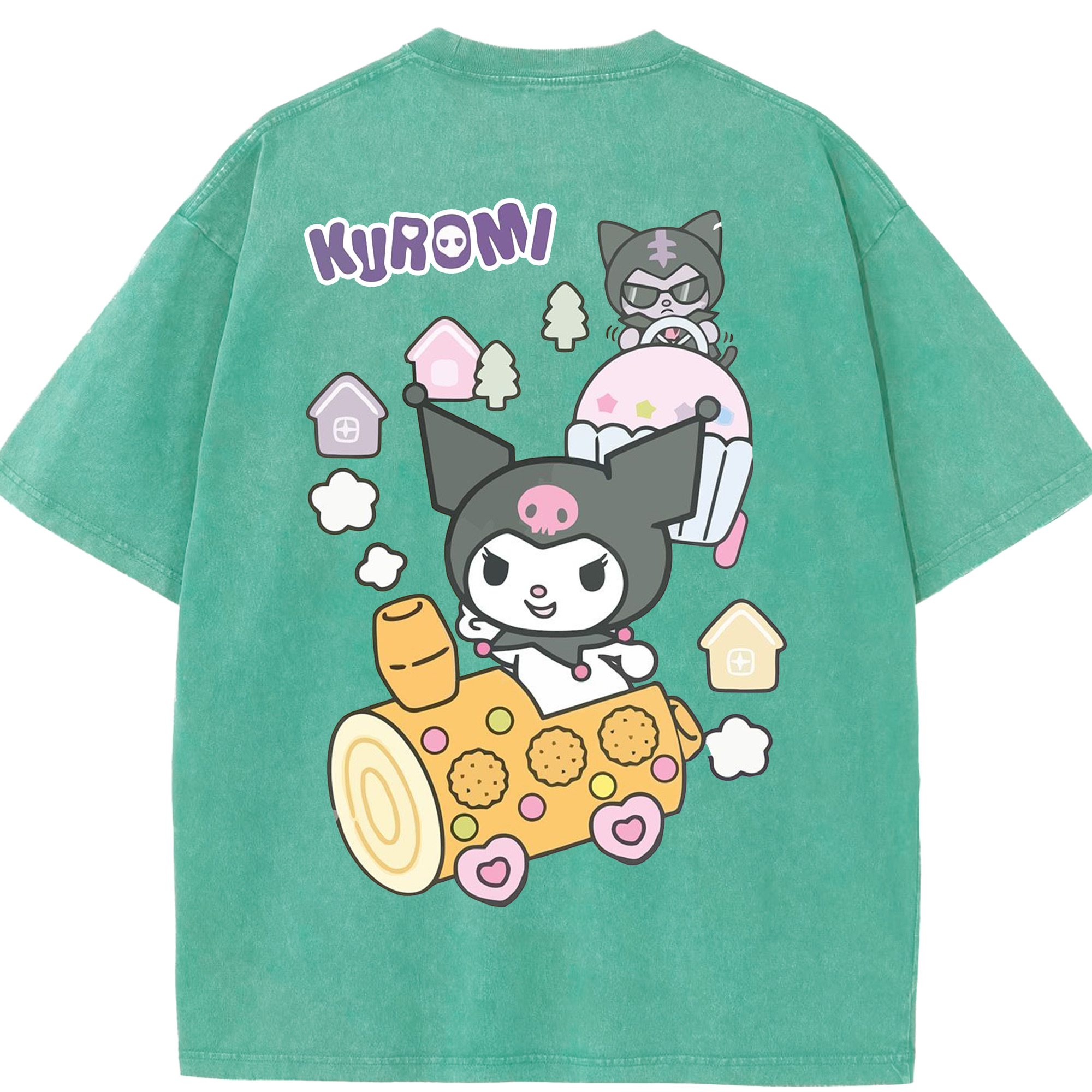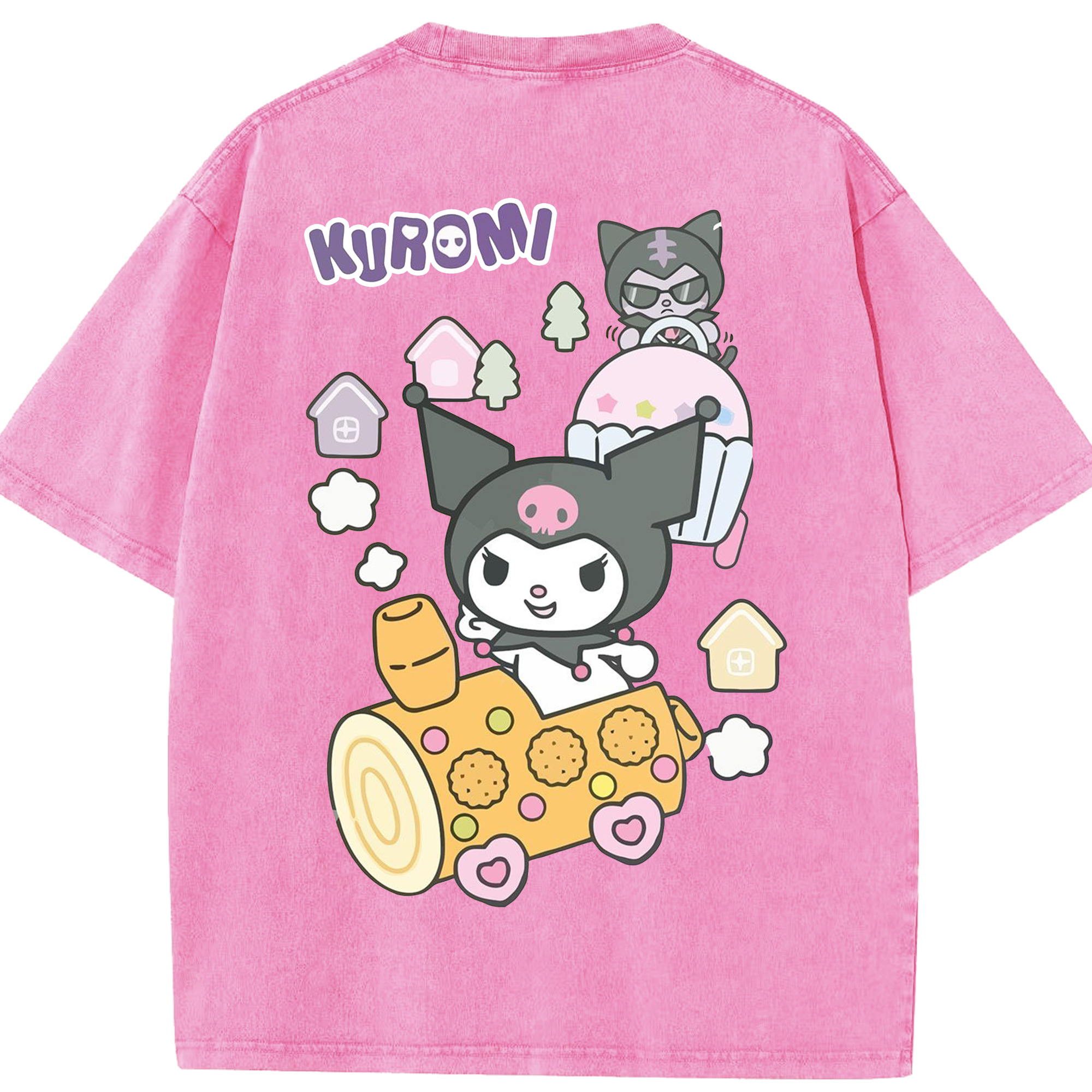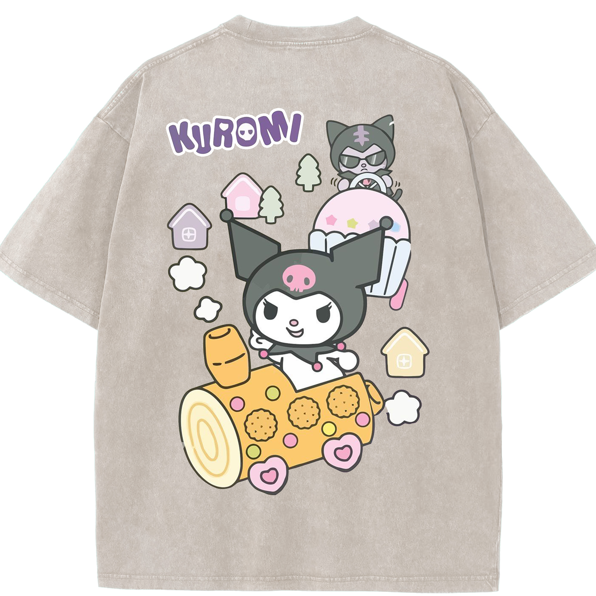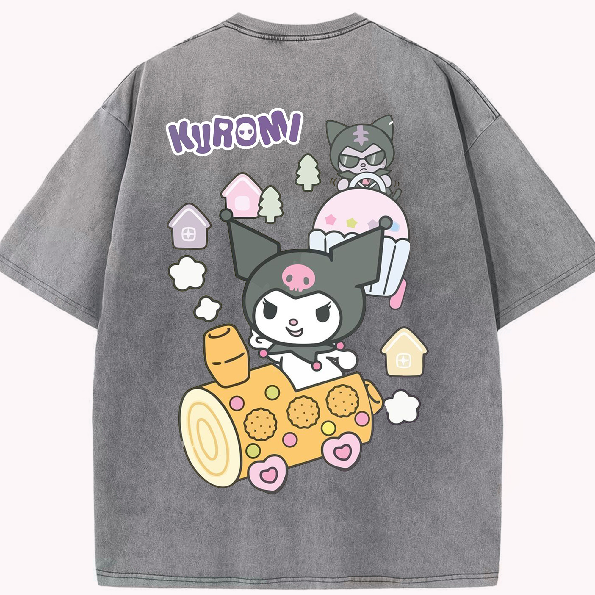 サンリオクロミ - 綿100% ヴィンテージ風 半袖Tシャツ ・ 背面プリント ・ 柔らか肌触り ・ 通気性 快適 ・ スポーツ カジュアル 外出用