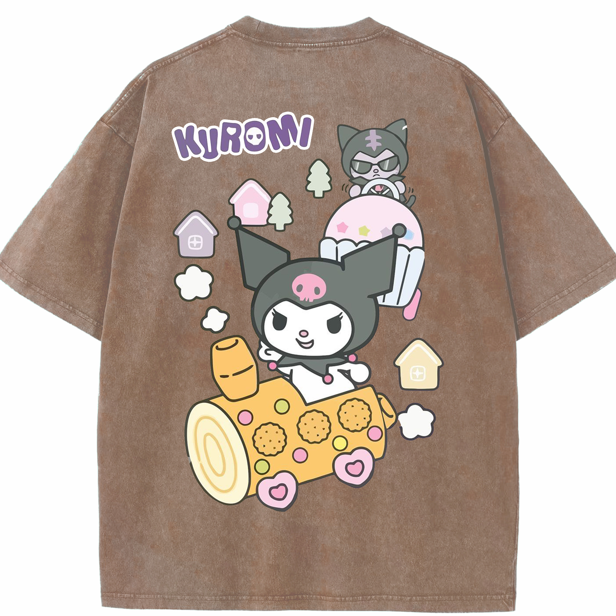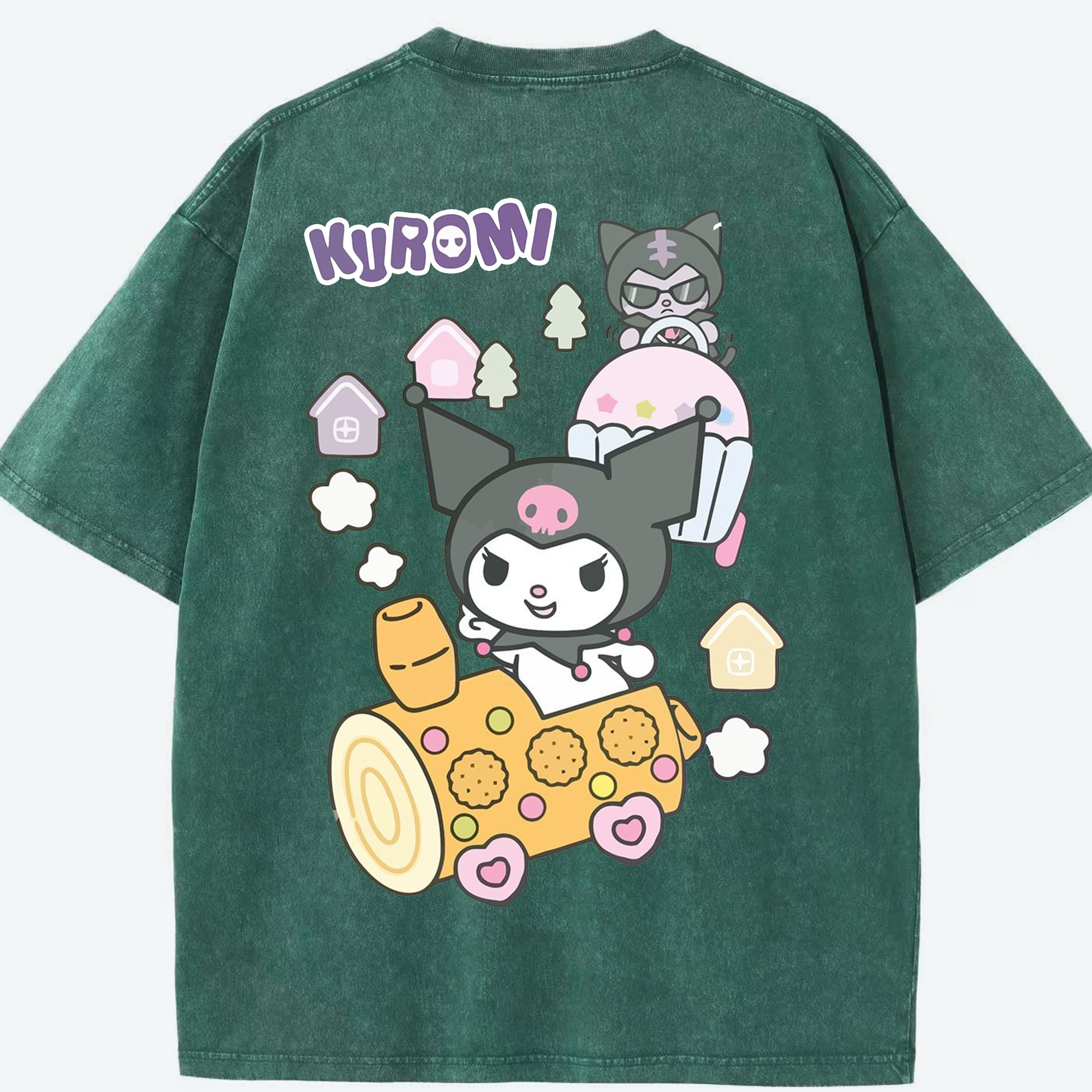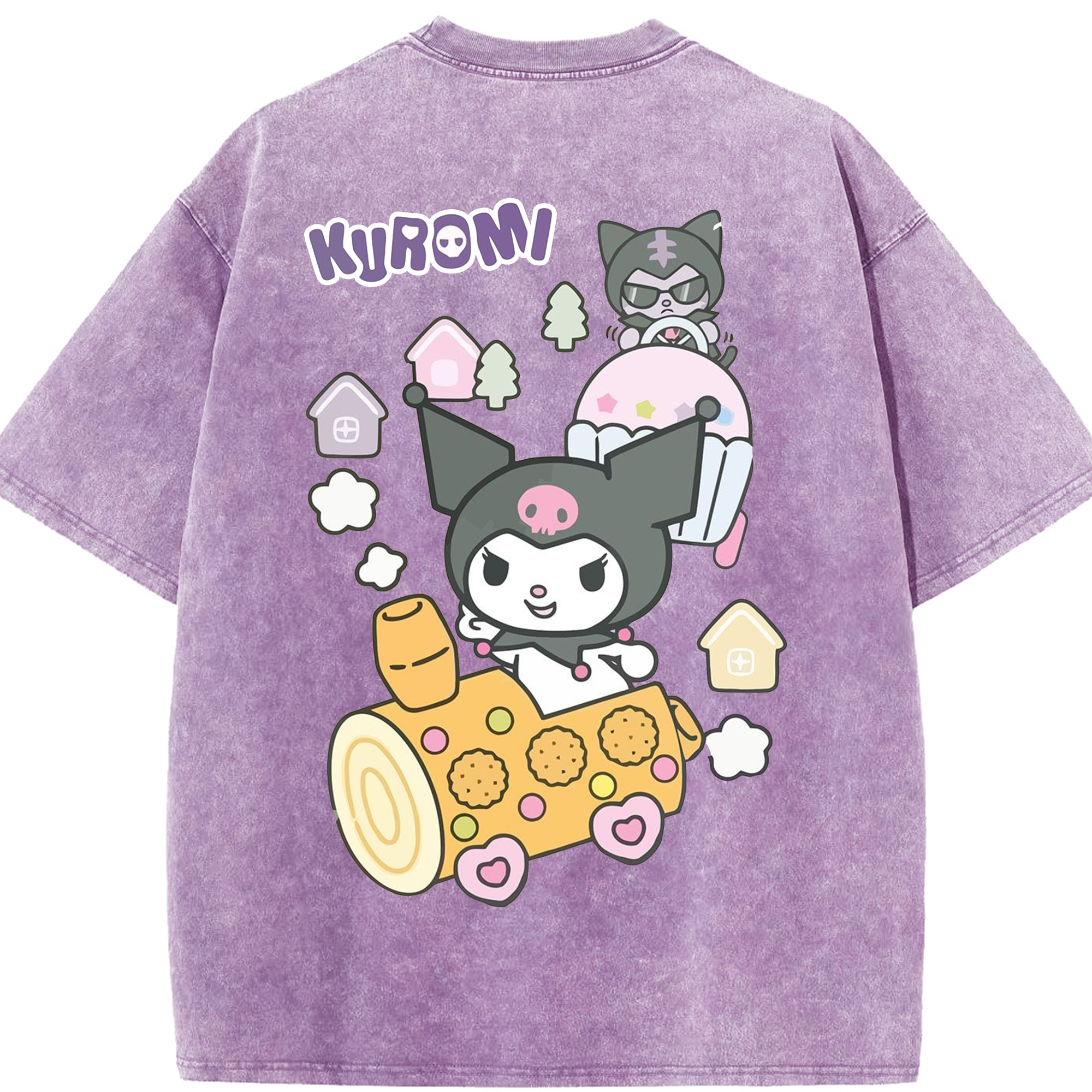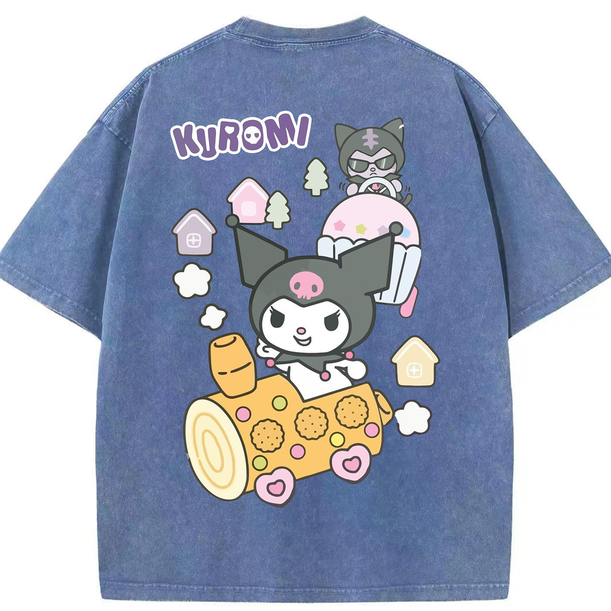 サンリオクロミ - 綿100% ヴィンテージ風 半袖Tシャツ ・ 背面プリント ・ 柔らか肌触り ・ 通気性 快適 ・ スポーツ カジュアル 外出用
