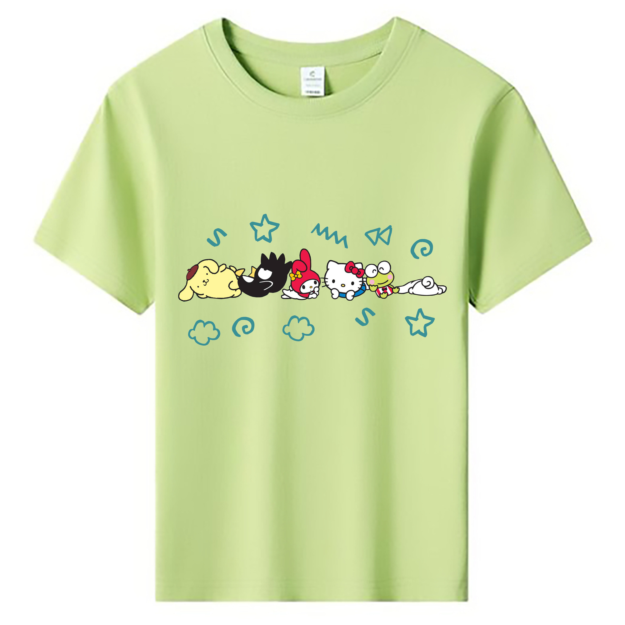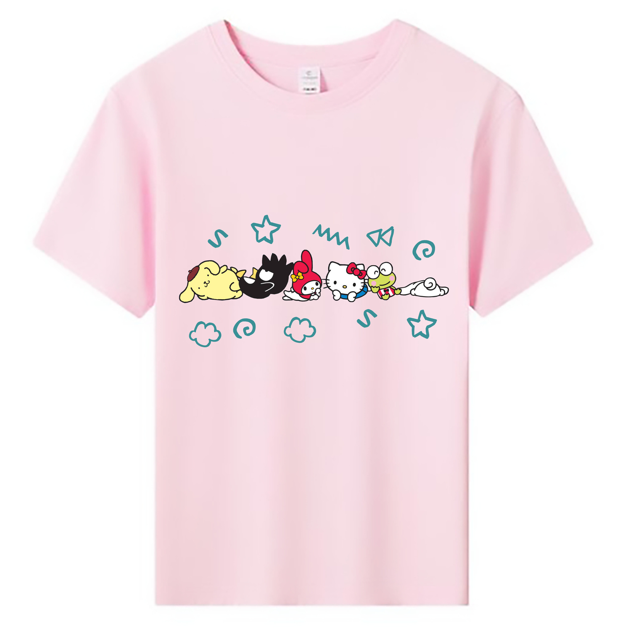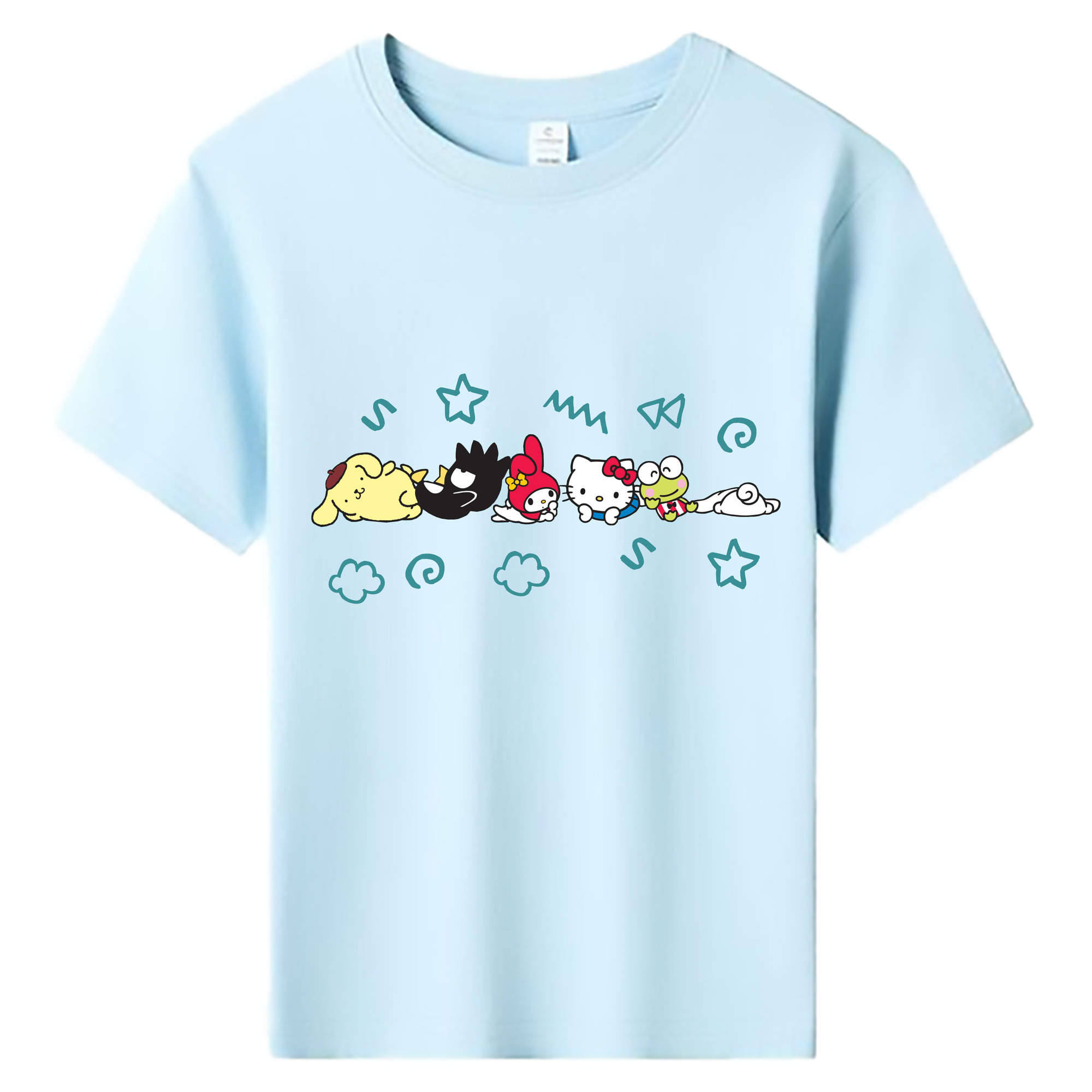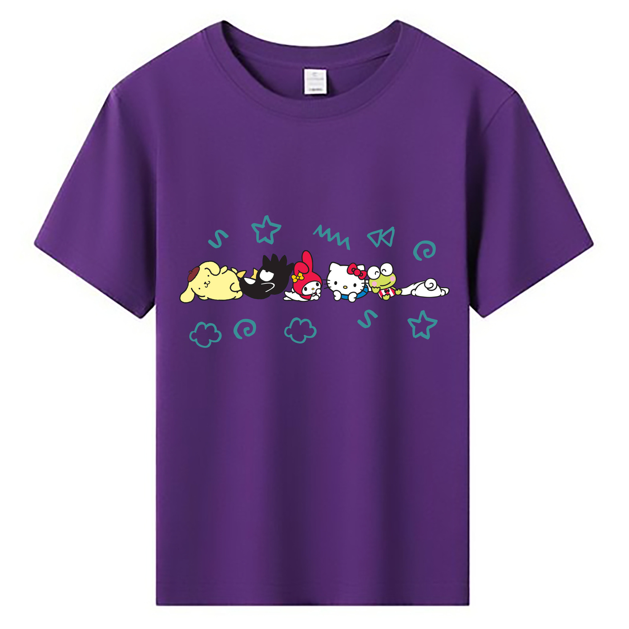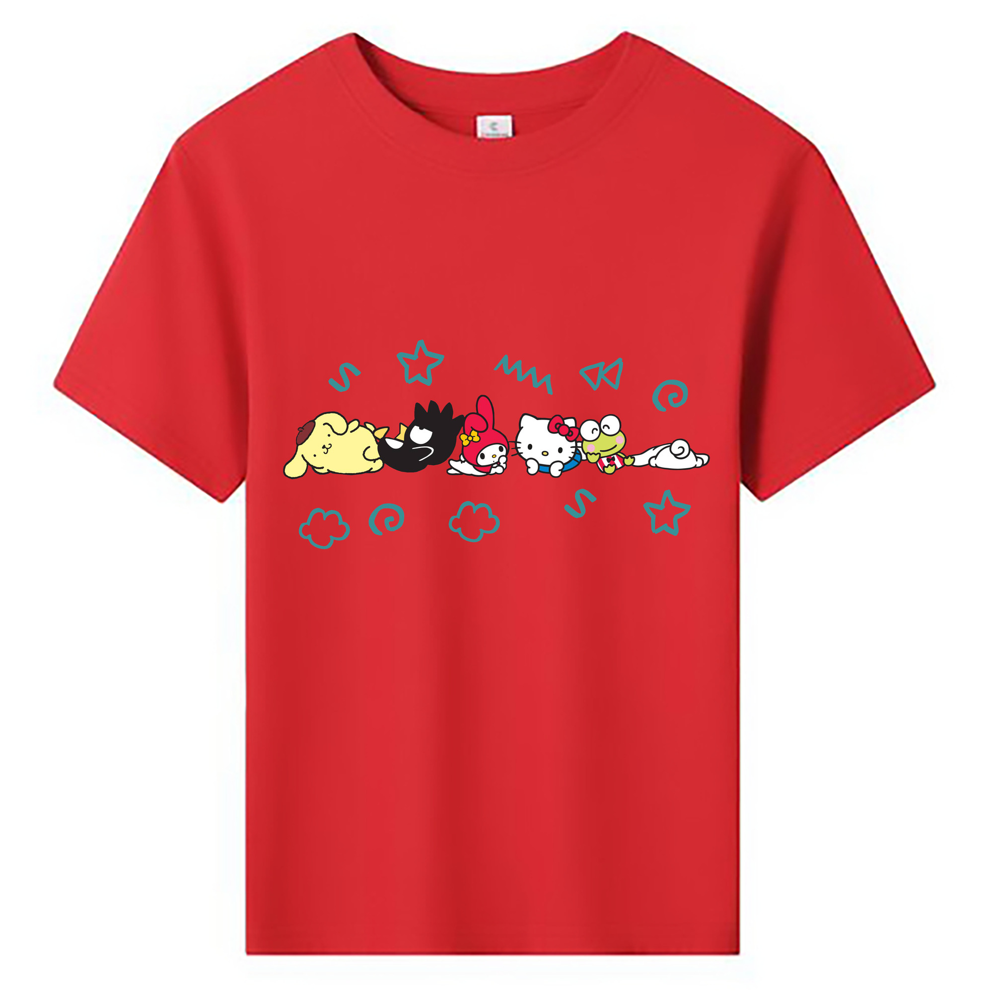 サンリオファミリー - 綿100% キッズTシャツ ・ フロントプリント ・ 快適 通気性 ・ スポーツ カジュアル 散歩用