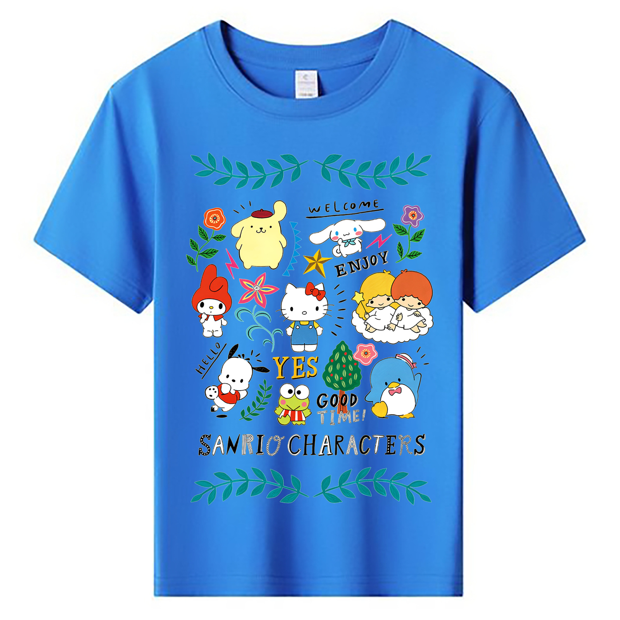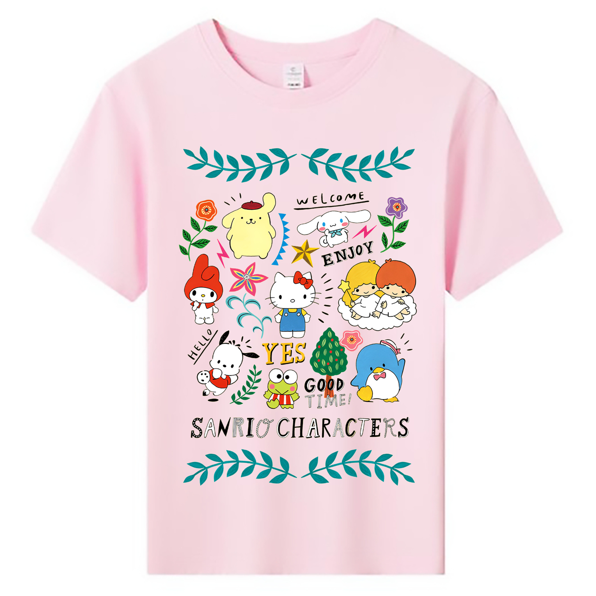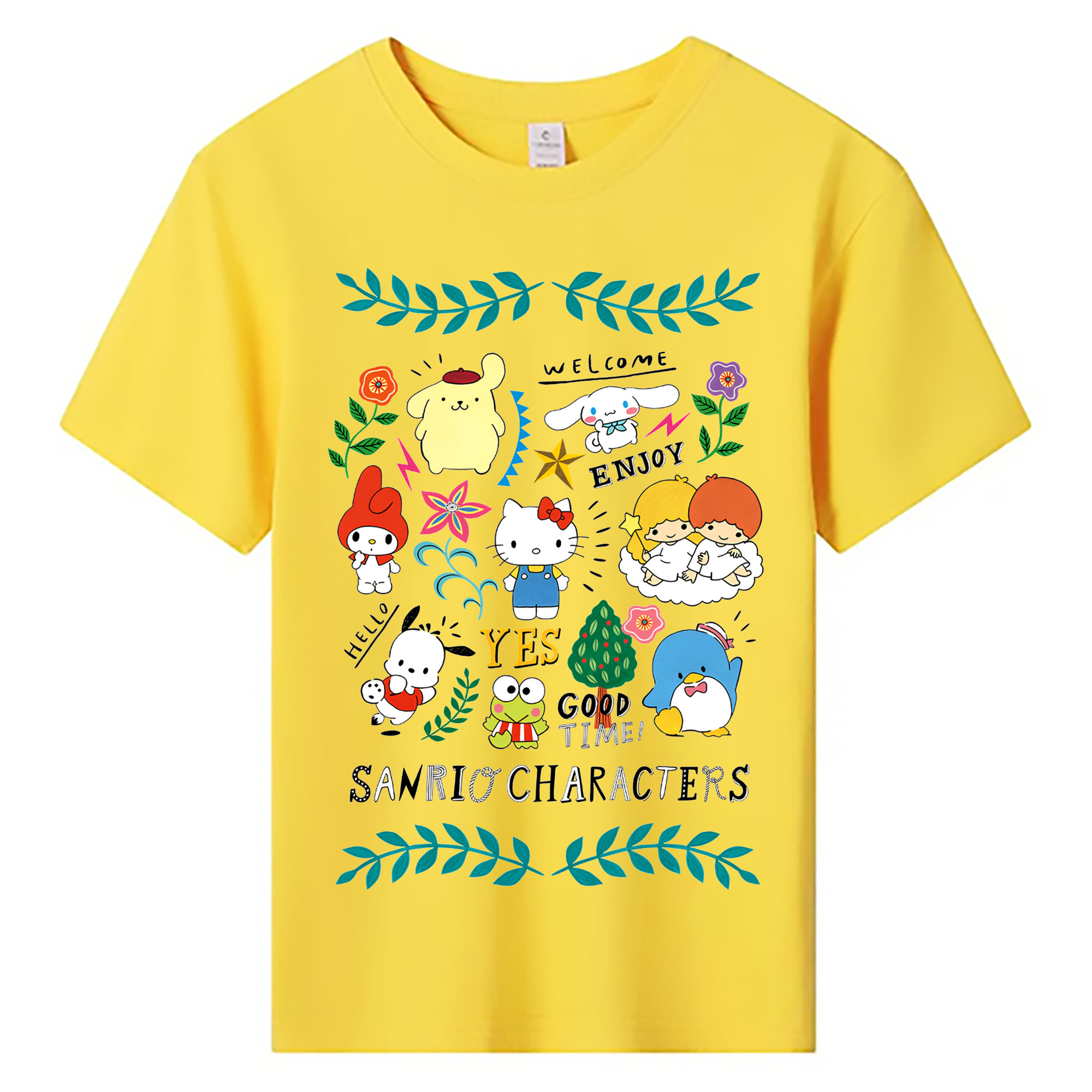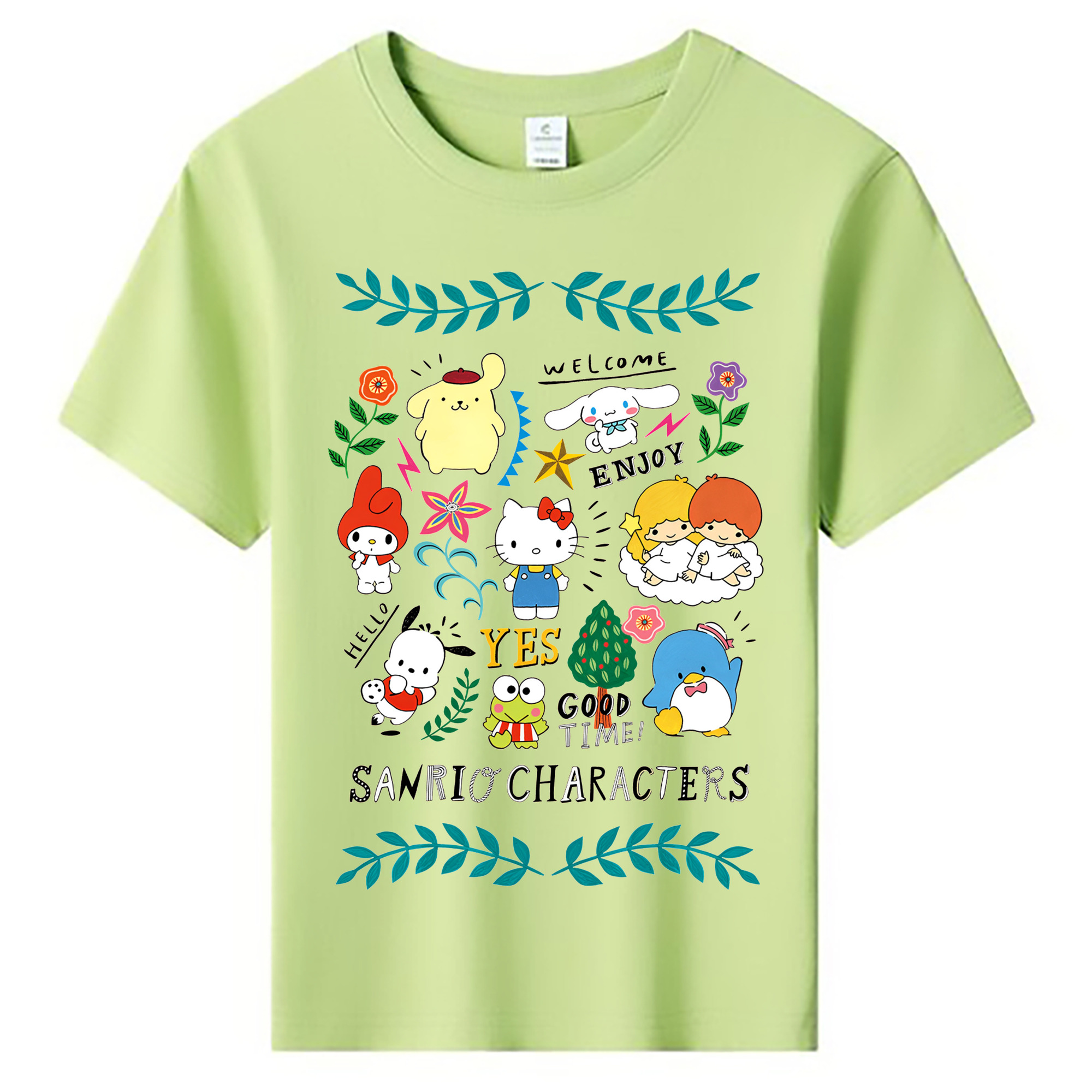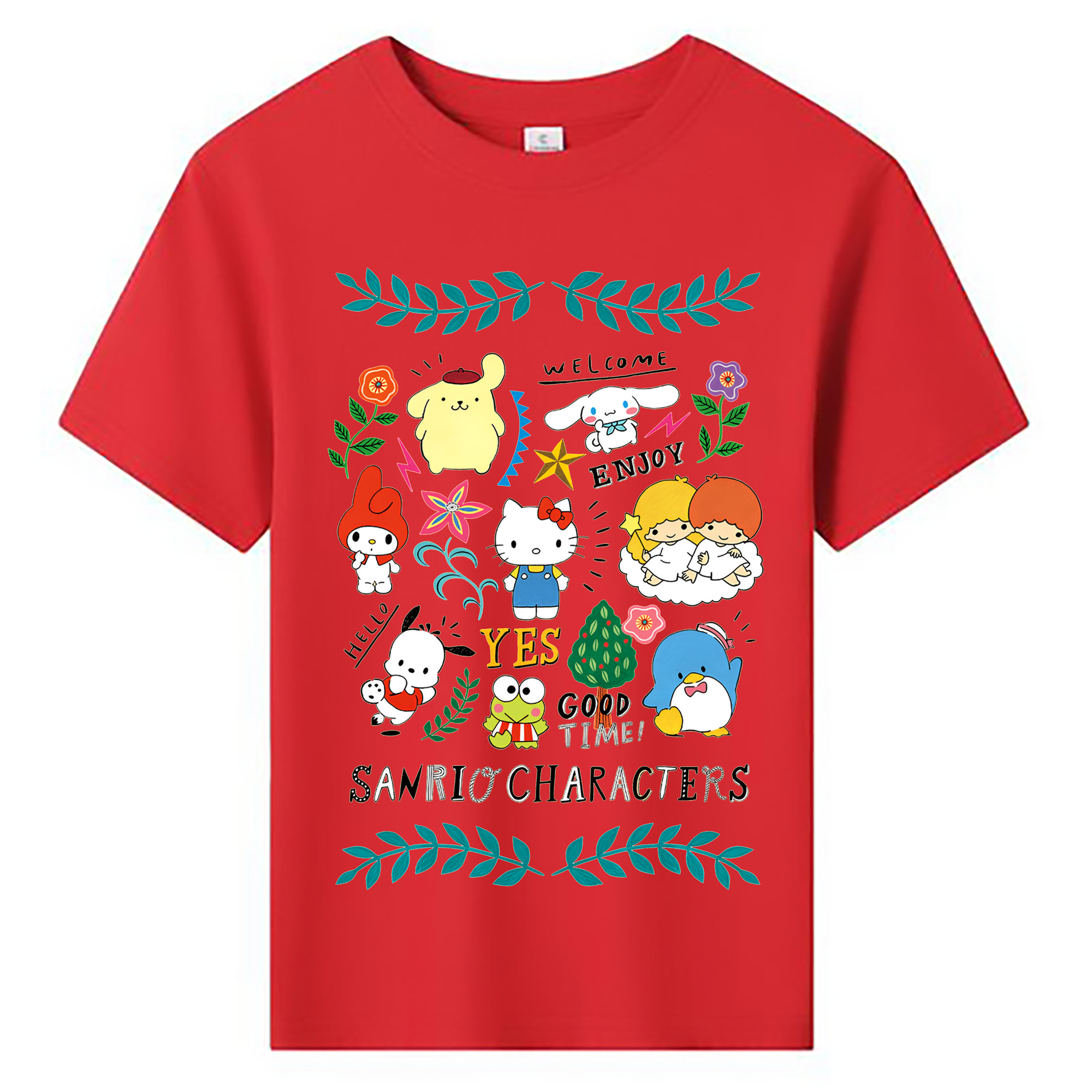 とってもかわいいサンリオファミリー - 綿100% キッズTシャツ ・ フロントプリント ・ 快適 通気性 ・ スポーツ カジュアル 散歩用
