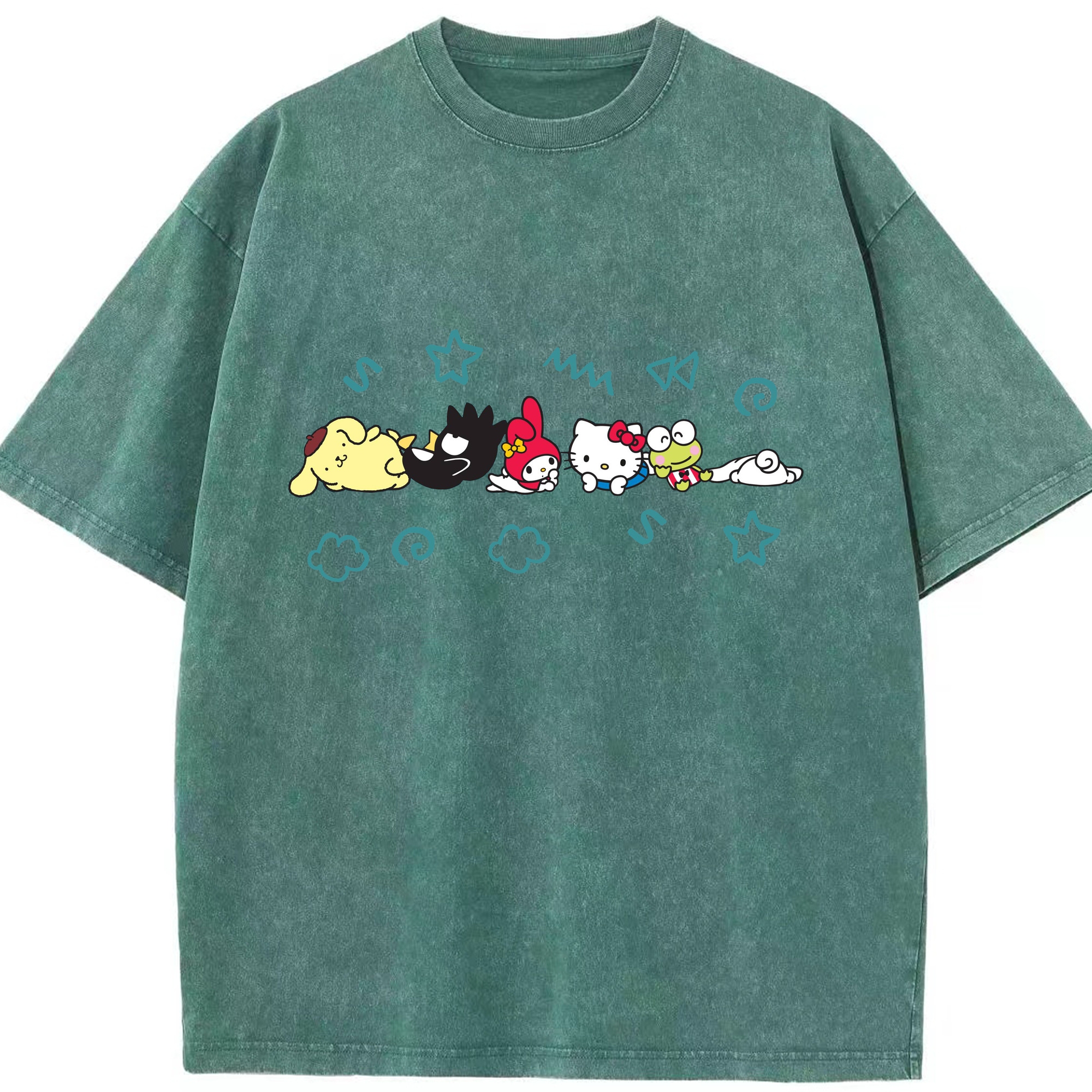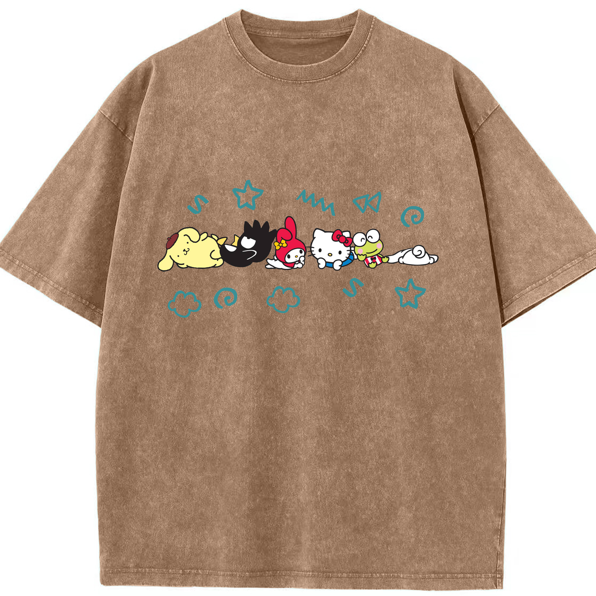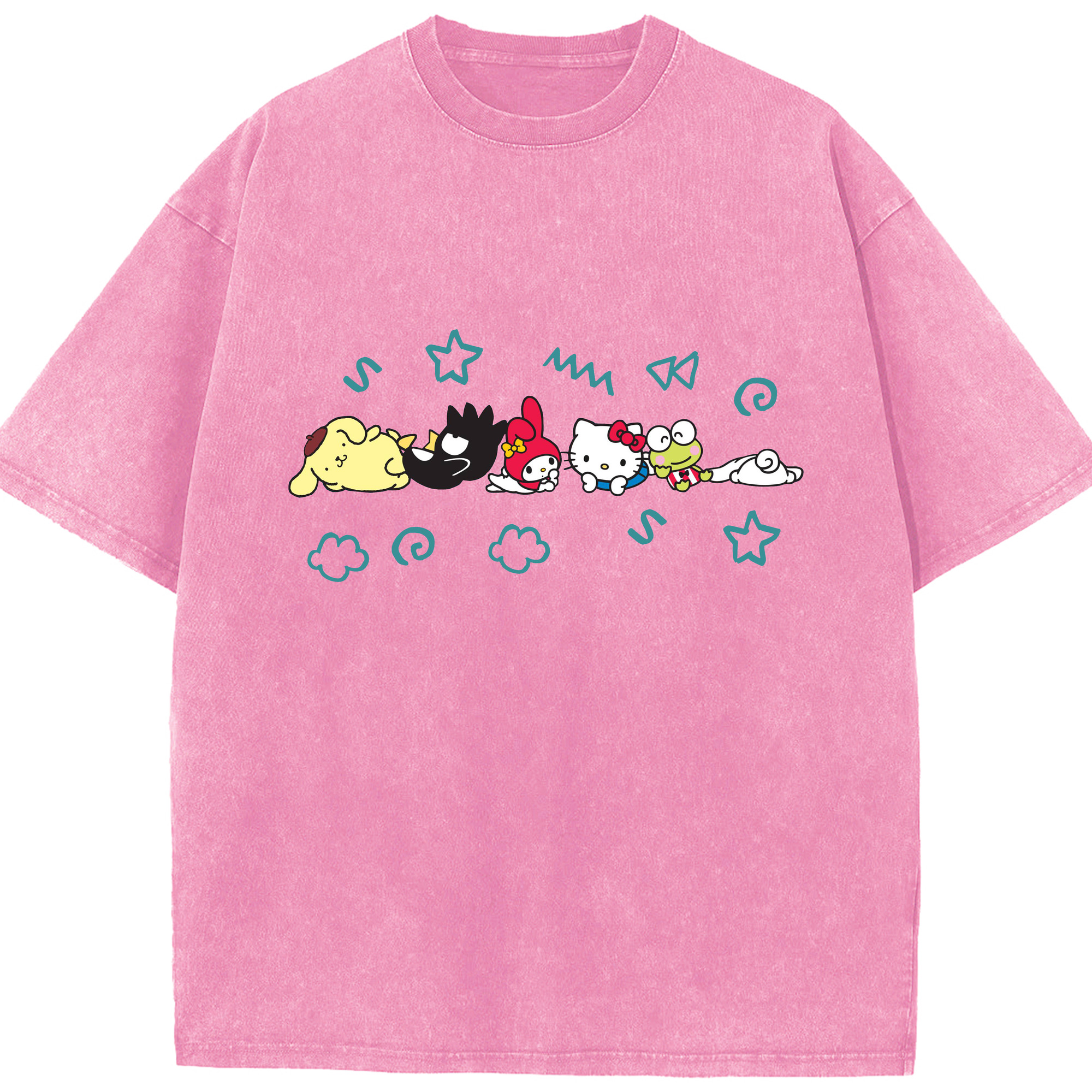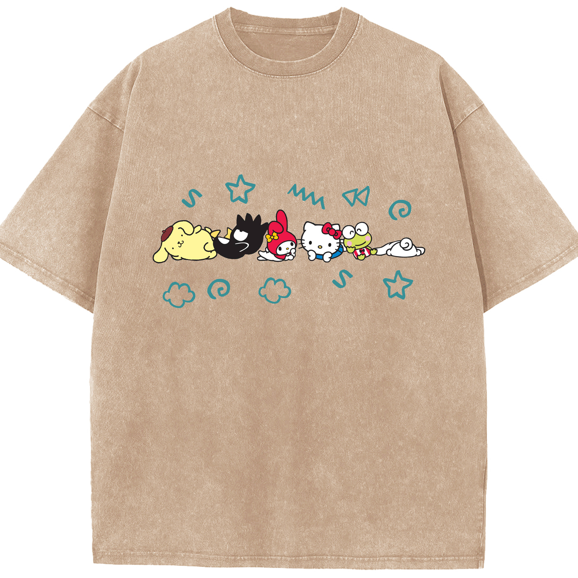 サンリオ - 綿100% ヴィンテージ風 半袖Tシャツ ・ フロントプリント ・ 柔らか肌触り ・ 通気性 快適 ・ スポーツ カジュアル 外出用